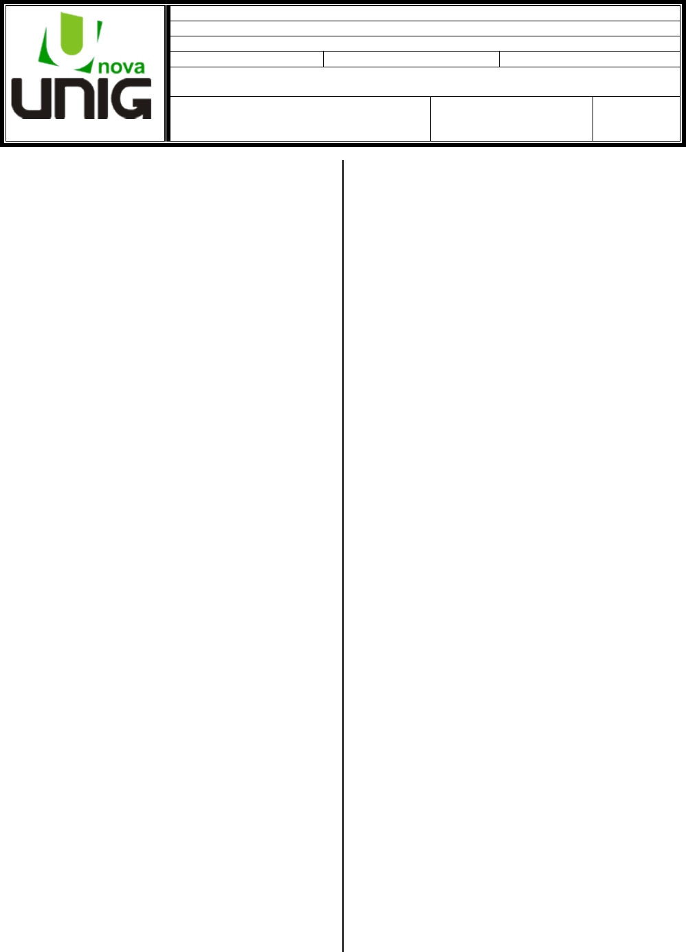 1 CURSO DE FISIOTERAPIA – UNIG CAMPUS V Disciplina: Administração em Fisioterapia Professor(a): Luiz Guilherme N. de Castro 1º Ciclo Valor: 5 Data: 29/03/2020 Aluno(a): Prof. Juliano Coordenador do Curso de Fisioterapia Ass. Professor: Nota: ATIVIDADE AVALIATIVA I Questão 01 ///////////////////////////////////// Explique os fatos que resultaram no aparecimento da Abordagem Clássica da Administração? (0,5 Pontos) R: Questão 02 ///////////////////////////////////// Quais eram os objetivos de Taylor na Primeira fase? (0,5 Pontos) R: Questão 03 ///////////////////////////////////// Quais eram as mudanças que Fayol fez na empresa e porquê? (0,5 Pontos) R: Questão 04 /////////////////////////////////// Marque a opção verdadeira. (0,5 Pontos) 1- Quando se apura a margem de contribuição atinge-se o ponto de equilíbrio. 2- O lucro é igual a zero quando se atinge o ponto de equilíbrio. 3- Despesa fixa é quando o valor não se altera. 4- Despesa variável é quando o valor se altera de acordo com a produção. 5- Quanto maior a margem de contribuição menor o ponto de equilíbrio. A ( ) 1. 2. 4. São verdadeiras, B ( ) 2. 3 4. São verdadeiras, C ( ) 1. 2. 3. São verdadeiras, D ( ) 2. 3. 5. São verdadeiras, E ( ) 2. 4. 5. São verdadeiras, Questão 05 ///////////////////////////////////// Teoria Clássica: FAYOL era engenheiro e foi o fundador da Teoria Clássica. Tinha com visão da organização como um todo, caracterizava pela ênfase na Estrutura. Queria garantir a eficiência a todas as partes envolvida como as seções e departamentos e também as pessoas que ocupava os cargos de execução da tarefas . FAYOL salienta que todas empresas apresenta seis Funções Básicas : ( 0,5 pontos) I) Funções Técnicas: Relacionado com planejamento empresarial. II) Funções Comerciais: Relacionada com atendimento ao fornecedor. III) Funções Financeiras: Relacionadas com procura a gerência de capitais. IV) Funções de Segurança: Relacionadas com a proteção e preservação dos bens e das pessoas. É correto apenas o que se afirma em: a)I e II b) II e III c) I e III d) II e IV e)III e IV 2 Questão 06 ///////////////////////////////////////////////////////////////////////////////// Uma indústria sorvete, fábrica vários tipos de sorvetes de, contratou um consultor para organizar a empresa, o consulto tinha como missão levantar os custo de produção. Obs.: As contas devem estar na folha de exercício, caso contrário a questão será anulada. Energia escritório........R$ 1057,00 Folha de pagamento.... R$ 2500,00 Água............................ R$ 266,60 Açúcar 50kg..................R$ 80,00 Poupa de frutas 1 kg....R$ 40,00 Potes de kg unid..........R$ 2,00 Leite 1 litro...................R$ 1,00 Energia cada 1 Kwh.......R$ 1,20 Aluguel..........................R$ 2000,00 Aromatizante 1 litro.......R$ 8,00 Obs.: Para produzir 100 kg de sorvete. 70 litro de leite, 10 litros de aromatizante, 5 kg de poupa de frutas, 5 kg de açúcar, 10 kwh energia, 100 potes. A empresa vende seu soverte por R$ 15,00 cada kg . Formulas: MC = Preço de Venda – DV PE= DF/MC De acordo com enunciado acima responda as questões abaixo: a) Calcular a Despesa Fixa? (0,5 Pontos) b) Calcular o Despesas Variável do sorvete em 1 kg? (0,5 Pontos) c) Calcular o Ponto de Equilíbrio da empresa em kg? (0,5 Pontos) d) Calcular o Lucro da fábrica em 1 mês (30 dias) produzindo 100kg por dia? (0,5 Pontos) e) Calcular o Ponto de Equilíbrio caso a fábrica baixar o preço de venda do sorvete para R$ 9,00? (0,5 Pontos) ATIVIDADE AVALIATIVA I