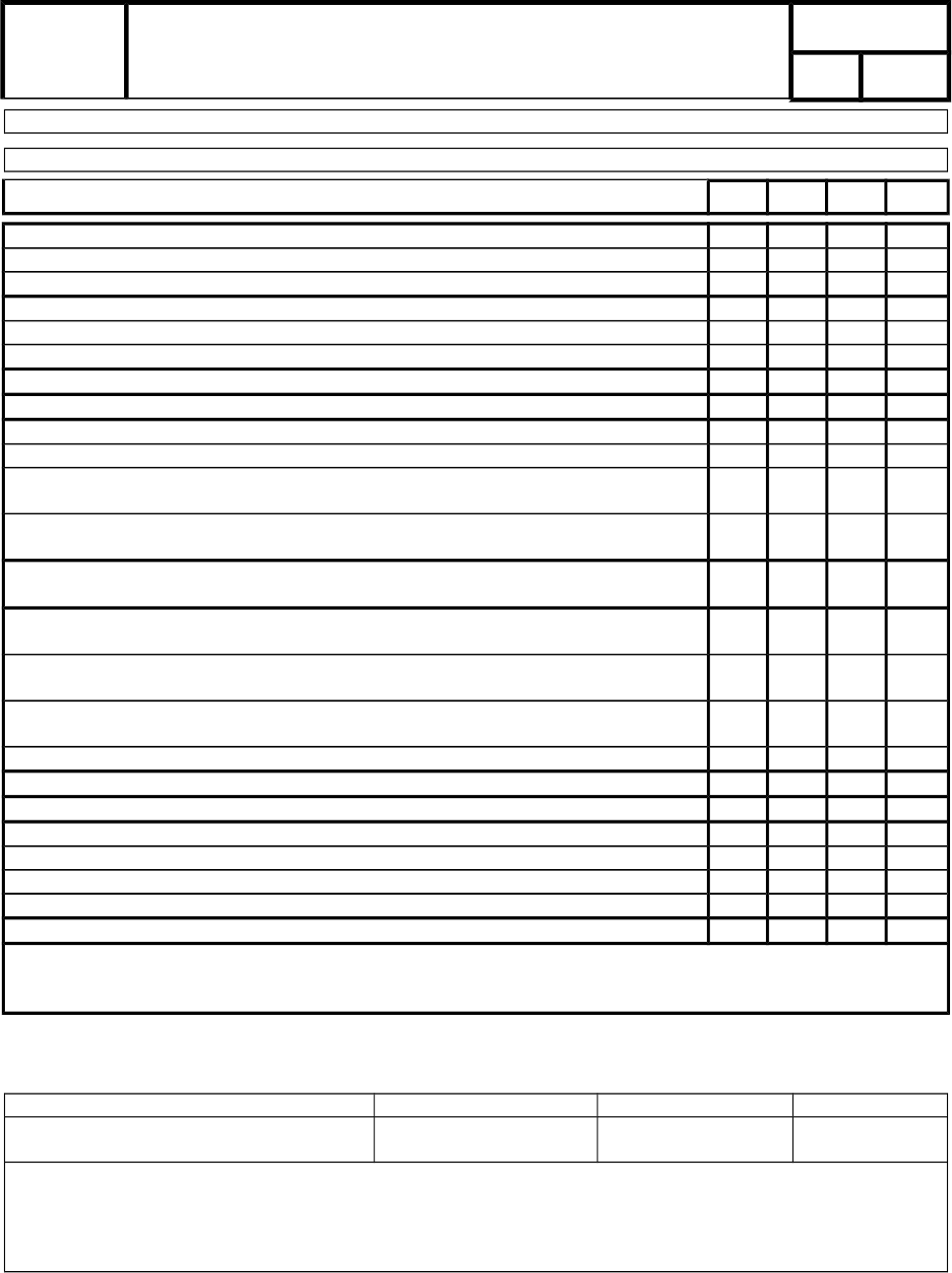 - 1 - CHECK – LIST EMPILHADEIRA Código: SEG-NWN/12 Folha: 1/3 Revisão: 00 Setor: Operador: ITENS A SEREM OBSERVADOS S N P NA O operador está habilitado a operar o equipamento? O operador possui identificação da função no crachá? Os faróis dianteiros estão funcionando normalmente? O stop de freio está funcionando normalmente? Os EPI’s estão adequadamente higienizados? O funcionário está orientado a cuidar devidamente dos EPIs? O sinal sonoro (buzina) está funcionando normalmente? O giroflex está funcionando? A empilhadeira possui ré sonora e está funcionando normalmente? Os pneus estão em boas condições? O sistema de alimentação (mangueiras e botijão) apresenta algum aspecto ou odor que indique vazamento de gás? O sistema hidráulico (mangueiras e bomba) apresenta algum aspecto que indique vazamento de óleo? O sistema de frenagem, testado pelo operador no momento da inspeção apresenta algum problema? O sistema de refrigeração do motor (radiador) apresenta nível de água normal? O operador está portando os EPI’s (calçado de segurança e protetor auditivo) necessários à execução de suas atividades? A empilhadeira possui extintor de incêndio com carga plena e no prazo de validade para recarga? A empilhadeira está com os retrovisores em boas condições de uso? O cinto de segurança está em boas condições de uso? A torre, corrente e garfos estão em boas condições de uso? Possui equipamentos para isolamento e sinalização de área? Os equipamentos atendem em quantidades e tipos, às necessidades? Os equipamentos estão em bom estado de conservação? Possui placa de manutenção de equipamento? Diante dos pontos observados nesta inspeção, a empilhadeira está em condições de operar normalmente? Em caso negativo emitir um relatório para a supervisão do setor e interditar o equipamento imediatamente. Legenda: S - Sim N – Não P - Parcialmente NA – Não se Aplica Nome Cargo Visto Data Observações: