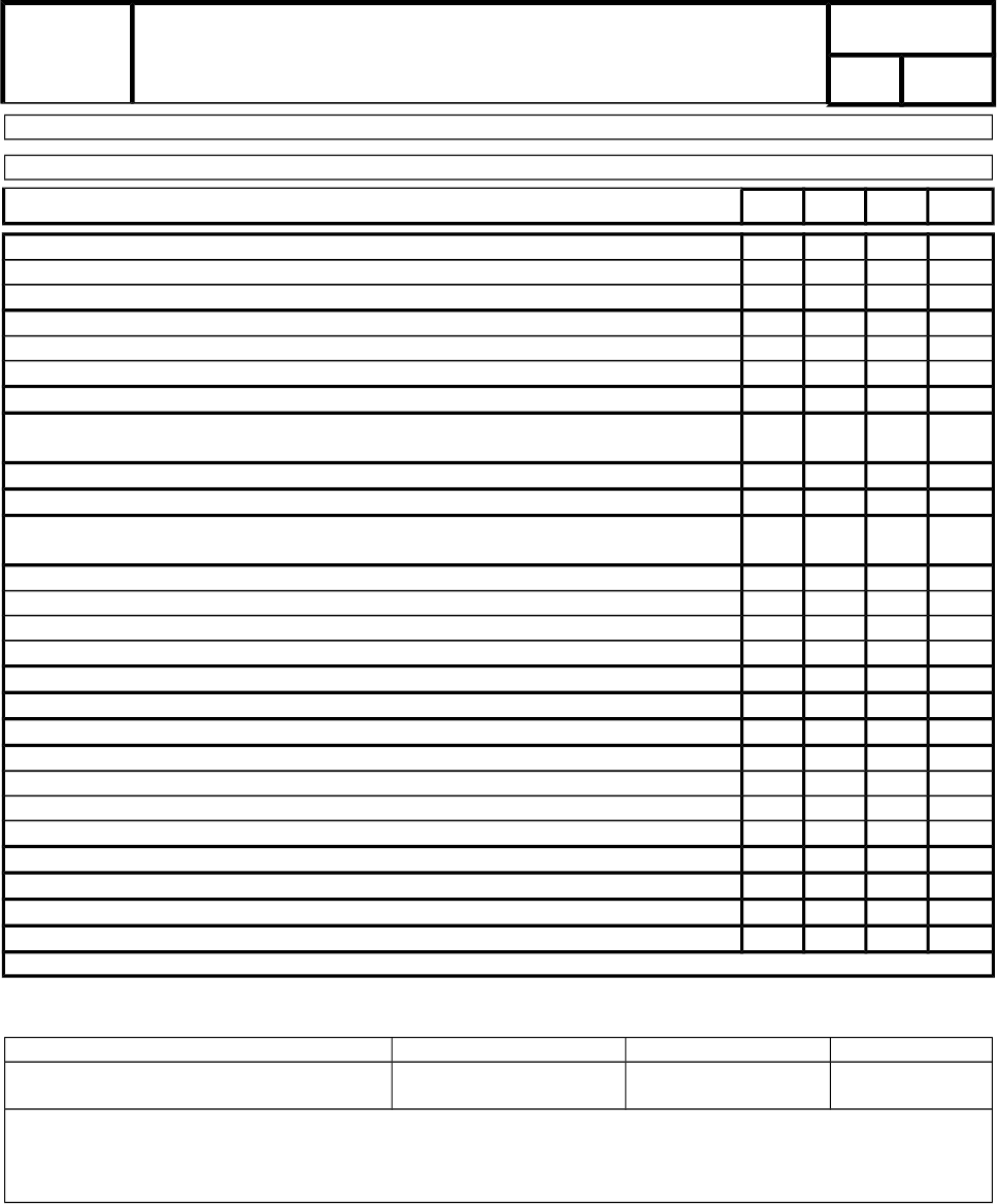 - 1 - CHECK – LIST GUINDASTE HIDRÁULICO Código: SEG-NWN/12 Folha: 1/1 Revisão: 00 Equipamento: Empresa: ITENS A SEREM OBSERVADOS C NC P NA Verificar vazamento nas conexões Verificar condições das mangueiras Verificar aperto dos parafusos de fixação das sapatas Verificar vazamento na saída da bomba hidráulica Abrir lança e verificar empeno Abrir lança e verificar folga Condições do moitão (gancho) e da trava de segurança Verificar vazamentos e condições de operação nas manetes de comando do guincho e das patolas Operador treinado Tambores de Cabo (faceamento) Verificar se a tabela de içamento de carga ou gráfico de carga encontra-se legível e de fácil acesso Indicador de carga na lança Roldanas do moitão e da lança Estrutura de fixação do equipamento Cabos de aço Cintas Freios e pneus Lanternas Os Retrovisores estão ok? Equipamentos de segurança Nível de óleo hidráulico Sistema Elétrico Sistema e Transmissão Alarme de ré Documento do Veículo Habilitação Legenda: C = Conforme NC = Não Conforme P = Parcialmente NA = Não se Aplica Nome Cargo Visto Data Observações: