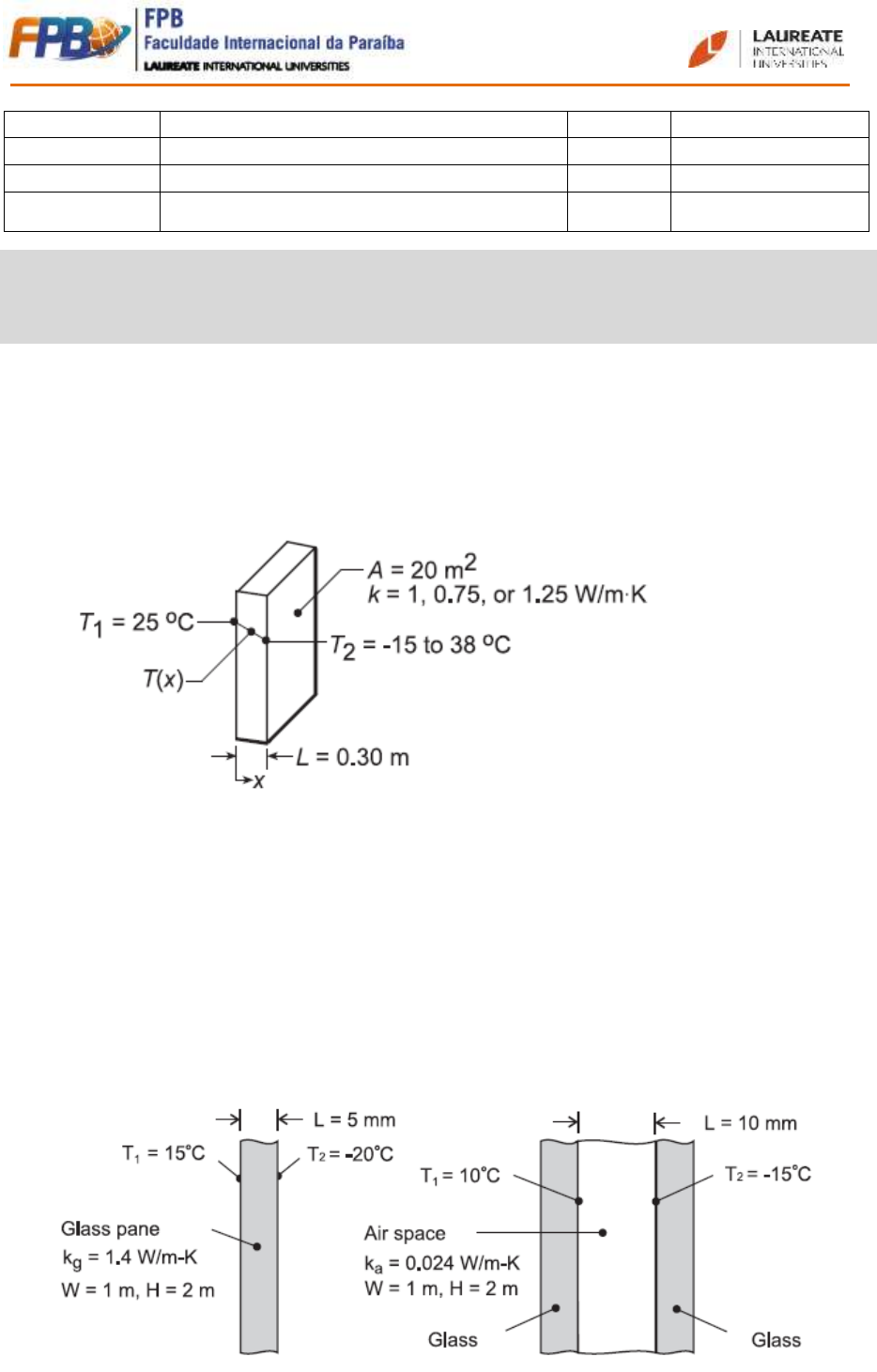 Curso: Turma: Disciplina: FENÔMENOS DE TRANSPORTE Turno: Professor (a): JOSIANE OLIVEIRA Data: Aluno: 1-Uma parede de concreto com área superficial de 20m2 e espessura 0,3m , separa uma sala com ar condicionado do ar ambiente. A temperatura interna da parede é mantida a 25ºC , e a condutividade térmica do concreto é 1W/m.K. Determine a perda de calor através da parede externa para temperaturas ambientes na faixa de -15ºC a 38ºC , que correspondem aos extremos inverno e verão , respectivamente. (resp. 2667 W) 2- Uma janela de vidro, com W = 1 m de largura e H = 2 m de altura, tem espessura de 5 mm e uma condutividade térmica de kv= 1,4 W/(m ∙ K). Se em um dia de inverno as temperaturas das superfícies interna e externa do vidro são de 15°C e −20°C, respectivamente, qual é a taxa de perda de calor através do vidro? Para reduzir a perda de calor através da janela, é costume usar janelas de vidro duplo nas quais as placas de vidro adjacentes são separadas por uma camada de ar. Se o afastamento entre as placas for de 10 mm e as temperaturas das superfícies do vidro em contato com os ambientes estiverem nas temperaturas de 10°C e −15°C, qual é a taxa de perda de calor em uma janela de 1 m × 2 m? A condutividade térmica do ar é ka = 0,024 W/(m∙ K). Resp qv = 19600W ; qar= 120W 3ª UNIDADE LISTA DE EXRCÍCIOS – Transferência de calor 3- Um recipiente barato para alimentos e bebidas é fabricado com poliestireno (k=0,023 W/(mK)), com espessura de 25mm e dimensões interiores de (0,8m×0,6m×0,6m). Sob condições nas quais a temperatura da superfície interna, de aproximadamente 2ºC, é mantida por uma mistura gelo-água e a temperatura da superfície externa de 20ºC é mantida pelo ambiente, qual é o fluxo térmico através das paredes do ambiente? Considerando desprezível o ganho de calor pela base do recipiente ( 0,8m x 0,6m), qual é a carga térmica total para as condições especificadas? Resp: 35,9W 4- Você experimenta um resfriamento por convecção toda vez que estende sua mão para fora da janela de um veículo em movimento ou que a imerge em uma corrente de água fria. Com a superfície de sua mão a uma temperatura de 30ºC, determine o fluxo de calor por convecção para (a) o caso de um veículo a 35 km/h em meio ao ar a -5ºC e com coeficiente de transferência de calor por convecção de 40W/m2 K, e para (b) uma corrente de água com velocidade de 0,2m/s, temperatura de 10oC e coeficiente de transferência por convecção de 900W/m2K. Qual a condição que o faria sentir mais frio? Compare estes resultados com uma perda de calor de aproximadamente 30W/m2 para condições ambiente normais. Resp: a) qar= 1,400 w/m2 b) 18,000 w/m2 5- Sob condições nas quais a mesma temperatura em um quarto é mantida por um sistema de aquecimento ou resfriamento, não é incomum uma pessoa sentir frio no inverno e estar confortável no verão. Forneça uma explicação razoável para esta situação (apoiada em cálculos), considerando um quarto cuja temperatura ambiente seja mantida a 20ºC ao longo do ano, enquanto suas paredes encontram-se normalmente a 27ºC e 14ºC no verão e no inverno respectivamente. A superfície exposta de uma pessoa no quarto pode ser considerada a uma temperatura de 32ºC ao longo do ano, com uma emissividade 0,90. O coeficiente associado a transferência de calor por convecção natural entre a pessoa e o ar do quarto é de aproximadamente 2W/(m2.K) Resp. qrad= 28,3 w/m2 qrad= 95,4 w/m2 6-Um recipiente fechado (garrafa térmica) cheio de café quente encontra-se em uma sala cujo ar e paredes estão a uma temperatura fixa. Identifique todos os processos que contribuem para o resfriamento do café. Comente sobre as características que contribuiriam para um melhor projeto do recipiente. (Obs: o recipiente é constituído por um frasco de plástico, um espaço contento ar e outro invólucro plástico) 7- A parede externa de uma casa é composta por um a camada de 20 cm de espessura de tijolo comum e uma camada de 5 cm de gesso. Qual a taxa de transferência de calor por unidade de área, se a face externa da parede se encontra à 35 °C e a face interna à 20 °C? Dados: ktijolo= 0,69 W/m.K , kgesso= 0,48 W/m.K 8- A base de concreto de um porão tem 11 metros de comprimento, 8 m de largura e 0,20 m de espessura. Durante o inverno, as temperaturas são normalmente de 17°C e 10°C em suas superfícies superior e inferior, respectivamente. Se o concreto tiver uma condutividade térmica de 1,4 W/m.K, qual é a taxa de perda de calor através da base? (Resp. 4312 W) 9- As temperaturas interna e externa de uma janela de vidro com 5 mm de espessura são de 15°C e 5°C. Qual é a perda de calor através de uma janela com dimensões de 1 m por 3 m? A condutividade térmica do vidro é de 1,4 W/m.K. (Resp. 8400 W) 10-O teto de um carro em um estacionamento absorve um fluxo solar radiante de 800 W/m². A superfície inferior do teto encontra-se isolada termicamente. O coeficiente de transferência de calor por convecção entre o teto do carro e o ar ambiente é de 12 W/m².K. a) Desprezando a troca térmica por radiação com a vizinhança, calcule a temperatura do teto em condições de regime estacionário se a temperatura do ar ambiente for de 20°C. b) Para a mesma temperatura do ar ambiente, calcule a temperatura do teto para uma emissividade de sua superfície igual a 0,8. (Resp. a) 86,7°C / b) 47°C) 11- O coeficiente de transferência convectiva de calor entre uma superfície a 40º C e o ar ambiente, a 20º C, é de 20W/m2 .K . Calcular o fluxo de calor que sai da superfície por convecção. 12-O ar a 300º C sobre uma chapa plana de 0,50 m por 0,25m . Se o coeficiente de transferência convectiva de calor for 24020W/m2 .K, determinar a taxa de transferência de calor através de uma face da chapa quando a temperatura for mantida a 40ºC.