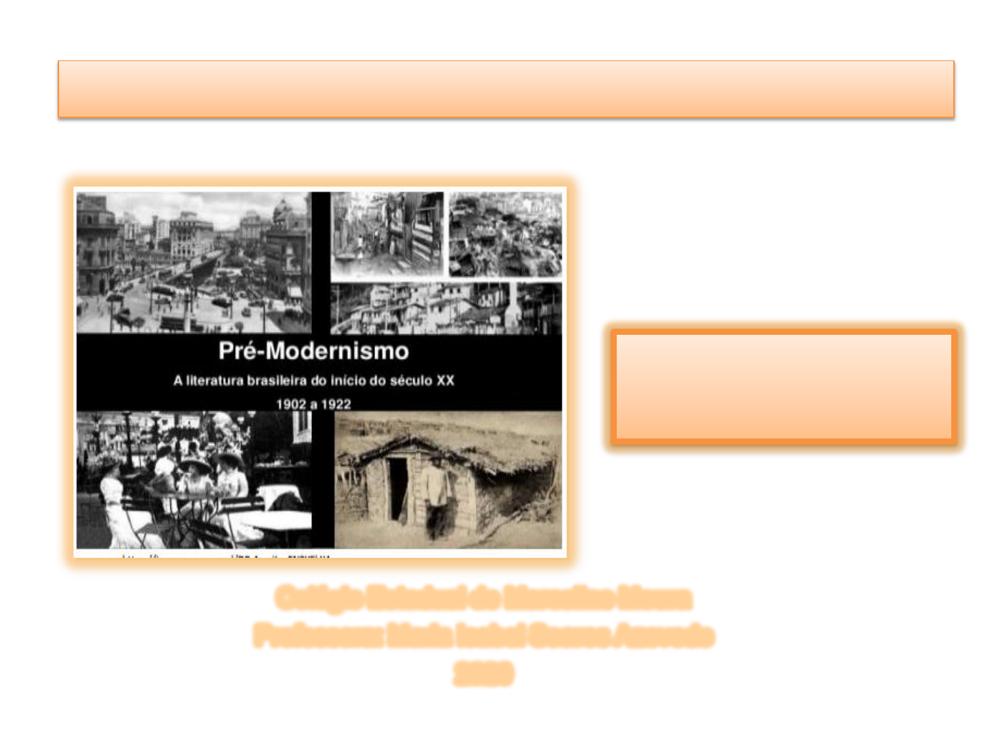 Pré-Modernismo – Semana de arte Moderna 3ª Série do Ensino Médio 01 Aula da Quarentena. Colégio Estadual de Marcolino Moura Professora: Maria Isabel Soares Azevedo 2020 O Pré-Modernismo foi um período de intensa movimentação literária que marcou a transição entre o Simbolismo e o Modernismo. Caracteriza-se pelas produções situadas entre 1900 e 1922 com a Semana de Arte Moderna. Contexto Histórico do Pré-Modernismo O início do século XX foi marcado por confrontos internacionais, que resultou na Primeira Guerra Mundial e que terminou com o surgimento de uma nova potência: os Estados Unidos. Em 1917, com a Revolução Russa, o proletariado tomou o poder. Começaram, então, a tomar forma dois regimes opostos: o comunismo e o capitalismo. No Brasil, o Pré-Modernismo chega no momento em que o país está inserido na Belle Époque, ou seja, em uma época de renovação e avanços científicos e tecnológicos causados pela influência francesa, principalmente no Rio de Janeiro. Características do Pré-Modernismo •Ruptura com o academicismo •Ruptura com o passado e a linguagem parnasiana •Linguagem coloquial, simples •Exposição da realidade social brasileira •Regionalismo e nacionalismo •Marginalidade das personagens: o sertanejo, o caipira, o mulato •Temas: fatos históricos, políticos, econômicos e sociais O Pré-Modernismo contou com uma rica produção em verso e em prosa. Na poesia, destaca-se o poeta Augusto dos anjos. Na prosa Euclides da Cunha Monteiro Lobato e Lima Barreto. Augusto dos Anjos Augusto dos Anjos, conhecido com Poeta da Morte, foi um escritor simbolista brasileiro. Ocupou a cadeira n° 1 da Academia Paraibana de Letras. Poeta paraibano, identificado muitas vezes como simbolista ou parnasiano, mas muitos críticos, como o poeta Ferreira Gullar, concordam em situá-lo como pré- moderno . É conhecido como um dos poetas mais estranhos do seu tempo , e até hoje sua obra é admirada (e detestada) tanto por leigos como por críticos literários. Os poemas de sua única obra, Eu (1912), chocam pela agressividade do vocabulário e pela visão dramaticamente angustiante da matéria, da vida e do cosmo. Integram a linguagem termos até então considerados antipoéticos, como escarro , verme , germe , etc. Os temas, igualmente, são inquietantes: a prostituta , as substâncias que compõem o corpo humano, a decrepitude dos cadáveres , os vermes , o sêmen , etc. Em síntese, a poesia de Augusto dos Anjos é marcada pela união de duas concepções de mundo distintas: de um lado, a objetividade do átomo; de outro, a dor cósmica , que busca o sentido da essência humana. Obra de Augusto conta com uma instigante popularidade . Talvez tenha sido o poeta mais original de nossa Literatura no tempo em que escrevia. Augusto dos Anjos Popularidade; Originalidade. Aprofundar conhecimento Página 15 a 17 do livro didático Euclides da Cunha Euclides Rodrigues da Cunha nasceu em Cantagalo, no dia 20 de janeiro de 1866 e foi um escritor, sociólogo, repórter jornalístico, historiador, geógrafo, poeta e engenheiro brasileiro. Euclides foi assassinado em agosto de1909, devido a questões familiares. Aos 18 anos Euclides publica seus primeiros artigos, fundando o jornal O Democrata. Em1886, entra para a Escola Militar da Praia Vermelha, mas é expulso por suas ideais republicanas. Aos 30 anos passa a se dedicar à engenharia civil, porém, continua a escrever artigos e em 1897 volta a colaborar com o jornal O Estado de São Paulo como correspondente, cobrindo a quarta expedição da Guerra de Canudos, campanha iniciada em 1893 por Antônio Conselheiro no interior da Bahia. Aprofundar conhecimento Página 15 do livro didático. Em 1902, cinco anos após a Campanha de Canudos, ele publica Os Sertões, considerado um dos melhores livros da literatura moderna brasileira. Em 1903, é eleito para a Academia Brasileira de Letras e toma posse também no Instituto Histórico e Geográfico Brasileiro. Primeira edição do livro “Os Sertões” Além de “Os Sertões”, Euclides também escreveu “A margem da história„”, “Contrastes e Confrontos”, ”Um paraíso perdido”, e tantas outras obras e artigos que persistem no tempo sendo indispensável seu conhecimento. “Estamos condenados à civilização. Ou progredimos ou desaparecemos.” Euclides da Cunha 1866 – 1909 Além de os sertões, escreveu também, os seguintes livros: Peru versus Bolívia, 1907; Contrastes e Confrontos, 1907; A Margem da História, 1909 Monteiro Lobato José Bento Renato Monteiro Lobato, mais conhecido como Monteiro Lobato foi um dos mais influentes escritores do século XX. Foi também um importante editor de livros inéditos e autor de importantes traduções e ficou mais conhecido por seus livros infantis como o Pica-pau amarelo. Contista, ensaísta e tradutor, este grande nome da literatura brasileira nasceu na cidade de Taubaté, interior de São Paulo, no ano de 1882. Formado em Direito, atuou como promotor público até se tornar fazendeiro, após receber herança deixada pelo avô, que administrou sem êxito. Diante de um novo estilo de vida, Lobato vendeu a fazenda e passou a publicar seus primeiros contos em jornais e revistas, como para o Jornal Folha de São Paulo ,onde cria seu primeiro personagem, Jeca Tatu ,publica seu primeiro livro “Urupês” e cria a primeira editora do Brasil. Posteriormente, reuniu uma série deles em Urupês, obra prima deste famoso escritor. Aprofundar conhecimento Página 17 do livro didático. Lima Barreto “Poucos escritores brasileiros foram tão obsessivos na investigação da temática do preconceito quanto Lima Barreto. Mulato, nasceu em 1881, mesmo ano em que o também mulato Machado de Assis introduzia o Realismo na literatura nacional com a publicação de Memórias Póstumas de Brás Cubas e Aluísio Azevedo inaugurava a Naturalismo no Brasil com o romance O Mulato . Não são apenas coincidências. A questão do pr