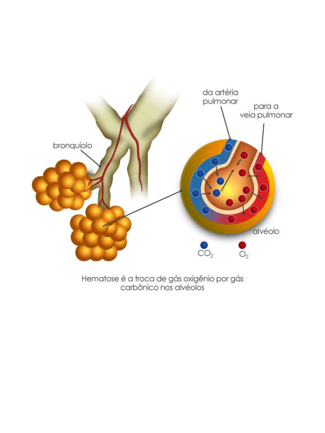 Sistema Respiratório; Fisiopatologia Respiratória. É constituído por um conjunto de órgãos responsáveis pelo transporte de gases com a finalidade de “levar” até a célula oxigênio e “retirar” gás carbônico, produto da atividade celular. Possui função ativa na Fonação (produção do som).Podemos dividir o sistema respiratório em uma parte condutora que tem a função de conduzir o ar até a região onde ocorre hematose (troca de gases) e uma porção respiratória, que devido a sua histologia permite o transporte de gases, no caso 02 e co2. A partir de agora iremos estudar o trajeto do ar durante a inspiração, conhecendo os órgãos assim como as estruturas anatômicas e histológicas por onde o ar irá passar. Dessa forma você conseguirá compreender algumas situações clínicas importantes para sua formação. A primeira região por onde o ar passa, chama-se vestíbulo nasal, porém antes de falarmos dele, é preciso que você conheça a estrutura que forma o arcabouço externo do tubo respiratório denominado NARIZ. Os ossos frontais, maxilas e nasais delimitam a abertura piriforme (forma de pirâmide). As cartilagens alares, e a cartilagem do septo são uma das constituintes do conhecido septo nasal que também é formado por uma parte óssea (Lâmina perpendicular do etmóide e vômer). Externamente o nariz possui uma raiz, ponto de implantação do nariz na face; um dorso região localizada entre a raiz e o Ápice, que por sua vez é conhecido popularmente como “Ponta do nariz”. A região inferior é chamada de base, a qual possui dois orifícios denominados narinas. Antes de iniciarmos o trajeto do ar, é necessário estudarmos as cavidades localizadas ao redor do Nariz, denominadas Seios Paranasais. Os ossos Maxila, Esfenóide, Frontal e Etmóide, possuem cavidades repletas de ar, revestidas por mucosa, que se comunica com a cavidade nasal através de pequenos tubos. Essas cavidades diminuem o peso do crânio e atuam na fonação, são chamadas de Seios Paranasais. Pronto, agora que já conhecemos as estrutura externas, podemos iniciar nosso trajeto do ar. Para facilitar seu estudo note que ao lado de cada região ou órgão que fizer parte do trajeto do ar na inspiração haverá um número, este, indica a ordem de locais por onde o ar passa durante a inspiração. Como já havíamos visto, a primeira região interna por onde o ar passa chama-se vestíbulo nasal (1) onde são encontrados numerosos pêlos chamados de vibrissas, estruturas responsáveis por reter macro partículas existentes no ar. Posteriormente ao vestíbulo nasal é encontrada a cavidade nasal propriamente dita (2); dividida em duas metades, através do septo nasal. Cada metade apresenta três elevações chamadas de conchas nasais e três fendas denominadas de meatos nasais (Fig. 4). As conchas nasais superiores são constituídas histologicamente por epitélio respiratório (Fig. 5) acompanhado de células olfatórias, o que nos garante o sentido de olfação (habilidade de sentir e distinguir odores). As concha nasais médias e inferiores são formadas apenas por epitélio respiratório. Lâmina Histológica – Mucosa da Traquéia Posteriormente à cavidade nasal propriamente dita, encontramos um tubo muscular comum para o sistema respiratório e digestório, chamado de faringe. Por ser relativamente longa, a faringe apresenta três parte, sendo de superior para inferior a parte nasal da faringe (3), parte oral da faringe (4) e a parte laríngea da faringe (5) que continua-se com o esôfago. Na parte nasal da faringe é encontrado um orifício que permite a comunicação da faringe com o ouvido médio, chamado de óstio faríngeo da tuba auditiva. Esse orifício atua como válvula de normalização da pressão de ar dentro do ouvido. Observe o Epitélio respiratório e uma célula caliciforme (seta). Na transição entre a parte nasal para a oral da faringe é encontrado um anel linfático (defesa) formado por diversas estruturas denominadas tonsilas, as quais são mais conhecidas as tonsilas faríngeas (popularmente chamada de adenoide ou carne esponjosa). Esse anel linfático é importante na detecção imediata e defesa de agentes infecciosos. Existem pessoas nas quais as tonsilas faríngeas são “hiperativas“, nesses casos é necessária a retirada cirúrgica devido a problemas respiratórios. Da parte laríngea da faringe o ar desloca-se para anterior, adentrando um novo tubo conhecido como laringe. A laringe é um tubo formada por cartilagens, ligamentos e músculos que apresenta duas função básicas: Passagem de Ar e Fonação (produção de som). Dentre as seis cartilagens encontradas na laringe, temos a cartilagem tireóidea, cricóidea e a epiglote como as de maior tamanho. A maior de todas é a tireóidea, localizada na região anterior da laringe, com o formato de escudo, formada por lâmina direita e esquerda. Entre as lâminas existe a proeminência laríngea, popularmente chamada de pomo de adão. Inferiormente à cartilagem tireóidea, é encontrada a cartilagem cricóidea, essa em formato de anel e bem menor do que a tireóidea. Localizada posteriormente às cartilagens estudadas, a Epiglote ou cartilagem epiglótica, possui o formato de folha, tem importância fundamental na deglutição impedindo que o alimento, seja sólido ou liquido adentre a laringe. Ao analisarmos a morfologia interna da laringe entendemos o porque ela é um órgão importante para a fonação. São encontradas em seu interior, duas estruturas com o formato de pequenas “cordas”, chamadas de pregas vestibulares e vocais, entre as duas é encontrada uma pequena cavidade denominada ventrículo da laringe. A atuação dessas estruturas conjuntamente à músculos promovem a aproximação das pregas quando expiramos, fazendo com que ocorra vibração das mesmas, ocorrendo a produção do som. Em contrapartida durante nossa inspiração existe o afastamento das pregas, para que o ar 