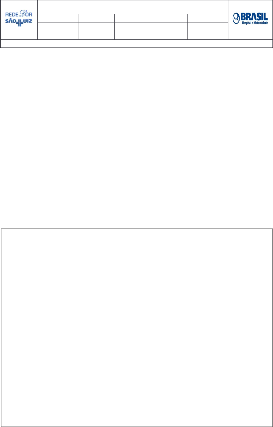 NORMA CORPORATIVA Código PCS_049 Elaboração 07/04/2016 Efetivação 07/04/2016 Versão 00 Elaboração: Ana Flávia Olivotti Aprovação: Cleber do Lago Mazzaro PADRONIZAÇÃO – DOCUMENTO PROTOCOLO PADRÃO PCS Hipoglicemia Neonatal Localizador Data Vigência Revisão Página HMB.DCL.PCS.049 07/04/2016 02 anos 00 1/8 Procedimento Operacional Padrão Institucional Vigência Revisão Código Página 06/04/2022 02 HMB.DENFE.POP.13 8/12 preparo e transporte do óbito 1. FINALIDADE Orientar sobre o preparo e transporte do óbito: · Paciente adulto · Natimorto, recém-nascido, bebê e criança. · Preparo do Corpo quando for encaminhado para S.V.O ou I.M.L · Produto de aborto · Cadáver suspeito ou confirmado por COVID-19 2. ABRANGÊNCIA Este Procedimento Operacional Padrão abrange todos os pacientes que evoluírem a óbito no Hospital e Maternidade Brasil – Rede D’Or São Luiz. 3. EXECUTANTES · Enfermeiros (as), Auxiliar / Técnico de Enfermagem. 4. DESCRIÇÃO ETAPAS DO PROCEDIMENTO I. Equipe de Enfermagem I.I Preparo e encaminhamento do corpo - paciente adulto 1. Após a constatação e liberação do atestado de óbito pela equipe médica, comunicar óbito para recepção que providenciará a documentação necessária; 2. Entregar todos os pertences e exames aos familiares e em seguida encaminha-los à recepção central para os acertos administrativos e trâmites legais; 3. Higienizar as mãos com água e sabão ou álcool em gel 70% e reunir todo o material; 4. Isolar o leito com a cortina/biombo; 5. Separar e preparar o material em uma mesa auxiliar. Material: Kit de curativo, toalha descartável branca (pano Sontara branco), tesoura, algodão, atadura de crepe, fita adesiva (tipo micropore ou crepe), gaze, impresso de identificação de óbito (3 vias - anexo 1), saco plástico transparente tipo cristal, luvas de procedimento, máscara descartável e avental descartável; 6. Vestir paramentação: avental descartável e luvas de procedimentos e/ou paramentação conforme precaução pré-estabelecida; 7. Retirar travesseiros e coxins, colocar o corpo em posição horizontal, alinhar os membros e se for necessário fechar os olhos e a boca com atadura de crepe e/ou micropore; 8. Despir o corpo, retirar todos os cateteres, sondas e drenos (se possuir); 9. Desprezar todo o material em saco plástico cristal. OBS.: Posteriormente jogar o saco plástico cristal em lixo infectante (saco branco); 10. Se presença de lesões, estomias, pertuito de drenos ou de acessos vasculares, realizar curativos compressivos com auxílio de gazes e fita adesiva (esparadrapo/micropore) para que não haja vazamentos de líquidos/fluidos. OBS.: Se necessário realizar banho ou higiene do corpo; 11. Tamponar ouvidos, orofaringe, vestíbulo nasal, região vaginal e anal, com auxílio de pinça. Introduzir o algodão o mais profundo possível. OBS.: O pênis deve ser amarrado com uma gaze aberta, colocar fralda descartável e vestir a roupa no paciente (se disponível). OBS.: Caso a família entregue a roupa na portaria, o colaborador da segurança patrimonial deverá confirmar o nome completo do paciente, identificar a roupa e acionar a equipe de enfermagem do setor de origem do óbito; 12. Amarrar o queixo até o alto da cabeça, os pés e as mãos (juntos) com faixa crepe; 13. Envolver o corpo em lençol; 14. Identificar o corpo com uma das vias do impresso “Identificação de Óbito” prendendo-a com uma fita adesiva sobre o tórax, a outra via deve ser colada no lençol que envolve o corpo, a terceira via deverá ser entregue na portaria para o segurança quando o corpo for deixado na morgue; 15. Comunicar a Segurança Patrimonial através do ramal 6867 antes de encaminhar o corpo para iniciar o fluxo de transferência do óbito para a morgue, conforme fluxo-Anexo 2. 16. Transportar o corpo em maca morgue ou na impossibilidade, transportá-lo em maca de transporte sem colchonete e cobrir com um lençol; 17. A transferência pode ser realizada por dois membros da equipe de enfermagem ou um membro da equipe de enfermagem e um auxiliar de transporte, que é acionado via sistema ERITEL – Central de Transporte de Pacientes- deve ser preenchido o formulário com os dados do paciente / setor de origem / setor de destino e em campo transporte: selecionar óbito; 18. Realizar substituição da paramentação, se suja; 19. Um dos profissionais envolvidos no transporte deve retirar as luvas, realizar higiene das mãos conforme PT_26 e colocar luva somente em uma das mãos, a outra deverá ficar sem luva para tocar nas superfícies; 20. Realizar o transporte até a morgue, transferir o corpo para maca de Inox; 21. Retirar a paramentação e lavar as mãos no local; 22. Ainda na morgue, realizar a desinfecção da maca de transporte do óbito (calçar luvas de procedimento) com Oxivir (aplicar produto em pano multiuso verde descartável e friccionar em movimento único unidirecional do mais limpo para o mais sujo por toda superfície assim como grades, rodas e base da maca). Em caso de grande quantidade de matéria orgânica, realizar a limpeza com água, sabão e finalizar com Oxivir; 23. Desprezar as luvas em lixo comum (saco preto); 24. Retornar a maca para o setor de origem; 25. Deixar o quarto/leito em ordem e higienizar as mãos conforme PT_26 26. Fazer anotação / evolução de enfermagem no sistema Tasy. I.II Preparo e encaminhamento do corpo - natimorto, recém-nascido, bebê e criança. 1. Para natimorto não há indicação de tamponamento. Para recém- nascido, bebê e criança, após a retirada de todos os dispositivos invasivos, avaliar condições do corpo, e se for necessário, realizar tamponamento, devendo ser feito de forma superficial e seguir as etapas do preparo do corpo do paciente adulto. Se não for necessário, realizar higiene/banho, colocar fralda e vestir; 2. Colocar pulseira de identificação e impresso de óbito em três vias (identificar com o nome e data de nasciment