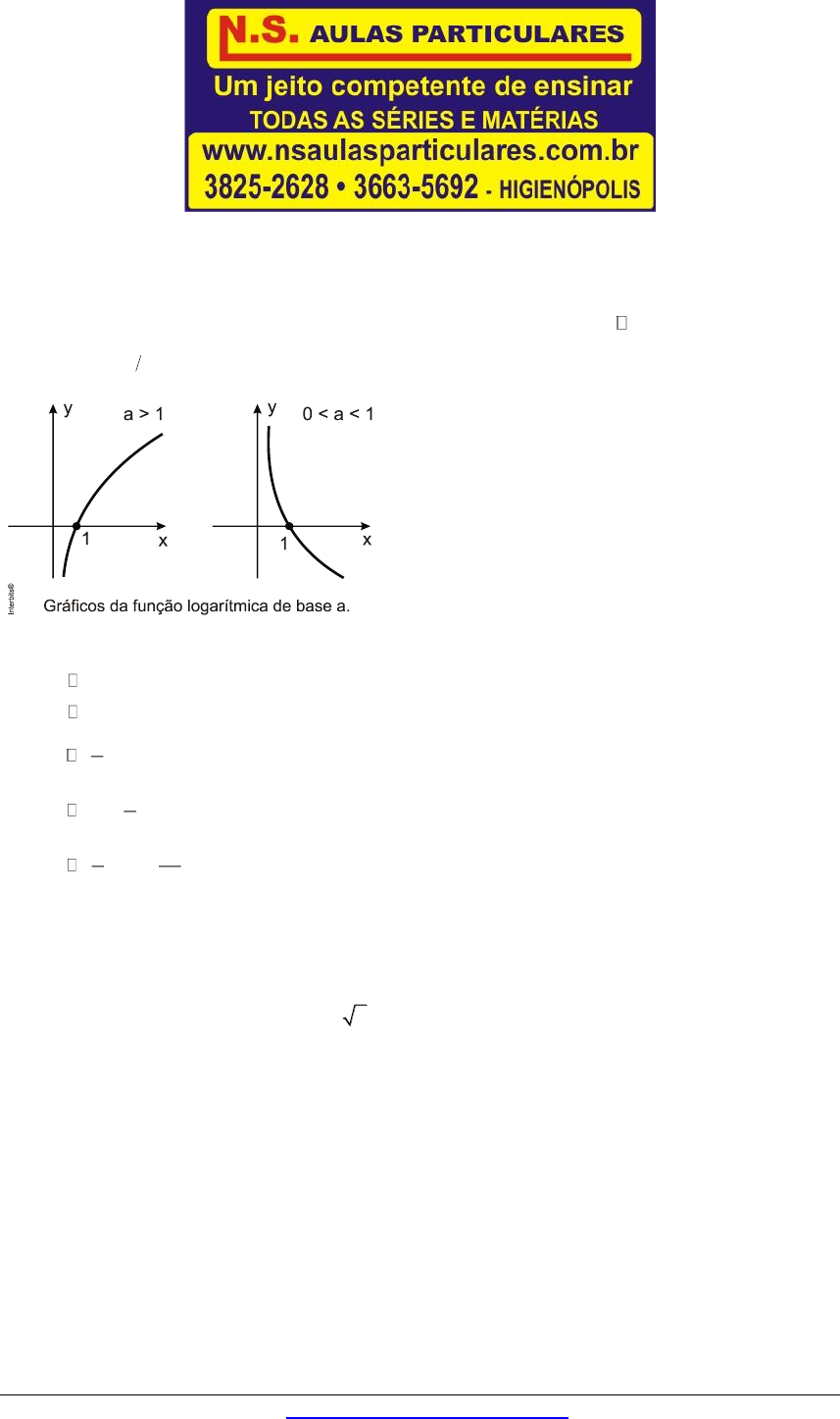 www.nsaulasparticulares.com.br Página 1 de 9 Função Logarítmica 1. (Fuvest 2013) Seja f uma função a valores reais, com domínio D , tal que 2 10 1 3f(x) log (log (x x 1)), para todo x D. O conjunto que pode ser o domínio D é a) x ; 0 x 1 b) x ; x 0 ou x 1 c) 1x ; x 103 d) 1x ; x ou x 103 e) 1 10x ; x9 3 2. (Espm 2013) Em 1997 iniciou-se a ocupação de uma fazenda improdutiva no interior do país, dando origem a uma pequena cidade. Estima-se que a população dessa cidade tenha crescido segundo a função 2P 0,1 log x 1996 , onde P é a população no ano x, em milhares de habitantes. Considerando 2 1,4, podemos concluir que a população dessa cidade atingiu a marca dos 3600 habitantes em meados do ano: a) 2005 b) 2002 c) 2011 d) 2007 e) 2004 http://www.nsaulasparticulares.com.br/ www.nsaulasparticulares.com.br Página 2 de 9 3. (Ueg 2013) O gráfico da função y log(x 1) é representado por: a) b) c) d) 4. (Espcex (Aman) 2012) Na figura abaixo, dois vértices do trapézio sombreado estão no eixo x e os outros dois vértices estão sobre o gráfico da função real kf x log x, com k 0 e k 1. Sabe-se que o trapézio sombreado tem 30 unidades de área; assim, o valor de k p q é a) 20 b) 15 c) 10 d) 15 e) 20 5. (Uern 2012) O produto entre o maior número inteiro negativo e o menor número inteiro positivo que pertence ao domínio da função 23f(x) log (x 2x 15) é a) – 24. b) – 15. c) – 10. d) – 8. http://www.nsaulasparticulares.com.br/ www.nsaulasparticulares.com.br Página 3 de 9 6. (Insper 2011) O gráfico a seguir representa as funções xf(x) 2 e 2g(x) log x. Seja A um número inteiro tal que: f(A) g(A) 10 g(f(A) g(A)) 3 Então, g(g(A)) é aproximadamente igual a a) 0,6. b) 1,2. c) 1,8. d) 2,4. e) 3,0 7. (Udesc 2009) O conjunto de números reais que representa a interseção entre os domínios das funções f(x) = 2 2x 6x 8 e g(x) = log(x + 2) é um intervalo: a) aberto à direita e fechado à esquerda. b) aberto nos dois extremos. c) fechado nos dois extremos. d) infinito. e) aberto à esquerda e fechado à direita. 8. (Pucrs 2008) A representação é da função dada por y = f(x) = logn (x) O valor de logn (n 3 +8) é a) 2 b) 4 c) 6 d) 8 e) 10 http://www.nsaulasparticulares.com.br/ www.nsaulasparticulares.com.br Página 4 de 9 9. (Uece 2008) Na figura a seguir estão representados seis retângulos com lados paralelos aos eixos coordenados e vértices opostos sobre o gráfico da função f(x) = log2 x, x > 0. A soma das áreas dos seis retângulos é igual a a) 2 unidades de área b) 3 unidades de área c) 4 unidades de área d) 5 unidades de área 10. (Unesp 2008) O brilho de uma estrela percebido pelo olho humano, na Terra, é chamado de magnitude aparente da estrela. Já a magnitude absoluta da estrela é a magnitude aparente que a estrela teria se fosse observada a uma distância padrão de 10 parsecs (1 parsec é aproximadamente 3 × 10 13 km). As magnitudes aparente e absoluta de uma estrela são muito úteis para se determinar sua distância ao planeta Terra. Sendo m a magnitude aparente e M a magnitude absoluta de uma estrela, a relação entre m e M é dada aproximadamente pela fórmula M = m + 5 . log3 (3 .d -0 ' 48 ) onde d é a distância da estrela em parsecs. A estrela Rigel tem aproximadamente magnitude aparente 0,2 e magnitude absoluta - 6,8. Determine a distância, em quilômetros, de Rigel ao planeta Terra. 11. (Ufrj 2007) Seja f: ] 0 , ∞ [ IR dada por f(x) = log3 x. Sabendo que os pontos (a, -â), (b, 0), (c, 2) e (d, â) estão no gráfico de f, calcule b + c + ad. http://www.nsaulasparticulares.com.br/ www.nsaulasparticulares.com.br Página 5 de 9 12. (Fgv 2007) O gráfico que representa uma função logarítmica do tipo f(x) = 2 + a . log (b . x), com a e b reais, passa pelos pontos de coordenadas 1 ,6 50 e 1 ,2 5 . Esse gráfico cruza o eixo x em um ponto de abscissa a) 3 10 4 . b) 14 25 . c) 10 5 . d) 7 10 . e) 10 4 . 13. (Ufjf 2007) Na figura a seguir, encontram-se representados o gráfico da função f : ]0,∞[ IR, definida por f(x) = log2 x, e o polígono ABCD. Os pontos A, C e D estão sobre o gráfico de f. Os pontos A e B estão sobre o eixo das abscissas. O ponto C tem ordenada 2, o ponto D tem abscissa 2 e BC é perpendicular ao eixo das abscissas. Sabendo que os eixos estão graduados em centímetros, a área do polígono ABCD é: a) 2,5 cm 2 . b) 3 cm 2 . c) 3,5 cm 2 . d) 4 cm 2 . e) 4,5 cm 2 . http://www.nsaulasparticulares.com.br/ www.nsaulasparticulares.com.br Página 6 de 9 14. (Ufpb 2007) Sabe-se que a pressão atmosférica varia com a altitude do lugar. Em Fortaleza, ao nível do mar, a pressão é 760 milímetros de mercúrio (760 mmHg). Em São Paulo, a 820 metros de altitude, ela cai um pouco. Já em La Paz, capital da Bolívia, a 3.600 metros de altitude, a pressão cai para, aproximadamente, 500 mmHg. Nessa cidade, o ar é mais rarefeito do que em São Paulo, ou seja, a quantidade de oxigênio no ar, em La Paz, é menor que em São Paulo. (Adaptado de: <www.searadaciencia.ufc.br>. Acesso em: 02 ago. 2006). Esses dados podem ser obtidos a partir da equação h = 18400 log10(760/P), que relaciona a pressão atmosférica P, dada em mmHg, com a altura h, em metros, em relação ao nível do mar. Com base nessa equação, considere as seguintes afirmações: I. Quando h = 1840 m, a pressão será P = 76 mmHg. II. Quando P = 7,6 mmHg, a altura será h = 36800 m. III. A pressão P é dada em função da altura h pela expressão De acordo com as informações dadas, está(ão) correta(s) apenas: a) I b) II c) III d) I e II e) II e III 15. (Pucmg 2006) Na figura, os pontos A e B pertencem ao gráfico da função y = log2 x. A medida da área do trapézio de vértices A, B, (4, 0) e (8, 0) é cinco vezes a medida da área do triângulo de vértices A, (4, 0) e (m, 0). Então o valor de m é: a) 0 b) 1 c) 2 d) 3 http://www.nsaulasparticulares.com.br/ www.nsaulasparticulares.com.br Página 7 de 9 Gabarito: Resposta da questão