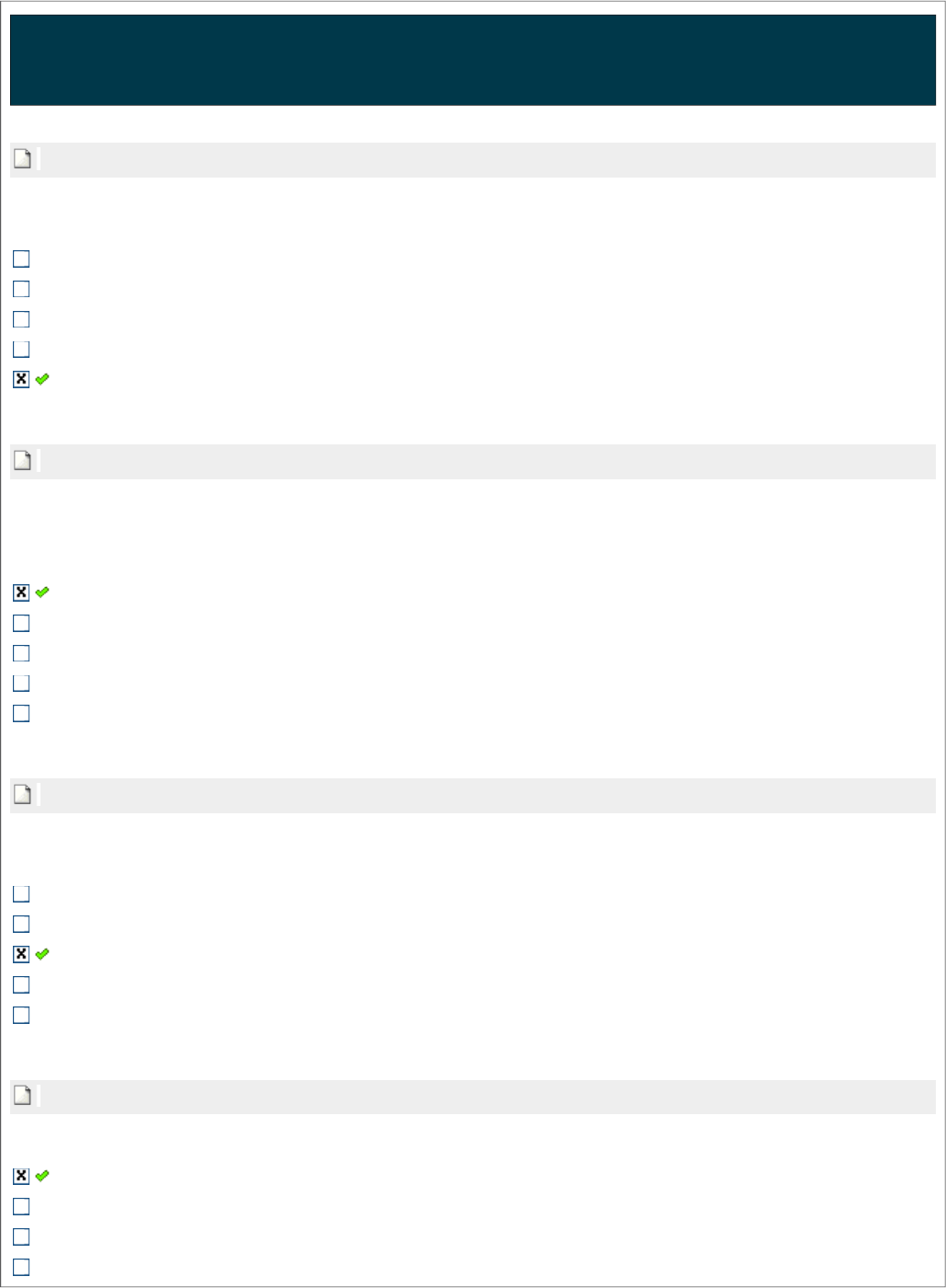 Disc.: TEORIA DA NATAÇÃO Acertos: 10,0 de 10,0 15/04/2020 1a Questão (Ref.:201709528464) Acerto: 1,0 / 1,0 As provas de revezamento são consideradas clássicas nas competições e normalmente disputadas braçada a braçada pelas principais equipes. Em Jogos Olímpicos e Campeonatos Mundiais, há uma diferença significativa entre elas. Indique qual é: Nos Campeonatos Mundiais só há distância de 4 x 200m Nos Campeonatos Mundiais só há revezamento medley Nos Jogos Olímpicos não há revezamento no nado livre para mulheres Nos Jogos Olímpicos os revezamentos são só provas masculinas Nos Jogos Olímpicos o revezamento misto não consta do programa oficial Respondido em 16/04/2020 16:32:47 2a Questão (Ref.:201711410090) Acerto: 1,0 / 1,0 No meio aquático encontramos alguns tipos de arrasto (resistência), entre eles o arrasto de forma. Marque a alternativa que representa corretamente como ele pode ser reduzido: Aprimorando a técnica de nado Pela raspagem de pelos Utilizando técnicas de nado submerso (até 15 metros) Construindo piscinas sem calhas ou bordas Pela utilização de roupas específicas Respondido em 16/04/2020 16:32:53 3a Questão (Ref.:201709529795) Acerto: 1,0 / 1,0 Para o exercício aquático, a temperatura da água deve ser muito bem controlada PORQUE tanto a água fria como a água quente oferecem riscos à integridade física de praticantes de natação. A respeito das asserções, marque a opção correta: As duas asserções são falsas. A primeira asserção é verdadeira e a segunda é falsa. As duas asserções são verdadeiras e a segunda justifica a primeira. As duas asserções são verdadeiras, mas a segunda não justifica a primeira. A primeira asserção é falsa e a segunda é verdadeira. Respondido em 16/04/2020 16:32:52 4a Questão (Ref.:201709530955) Acerto: 1,0 / 1,0 No processo de ensino, o professor deve estar atento à linguagem utilizada. A esse respeito, assinale a opção que representa infantilização da linguagem: Uso de palavras no diminutivo Uso de palavras no aumentativo Uso de termos técnicos Uso de palavrões Uso de gírias Respondido em 16/04/2020 16:33:11 5a Questão (Ref.:201709532398) Acerto: 1,0 / 1,0 Uma das abordagens da Educação Física que é bastante usada na natação, especialmente com crianças, é a que considera as etapas do desenvolvimento motor e sua prontidão para a aprendizagem. I. A combinação de habilidades de locomoção (como as pernadas) e de estabilização (como os rolamentos e a respiração bilateral) devem ser ensinados, de acordo com o modelo de desenvolvimento de Gallahue et al. (2013), a partir de 7 anos POIS II. Nesta idade os indivíduos se encontram na fase do movimento fundamental. As duas asserções são proposições falsas. As duas asserções são proposições verdadeiras, mas a II não justifica a I. A asserção I é uma proposição verdadeira e a II é uma proposição falsa. As duas asserções são proposições verdadeiras e a II justifica a I. A asserção I é uma proposição falsa e a asserção II é uma proposição verdadeira. Respondido em 16/04/2020 16:33:07 6a Questão (Ref.:201709539624) Acerto: 1,0 / 1,0 Marque a opção que representa corretamente o estilo dos americanos de nadarem o crawl no início do século XX: Respiração bilateral Pernas quase estendidas Respiração lateral Braçadas simultâneas Pernas em tesoura Respondido em 16/04/2020 16:33:42 7a Questão (Ref.:201711398967) Acerto: 1,0 / 1,0 Os nados crawl e costas apresentam muitas características semelhantes entre si. Marque abaixo a opção que não é comum as esses dois nados durante a realização da pernada. Movimento vertical, para cima e para baixo, ascendente e descendente Pernada com pequena flexão de joelhos. Golfinhada submersa até 15m após a saída e virada. Abertura de pernas com amplitude de uma passada normal. Pernada com os pés em dorsiflexão. Respondido em 16/04/2020 16:33:50 8a Questão (Ref.:201709542244) Acerto: 1,0 / 1,0 Até sua regulamentação na década de 1950, via-se elementos do nado borboleta nas provas do nado de peito. Marque a opção que indica corretamente um elemento praticado entre as décadas de 1930 e 1950: Braçada de borboleta com respiração lateral Braçada de borboleta com pernada do peito Braçada de borboleta com pernada de crawl Golfinhadas com braçadas do peito Golfinhadas com braçadas de crawl Respondido em 16/04/2020 16:33:43 9a Questão (Ref.:201709548575) Acerto: 1,0 / 1,0 Por qual motivo o nado de peito foi bastante popular durante a Idade Média? Porque a cabeça ficava emersa Porque a propulsão era facilitada Porque a filipina gerava muita propulsão Porque as pernadas eram uma chicotada Porque a cabeça ficava em imersão Respondido em 16/04/2020 16:34:03 10a Questão (Ref.:201711399381) Acerto: 1,0 / 1,0 Analise as afirmações a seguir: I) A partida do nado de Costas e do revezamento Medley deve ser dentro da água. II) No primeiro apito longo do árbitro geral, os nadadores devem imediatamente entrar na água. III) os atletas só podem se preparar para a saída após mais dois apitos curtos do árbitro geral. A respeito das assertivas acima, responda: As três assertivas estão corretas Somente a segunda e a terceira assertivas estão corretas As três assertivas estão incorretas Somente a segunda assertiva está incorreta Somente a terceira assertiva está incorreta Respondido em 16/04/2020 16:34:19