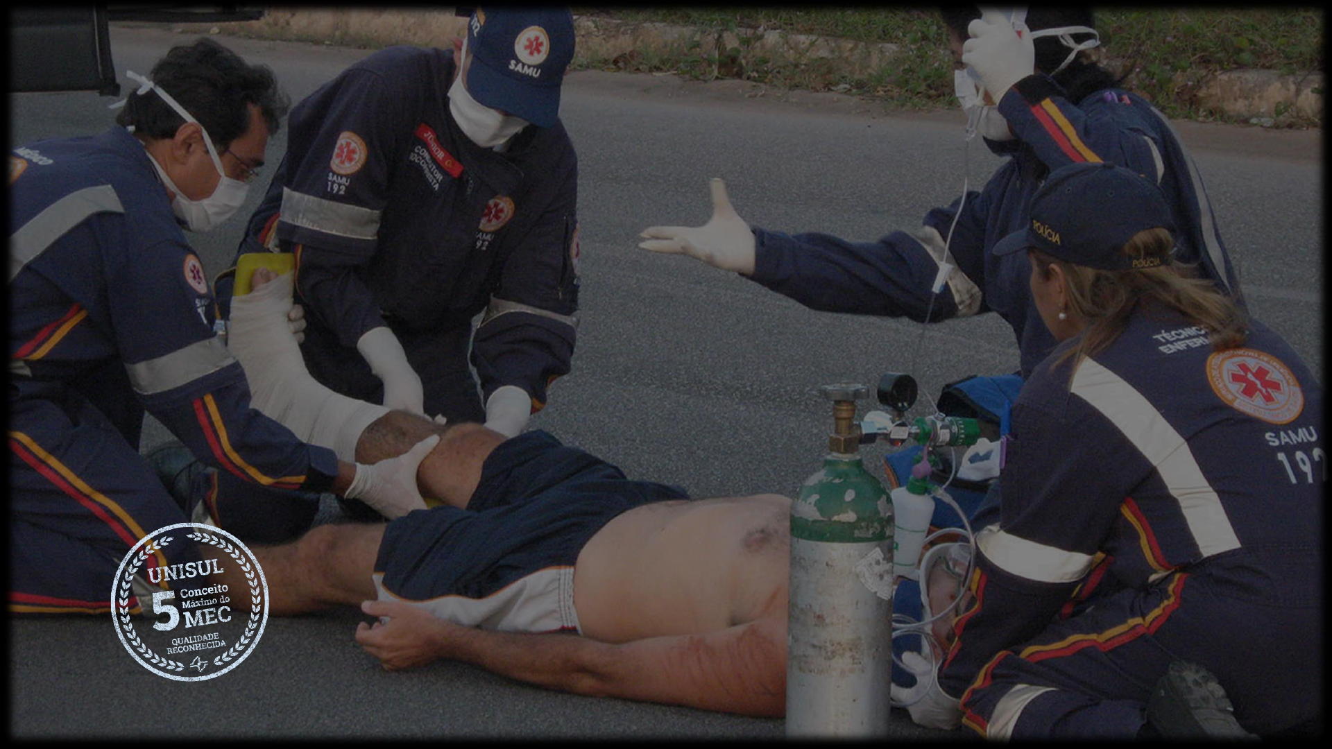 Avaliação e Tratamento do Doente PHTLS, 2017 Professoras: Nazaré O. Nazário Fabiana Oenning da Gama 2020.1 UNIVERSIDADE DO SUL DE SANTA CATARINA CURSO DE MEDICINA DISCIPLINA: SUPORTE BÁSICO DA VIDA Avaliação e Tratamento do Doente Princípios e Conceitos Fundamentais 1. Avaliação é a base do tratamento. 2. Primeiro objetivo avaliação: determinar a condição atual do doente. 3. Avaliação inicial: impressão geral sobre estado saúde e valores basais dos sistemas respiratório, circulatório e neurológico. 4. Condições que colocam a vida em risco: intervenção e a reanimação. 5. Frequentemente a avaliação secundária ocorre durante o transporte do doente. PHTLS - Atendimento Pré-hospitalar ao Traumatizado. 8 ed., 2017. Avaliação e Tratamento do Doente Princípios e Conceitos Fundamentais 6. Realizar avaliação e tratamento de forma rápida e eficiente para minimizar o tempo gasto na cena. 7. Os doentes em estado grave não devem permanecer na cena para tratamento, além do tempo necessário para estabilizá-los para o transporte. 8. Avaliação primária deve ser repetida com frequência, especialmente em doentes com lesões graves. PHTLS - Atendimento Pré-hospitalar ao Traumatizado. 8 ed., 2017. Avaliação e Tratamento do Doente: Período Ouro Dr. Adams Cowley (1965) concebeu a ideia de HORA OURO, na qual seria importante iniciar o cuidado definitivo ao doente traumatizado grave. Posteriormente constatou-se que nem sempre o doente tem o privilégio de uma hora de ouro, assim o conceito evoluiu para o PERÍODO DE OURO. Avaliação e tratamento rápidos/eficientes são o objetivo final. Sempre que possível, o tempo na cena não deve exceder 10 minutos - quanto menor o tempo, melhor! PHTLS - Atendimento Pré-hospitalar ao Traumatizado. 8 ed., 2017. Cirurgião americano, pioneiro na medicina de emergência e no tratamento de traumas de choque. Chamado de "Pai da Medicina do Trauma" , fundador do primeiro centro de traumatismo dos Estados Unidos. Avaliação e Tratamento do Doente Principais preocupações na avaliação e tratamento iniciais do doente traumatizado: 1. Via aérea 2. Oxigenação 3. Ventilação 4. Controle da hemorragia 5. Perfusão 6. Função neurológica Essa sequência é essencial para proteger a capacidade do organismo de ser oxigenado e a habilidade das hemácias de distribuir oxigênio aos tecidos PHTLS - Atendimento Pré-hospitalar ao Traumatizado. 8 ed., 2017. Avaliação e Tratamento do Doente: Estabelecimento de prioridades Prioridades imediatas ao chegar na cena: 1. Avaliação da cena. 2. Reconhecimento de incidentes com múltiplas vítimas. 3. Avaliação e atendimento ao doente mais graves (ênfase a condições que possam resultar em perda de vida, em perda de um membro). PHTLS - Atendimento Pré-hospitalar ao Traumatizado. 8 ed., 2017. Avaliação Primária Avaliação e Tratamento do Doente: Avaliação Primária Impressão geral • Independente do tipo de doente, a abordagem da avaliação primária será a mesma (idosos, crianças ou gestantes). • Rápida análise das funções vitais: condição do paciente. • Iniciar com visão geral simultânea da condição dos sistemas respiratório, circulatório e neurológico. • Na identificação de diversas condições críticas, a avaliação primária permitirá que o socorrista estabeleça prioridades de tratamento. PHTLS - Atendimento Pré-hospitalar ao Traumatizado. 8 ed., 2017. ...está respirando de maneira eficaz... está consciente ou irresponsivo... consegue sustentar-se... apresenta movimentação espontânea... Pergunte seu nome... O que aconteceu?... Se o doente for incapaz de fornecer uma resposta, iniciar a avaliação primária detalhada para identificar os problemas com risco à sua vida. Avaliação e Tratamento do Doente: Avaliação primária • Embora as etapas da avaliação primária sejam realizadas de maneira sequencial, muitas podem ser realizadas simultaneamente. • Avaliação primária: ordem de prioridade para o tratamento ideal, são fáceis de memorizar com o sistema mnemônico ABCDE: A - Airway (Tratamento da via aérea e estabilização da coluna cervical) B - Breathing (Ventilação) C - Circulation (Circulação e hemorragia) D - Disability (Disfunção neurológica) E - Exposure (Exposição/ ambiente) PHTLS - Atendimento Pré-hospitalar ao Traumatizado. 8 ed., 2017. Etapa A – Via aérea e estabilização da coluna cervical Via aérea • Permeabilidade (aberta e limpa) sem risco de obstrução • Estabilização da coluna cervical • Ao estabelecer uma via aérea permeável, a possibilidade de lesão na coluna cervical deve ser sempre considerada – Colar Cervical PHTLS - Atendimento Pré-hospitalar ao Traumatizado. 8 ed., 2017. Avaliação e Tratamento do Doente: Avaliação primária Manobra de hiperextensão da cabeça com elevação do mento Imobilização da coluna cervical e elevação ângulo da mandíbula Etapa B – Ventilação Expor o tórax, observar e palpar rapidamente... a ausculta dos pulmões identificará sons respiratórios anormais, reduzidos ou ausentes... Avaliação da Ventilação: • Via aérea desobstruída? • Está respirando? • Frequência ventilatória, profundidade e simetria torácica, preservadas? • Saturação de oxigênio está superior a 90%? PHTLS - Atendimento Pré-hospitalar ao Traumatizado. 8 ed., 2017. Avaliação e Tratamento do Doente: Avaliação primária Etapa B – Ventilação Frequência Ventilatória pode ser dividida em 5 níveis: • Apneia (parada respiratória) • Lenta (FV inferior a 10 ventilações/minuto - bradipneia) • Normal (10 e 20 ventilações/minuto – eupneia) • Rápida (FV entre 20 e 30 ventilações/minuto - taquipneia) • Anormalmente rápida (FV superior a 30 ventilações/minuto - taquipneia severa) PHTLS - Atendimento Pré-hospitalar ao Traumatizado. 8 ed., 2017. Avaliação e Tratamento do Doente: Avaliação primária Etapa C – Circulação e he