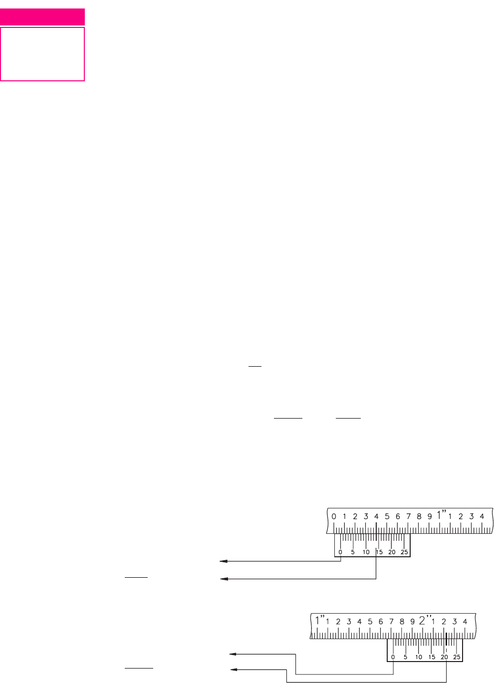 6 A U L A 6 A U L A Agora que o pessoal da empresa aprendeu a leitura de paquímetros no sistema métrico, é necessário aprender a ler no sistema inglês. Este é o assunto a ser estudado nesta aula. Leitura de polegada milesimal No paquímetro em que se adota o sistema inglês, cada polegada da escala fixa divide-se em 40 partes iguais. Cada divisão corresponde a: 1 40 ″ (que é igual a .025") Como o nônio tem 25 divisões, a resolução desse paquímetro é: Resolução = UEF NDN R = ′′ = ′′ . . 025 25 001 O procedimento para leitura é o mesmo que para a escala em milímetro. Contam-se as unidades .025" que estão à esquerda do zero (0) do nônio e, a seguir, somam-se os milésimos de polegada indicados pelo ponto em que um dos traços do nônio coincide com o traço da escala fixa. Leitura: .050" ® escala fixa + .014" ® nônio .064" ® total Leitura: 1.700" ® escala fixa + .021" ® nônio 1.721" ® total Paquímetro: sistema inglês Um problema .001" 6 A U L AVerificando o entendimento Com base no exemplo, tente fazer as três leituras a seguir. Escreva a medida lida em cada uma das linhas pontilhadas. a)a)a)a)a) Leitura = ....................................... b)b)b)b)b) Leitura = ....................................... c)c)c)c)c) Leitura = ....................................... Veja se acertou: a)a)a)a)a) .064" b)b)b)b)b) .471" c)c)c)c)c) 1.721" Leitura de polegada fracionária No sistema inglês, a escala fixa do paquímetro é graduada em polegada e frações de polegada. Esses valores fracionários da polegada são complementados com o uso do nônio. Para utilizar o nônio, precisamos saber calcular sua resolução: Resolução = UEF NDN = ″1 16 8 R = ÷ = × =1 16 8 1 16 1 8 1 128 Assim, cada divisão do nônio vale 1 128 ″ . Duas divisões corresponderão a 2 128 ″ ou 1 64 ″ e assim por diante. A partir daí, vale a explicação dada no item anterior: adicionar à leitura da escala fixa a do nônio. 6 A U L A Exemplo:Exemplo:Exemplo:Exemplo:Exemplo: Na figura a seguir, podemos ler 3 4 ″ na escala fixa e 3 128 ″ no nônio. A medida total equivale à soma dessas duas leituras. Escala fixa ® 1 3 16 ″ nônio ® 5 128 Portanto:1 3 16 5 128 1 24 128 5 128 + ⇒ + Total:1 29 128 ″ Escala fixa ® 1 16 ″ nônio ® 6 128 ″ Portanto: 1 16 6 128 8 128 6 128 14 128 + ⇒ + = Total: 7 64 ″ Observação:Observação:Observação:Observação:Observação: As frações sempre devem ser simplificadas. 6 A U L AVocê deve ter percebido que medir em polegada fracionária exige operações mentais. Para facilitar a leitura desse tipo de medida, recomendamos os seguin- tes procedimentos: 11111º passo passo passo passo passo - Verifique se o zero (0) do nônio coincide com um dos traços da escala fixa. Se coincidir, faça a leitura somente na escala fixa. Leitura = ″ 7 1 4 22222º passo passo passo passo passo - Quando o zero (0) do nônio não coincidir, verifique qual dos traços do nônio está nessa situação e faça a leitura do nônio. 33333º passo passo passo passo passo - Verifique na escala fixa quantas divisões existem antes do zero (0) do nônio. 44444º passo passo passo passo passo - Sabendo que cada divisão da escala fixa equivale a 1 16 2 32 4 64 8 128 = = = e com base na leitura do nônio, escolhemos uma fração da escala fixa de mesmo denominador. Por exemplo: Leitura do nônio 3 64 ″ ⇒ fração escolhida da escala fixa 4 64 ″ Leitura do nônio 7 128 ″ ⇒ fração escolhida da escala fixa 8 128 ″ 55555º passo passo passo passo passo - Multiplique o número de divisões da escala fixa (3º passo) pelo numerador da fração escolhida (4º passo). Some com a fração do nônio (2º passo) e faça a leitura finalfinalfinalfinalfinal. 6 A U L A Exemplos de leitura utilizando os passos a)a)a)a)a) 2º passo ⇒ ″3 64 3º passo Þ 1 divisão 4º passo ⇒ ″3 64 fração escolhida 4 64 ″ 5º passo ⇒ × + ″ = ″ 1 4 64 3 64 7 64 Leitura final: 7 64 ″ b)b)b)b)b) 2º passo ⇒ ″3 128 3º passo Þ 2" + 8 divisões 4º passo ⇒ ″3 28 fração escolhida 8 128 ″ 5º passo ⇒ ′′ + × + ″ = ″ 2 8 8 128 3 128 2 67 128 Leitura final: 2 67 128 ″ 6 A U L AColocação de medida no paquímetro em polegada fracionária Para abrir um paquímetro em uma medida dada em polegada fracionária, devemos: 11111º passo passo passo passo passo - Verificar se a fração tem denominador 128. Se não tiver, deve-se substituí-la pela sua equivalente, com denominador 128. Exemplo:Exemplo:Exemplo:Exemplo:Exemplo: 9 64 ″ não tem denominador 128. 9 64 ″ Þ 18 128 ″ é uma fração equivalente, com denominador 128. ObservaçãoObservaçãoObservaçãoObservaçãoObservação::::: o numerador é dividido por 8, pois 8 é o número de divisões do nônio. 22222º passo passo passo passo passo - Dividir o numerador por 8. Utilizando o exemplo acima: 18 8 2 2 resto quociente 33333º passo passo passo passo passo - O quociente indica a medida na escala fixa; o resto mostra o número do traço do nônio que coincide com um traço da escala fixa. Outro exemplo:Outro exemplo:Outro exemplo:Outro exemplo:Outro exemplo: abrir o paquímetro na medida 25 128 ″ A fração já está com denominador 128. 25 8 1 3 resto quociente O paquímetro deverá indicar o 3º traço da escala fixa e apresentar o 1º traço do nônio coincidindo com um traço da escala fixa. coincidência (resto1) 6 A U L A Leia cada uma das medidas em polegada milesimal e escreva a medida na linha abaixo de cada desenho. a)a)a)a)a) Leitura: ............................. b)b)b)b)b) Leitura: .................................. c)c)c)c)c) Leitura: ............................. d)d)d)d)d) Leitura: .................................. e)e)e)e)e) Leitura: ............................. f)f)f)f)f) Leitura: .................................. g)g)g)g)g) Leitura: ............................. h)h)h)h)h) Leitura: .................................. Exercícios 6 A U L A i)i)i)i)i)