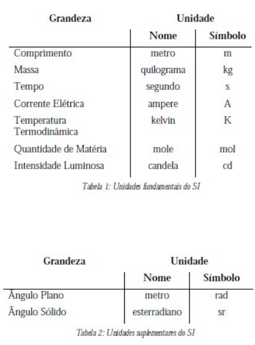 1. O SISTEMA INTERNACIONAL DE UNIDADES Para quantificarmos o valor de uma grandeza (comprimento de uma sala, por exemplo), necessita-se considerar uma unidade para essa grandeza. Definindo uma unidade (comprimento de um pé, por exemplo), podemos quantificar o valor (25 unidades, por exemplo) da grandeza que pretendemos medir. Obviamente que é fundamental que as unidades sejam aceitas e utilizadas em todo o mundo, daí a necessidade de normalizar as unidades. Já no século XVIII foram estudadas propostas para substituir todos os sistemas de unidades vigentes então por um único sistema. Só em 1960, na 11ª Edição da Conferência Geral dos Pesos e Medidas (CGPM) foi finalmente adaptado o sistema internacional de unidades – SI, que é sucintamente abordado neste capítulo. 1.1. Unidades de Base O Sistema Internacional de Unidades – SI – define sete unidades de base para normalizar sete grandezas: 1.2. Unidades Suplementares O SI define ainda duas unidades suplementares: 1.3. Unidades Derivadas A partir das unidades descritas atrás é possível definir as unidades derivadas, com nome especial: 1.4. Regras de Escrita e de Utilização dos Símbolos das Unidades Devem ser seguidas as seguintes regras quando da escrita ou utilização das unidades de medida: 1.4.1 Do Nome das Unidades Os nomes das unidades devem ser escritos com caracteres minúsculos, mesmo que derivem de nomes de cientistas. Exemplo: metro, segundo, ampere, watt, hertz Exceção: grau Celsius Os nomes das unidades admitem plural (segundo o Bureau Internacional de Pesos e Medidas - BIPM), só passando ao plural a partir de dois, inclusive. Exemplo: 0,47 metro; 1,99 joule; 2 miliamperes; 8x10-4 segundo; 5,2 metros por segundo. Os símbolos das unidades são escritos em caracteres minúsculos. No entanto, se o nome da unidade deriva de um nome próprio, a primeira letra do símbolo será maiúscula. Exemplo: m (metro); s (segundo); W (watt); N (newton); Pa (pascal). Os símbolos das unidades são invariáveis, mesmo no plural, e não são seguidos de um ponto, exceto no caso da pontuação normal. Exemplo: 12 m e não 12 m.; nem 12 ms; nem 12 mts. 1.4.2 Representação do Produto e da Divisão de Unidades O produto de duas unidades c e d pode ser representado por uma das notações seguintes: c.d ; c.d ; c d ; c´d mas não cd O quociente de duas unidades c e d pode ser representado por uma das notações seguintes: c/d ; c.d-1 (ou por qualquer das notações que indicam o produto de c por d-1). 1.4.3 Representação de Múltiplos e Submúltiplos das Unidades O SI define os seguintes prefixos para múltiplos e submúltiplos das unidades: O nome de um múltiplo (ou submúltiplo) de uma unidade obtém-se acrescentando o nome da unidade ao nome do prefixo apropriado. Exemplo: centímetro (10-2 m) ; quilowatt (103 W) ; microampere (10-6 A) O símbolo de um múltiplo (ou submúltiplo) de uma unidade forma-se acrescentando o símbolo da unidade ao símbolo do prefixo apropriado. Exemplo: cm; kW; mA. Os símbolos dos prefixos SI, quando impressos, escrevem-se em caracteres seguidos. Não se deve deixar espaço entre o símbolo do prefixo e o símbolo da unidade. Exemplo: deve escrever-se km e não k m para indicar 103 m. Não se deve, igualmente, deixar espaço entre o nome do prefixo e o nome da unidade, quando se escreve o nome do múltiplo (ou do submúltiplo). Exemplo: deve escrever-se microampere e não micro ampere. Um prefixo não pode ser empregue sem uma unidade. Exemplo: deve escrever-se mm e não m. Não se empregam prefixos compostos, isto é, prefixos formados pela associação de dois ou mais prefixos. Exemplos: deve escrever-se rF (picofarad) e não mmF ; deve escrever-se GW (gigawatt) e não kMW. Nota 1: Entre as unidades de base do SI, a unidade de massa é a única cujo nome (quilograma) contém, por razões históricas, um prefixo. Tal fato é uma exceção; os nomes e símbolos dos múltiplos (e submúltiplos) decimais da unidade SI de massa são formados pela junção dos prefixos à palavra “grama” e dos símbolos convenientes ao “g”. Nota 2: A palavra “grama” é, neste contexto, um substantivo masculino; nestas condições, é incorreto dizer, por exemplo, “duzentas gramas” (como tantas vezes se ouve!), devendo antes dizer-se “duzentos gramas”. O conjunto formado pela junção do símbolo de um prefixo ao símbolo de uma unidade constitui um novo símbolo inseparável, que pode ser elevado a uma potência (positiva ou negativa) sem necessidade de parênteses e que pode, também, ser combinado com outros símbolos de unidades, para formar símbolos de unidades compostas. Exemplo: cm2 significa sempre (10-2 m)2 = 10-4 m2 e nunca 10-2 m2 1.4.4 Outras Unidades que Podem ser Utilizadas com o SI As unidades seguintes não pertencem ao SI, embora desempenhem um importante papel na vida diária, estando largamente divulgadas. Por tais motivos, é permitida a sua utilização conjuntamente com as unidades do SI, não devendo no entanto combinar-se com estas senão em casos extremos (por exemplo km/h). 1.4.5 Relação de Algumas Unidades SI com Unidades de Outros Sistemas 2. PADRÕES DE MEDIÇÃO A palavra inglesa standard pode ser traduzida para língua portuguesa como norma ou padrão. No âmbito da metrologia, é comum utilizar-se o termo measurement standard para denominar padrão de medição, que é explicado a seguir. No Vocabulário Internacional de Metrologia, padrão de medição é definido como “medida materializada, instrumento de medição, material de referência ou sistema de medição destinado a definir, realizar, conservar ou reproduzir uma unidade, ou um ou mais valores de uma grandeza, para servirem de referência”. Como exemplos de padrões de medição podemos considerar: · Padrão de massa de 1 kg · Resistência padrão de 100 W · Amperímetro padrão Os padrões estão organizados numa hierarquia de qualidade: Padrões Internacionais, Padrões Primários, Pa