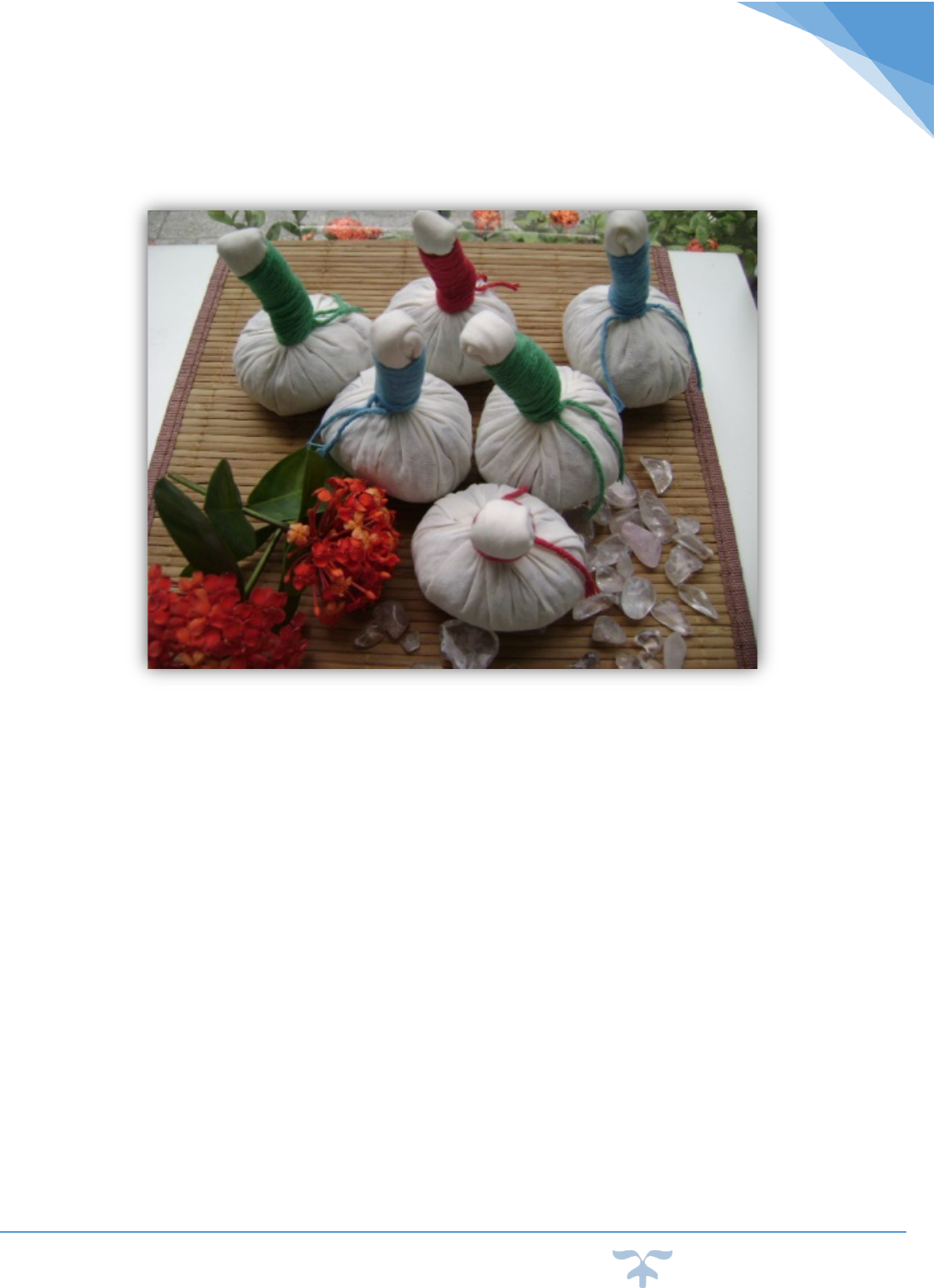 ! Massagem!Com!Pindas!–!Profa.!Ana!Paula!Ramos ! ! 1! PINDAS CHINESAS O"que"são"Pindas?" As!pindas!são!saquinhos!de!algodão,!linho!ou!seda!que!contém!em!seu!interior!sal!marinho!ou!sal!grosso,! ervas! medicinais! e! especiarias,! com! propriedades! relaxantes! ou! tonificantes,! as! quais! são! previamente! aquecidas.! O! calor! tem! dupla! função! nesta! técnica:! serve! tanto! para! liberar! os! ativos! das! ervas,! como! também!para!potencializar!o!efeito!terapêutico!da!massagem,!já!que!o!calor!aplicado!em!pontos!energéticos! libera!estagnações!e!favorece!a!circulação!sanguínea!e!energética.! Origem" A!técnica!tem!origem!indiana!e!faz!parte!da!Ayurveda,!a!Medicina!Tradicional!da!Índia,!conhecida!como!a! mãe!da!medicina,!pois!seus!princípios!serviram!de!base!para!a!medicina!tradicional!chinesa,!árabe,!romana! e!grega.! ! ! ! Massagem!Com!Pindas!–!Profa.!Ana!Paula!Ramos ! ! 2! ! ! Houve!um!intercâmbio!de!informações!com!o!Japão,!que!tinha!a!mesma!necessidade!dos!indianos,!criar!uma! medicina!barata!para!atender!à!sua!população,!numerosa!e!carente.!Os!dois!desenvolveram!técnicas!muito! eficientes!e!de!baixo!custo.! Neste!sistema!de!tratamento!e!cura!os!alimentos!são!utilizados!para!tratar!a!saúde,!e!somente!aquilo!que! podemos!comer!é!aplicado!sobre!a!pele.! Na!Ayurveda!a!técnica!é!chamada!de!Pinda!Sweda,!e!utiliza!basicamente!arroz!para!preencher!os!saquinhos,! aqui!chamados!de!vishesas,!e!os!mesmos!são!banhados!no!leite,!normalmente!com!ervas,!também!em!sucos! e!chás.!Como!em!outras!culturas!não!há!o!hábito!de!uso!desses!ingredientes,!passouWse!a!utilizar!o!sal,!e! como!o!sal!torrado!era!muito!utilizado!nos!tratamentos!de!cura!chineses,!a!pinda,!assim!confeccionada,!foi! denominada!Pinda!Chinesa.! ! Ação"das"Pindas"Chinesas" A!técnica!age!de!forma!extremamente!benéfica!sobre!o!organismo,!devido!ao!material!utilizado!no!interior! das!pindas:! •! O! sal,! marinho! ou! grosso,! tem! ação! relaxante,! absorve! as! energias! negativas/estagnadas,! restabelecendo!o!equilíbrio!energético;! •! As!ervas!e!especiarias!podem!ter!efeito!relaxante!ou!tonificante,!aliviar!dores,!descongestionar!vias! respiratórias,!desintoxicar,!entre!outros.! •! O!calor!descontrai!a!musculatura!e!libera!estagnações!de!energia,!além!de!liberar!o!princípio!ativo! das!ervas.! •! ! Ervas"utilizadas" Podemos! utilizar! diversas! ervas,! de! acordo! com! o! objetivo! desejado.! Normalmente! encontramos! as! seguintes!ervas!ou!especiarias:! ! LAVANDA" De! grande! ação! terapêutica,! é! indicada! para! dores! de! cabeça,! musculares,! articulares,! ciatalgias.! É! antisséptico,!bactericida,!cicatrizante.!Sedativa!e!calmante,!ajuda!a!combater!a!insônia.! ! Massagem!Com!Pindas!–!Profa.!Ana!Paula!Ramos ! ! 3! ! CAMOMILA" Relaxante,!combate!a!fadiga!e!o!estresse.! ! JASMIM" Tem!ação!afrodisíaca!e!age!no!emocional!reduzindo!a!ansiedade!e!depressão.! ! FLOR"DE"LARANJEIRA" Ação!calmante,!auxilia!no!combate!à!ansiedade,!nervosismo,!insônia!e!depressão.! ! CAPIM"LIMÃO" Analgésico,!calmante,!bactericida.! ! ALECRIM" Estimulante,! revigorante,! tônico! do! sistema! nervoso! central,! estimula! a!memória! e! o! raciocínio,! tônico! cardíaco,!promove!relaxamento!muscular.! ! EUCALIPTO" Tem!ação!expectorante,!bactericida!e!antiviral,!sendo!muito!benéfico!para!as!vias!respiratórias.!Alivia!dores! musculares!e!é!indicado!para!estresse,!ansiedade!e!falta!de!energia.! ! ARTEMÍSIA" Tem!ação!antiWinflamatória,!antiespasmódica,!diurética!e!digestiva.! ! CANELA" Auxilia!no!equilíbrio!dos!sistemas!respiratório,!circulatório!e!digestório.!Indicada!para!cansaço,!fraqueza!e! depressão.! ! ! Massagem!Com!Pindas!–!Profa.!Ana!Paula!Ramos ! ! 4! ! Sugestão"de"seleção"de"ervas"para"as"pindas:" •! FEG!e! gordura! localizada:! cardamomo,! cedro,! cipreste,! erva!doce,! gengibre,! grape! fruit,! junípero! (desintoxicante),!laranja,!lemongras,!limão,!noz!moscada,!pimenta!negra,!tangerina;! •! Flacidez:!palmarosa,!patchouli,!salvia,!vetiver;! •! Oleosidade!e!acne:!alecrim,!bergamota,!camomila!romana,!capim!santo,!cipreste,!hortelã!do!Brasil,! hortelã!pimenta,!lavanda,!limão,!pau!rosa,!sândalo,!verbena;! •! Pré!operatório:!junípero!(desintoxicante),!laranja,!mandarina;! •! Pós!operatório:!capim!santo!(antiséptico!e!bactericida),!eucalipto!(antiséptico),!gerânio!(inflamações! cutâneas),! jasmim,! lavanda! (regenerador! celular),! mandarina! (sistema! linfático),! manjerona! (cicatrizante!e!antiséptico),!mirra!(fungicida!e!cicatrizante),!olíbano,!pau!rosa!(regenerador).! " Benefícios" •! Estimula!a!circulação!sanguínea!e!linfática;! •! Eliminação!de!toxinas;! •! Hidratação!da!pele;! •! Esfoliação!suave;! •! Relaxamento!mental!e!muscular;! •! Alívio!de!sintomas!da!depressão!e!ansiedade;! •! Alívio!de!dores!reumáticas,!artrite!e!artrose;! •! Alivia!sintomas!da!sinusite,!rinite!e!obstrução!das!vias!respiratórias;! •! Induz!ao!relaxamento!profundo.! Contraindicações" !A!técnica!oferece!as!mesmas!contra!indicações!de!uma!massagem!relaxante,!ou!seja:! •! Cardiopatias;! •! Varizes,!flebite,!trombose;! •! Hipo!ou!hipertensão!arterial!descompensada;! •! Infecções!e!inflamações;! •! Estado!febril;! •! Neoplasias;! •! Afecções!cutâneas.! !! ! Massagem!Com!Pindas!–!Profa.!Ana!Paula!Ramos ! ! 5! Tipos"de"Pindas" Pindas!de!sais!e!ervas,!são!voltadas!basicamente!para!o!relaxamento!e!alívio!de!dores.! Na! estética! costumaWse! usar:! Cavalinha,! Centella!Asiática! e!Malva.! Favorecem!a! hiperemia! e! podem! ser! associados!cosméticos!específicos!para!redução!de!medidas!e!melhora!do!aspecto!da!celulite.! Pindas!de!uva,!aquecidas!no!vinho,!para!redução!de!medidas,!normalmente!utilizadas!em!spas.!Finalização! com!bandagens!umedecidas!no!vinho!e!sais.! Pindas!de!café,!associadas!a!óleo!essencial!de!canela!e!pimenta,!tem!ação!redutora.!De!ação!estimulante!é