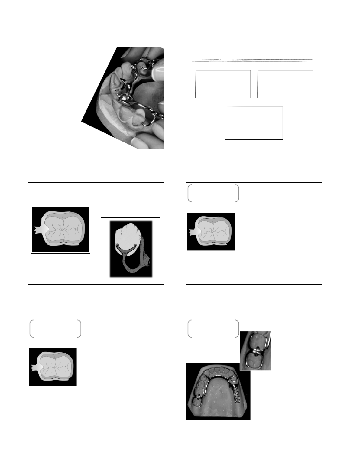 3/13/18 1 Elementos constituintes ✓ Grampos ✓ Apoios ✓ Conector menor ✓ Sela ✓ Conector maior ✓ Dentes artificiais 1 Classificação dos grampos 2 Segundo a retenção ✓ Direto ✓ Indireto Segundo a localização ✓ Intracoronários ✓ Extracoronários Segundo a construção ✓ Fundidos ✓ Adaptados ✓ Combinados Tipos de grampos GRAMPOS CIRCUNFERENCIAIS ou COM AÇÃO DE ABRAÇAMENTO 3 GRAMPOS COM AÇÃO DE PONTA 4 GRAMPOS CIRCUNFERENCIAIS ✓ ORIGEM: ocluso-cervical ✓ FORMA: meia-cana ✓ EXTENSÃO: abrange quase toda a circunferência da coroa dental ✓ RETENÇÃO: preferencialmente do lado oposto do apoio ✓ PONTA ATIVA: terço mesial ou distal da face vestibular ou lingual 5 GRAMPOS CIRCUNFERENCIAIS Contato íntimo com a coroa do dente de suporte Sua maior parte se localiza acima do equador protético 6 Elementos Constituintes ✓ Apoio ✓ Braço de retenção ✓ Braço de oposição ✓ Conector menor GRAMPOS CIRCUNFERENCIAIS 3/13/18 2 7 APOIOS Elementos Constituintes ✓ Apoio ✓ Braço de retenção ✓ Braço de oposição ✓ Conector menor GRAMPOS CIRCUNFERENCIAIS 8 BRAÇO DE RETENÇÃO Elementos Constituintes ✓ Apoio ✓ Braço de retenção ✓ Braço de oposição ✓ Conector menor GRAMPOS CIRCUNFERENCIAIS 9 BRAÇO DE OPOSIÇÃO Elementos Constituintes ✓ Apoio ✓ Braço de retenção ✓ Braço de oposição ✓ Conector menor GRAMPOS CIRCUNFERENCIAIS 10 CONECTOR MENOR Elementos Constituintes ✓ Apoio ✓ Braço de retenção ✓ Braço de oposição ✓ Conector menor GRAMPOS CIRCUNFERENCIAIS 11 APOIO 12 APOIO ✓ Componente que se apóia na superfície dental (oclusal, lingual ou palatina) ✓ Impede o deslocamento da prótese no sentido ocluso-gengival ✓ Transmite a carga mastigatória aos dentes 3/13/18 3 13 BRAÇO DE RETENÇÃO 14 BRAÇO DE RETENÇÃO ✓ Responsável pela retenção no sentido gengivo-oclusal ✓ Secundariamente, responde pela estabilidade horizontal ✓ Único componente flexível ✓ Geralmente localizado por vestibular ✓ Parte do apoio e caminha em direção oposta✓ Cruza o equador protético, o corpo de afila e apenas a ponta ativa, flexível, se aloja abaixo do equador protético 15 BRAÇO DE RETENÇÃO ✓ Fatores que influenciam a flexibilidade do grampo de retenção ✓ Distância entre o equador protético e a ponta ativa ✓ Comprimento do braço ✓ Diâmetro e forma da secção transversal ✓ Tipo de liga 16 BRAÇO DE OPOSIÇÃO ✓ Neutralizam as forças impostas pelo braço de retenção ao dente, quando da passagem pelo equador protético ✓ Braço rígido, situado sobre ou acima do equador protético ✓ Mais espesso que o braço de retenção e com desenho uniforme em toda sua extensão 17 BRAÇO DE OPOSIÇÃO 18 CONECTOR MENOR 3/13/18 4 ✓ São elementos rígidos que unem os grampos e apoios ao conector maior 19 CONECTOR MENOR ✓ Simples ou de Ackers ✓ Duplo ou gêmeo ✓ Reverso ✓ Anel ✓ Ottolengui ✓ Back-action ✓ MDL modificado ✓ Contínuo de Kennedy* ✓ Har-Pin 20 GRAMPOS CIRCUNFERENCIAIS 21 GRAMPO CIRCUNFERENCIAL SIMPLES Braço de retenção Braço de oposição 22 GRAMPO CIRCUNFERENCIAL SIMPLES Indicação ✓ PPR dento-suportada ✓ Para todos os dentes posteriores ✓ Área retentiva oposta ao espaço protética Braço de retenção Braço de oposição Indicação 23 GRAMPO CIRCUNFERENCIAL SIMPLES Braço de retenção Braço de oposição 24 GRAMPO CIRCUNFERENCIAL DUPLO Braço de retenção Braço de oposição 3/13/18 5 25 GRAMPO CIRCUNFERENCIAL DUPLO ✓ Dois grampos circunferenciais unidos pelo apoio 26 GRAMPO CIRCUNFERENCIAL DUPLO ✓ Para todos os dentes posteriores ✓ Utilizado para retenção indireta Indicação 27 GRAMPO CIRCUNFERENCIAL DUPLO ✓ Exige preparo de canaleta para complementar possibilitar espessura suficiente do apoio sem comprometer a rigidez ou criar interferências 28 GRAMPO CIRCUNFERENCIAL DUPLO 29 GRAMPO CIRCUNFERENCIAL REVERSO ✓ Apoio localizado na crista contrária ao espaço protético 30 GRAMPO CIRCUNFERENCIAL REVERSO ✓ Para dentes posteriores inclinados para o espaço protético Indicação 3/13/18 6 31 GRAMPO CIRCUNFERENCIAL EM ANEL ✓ Para molares, posteriores ao espaço protético ✓ Superior: inclinação mésio-vestibular ✓ Inferior: inclinação mésio-lingual ✓ Grampo de estabilização Indicação 32 GRAMPO CIRCUNFERENCIAL OTTOLENGUI Braço de retenção Braço de oposição 33 GRAMPO CIRCUNFERENCIAL OTTOLENGUI ✓ Apoios oclusais duplos interligados pelo braço de oposição 34 GRAMPO CIRCUNFERENCIAL OTTOLENGUI ✓ Para molares em classe III de Kennedy ✓ Para pré-molares, isolados com espaços protéticos intercalados Indicação 35 GRAMPO CIRCUNFERENCIAL BACK-ACTION ✓ Para caninos e pré-molares (Classe I e II) Indicação Apoio unido ao braço de oposição (lingual) e de retenção (vestbular), e um único conector menor. 36 GRAMPO MDL MODIFICADO ✓Grampo estético ✓Atua com retenção e oposição ✓Abrange o cíngulo por mesial e distal ✓Braço de retenção no terço cervical da face vestibular ✓Pequena ponta retentiva aparece na vestibular 3/13/18 7 37 GRAMPO MDL MODIFICADO ✓ Dentes anteriores Indicação 38 ✓ Faces linguais ou palatinas de dentes anteriores ✓ Espaço entre os dentes e gengiva marginal de 8-10 mm GRAMPO CONTÍNUO DE KENNEDY 39 GRAMPO CONTÍNUO DE KENNEDY ✓ Classe I de Kennedy ✓ Estabilização de dentes anteriores com comprometimento periodontal Indicação 40 GRAMPO HAR-PIN ✓ Para molares Indicação Braço de retenção parte do apoio mesial, caminha em direção distal e a ponta retentiva localiza-se na região mesial 41 GRAMPOS DE AÇÃO DE PONTA ✓ ORIGEM: cérvico-oclusal ✓ Apenas a ponta entra em contato com a coroa dental ✓ Braço de retenção normalmente semi circunferencial 42 GRAMPOS DE AÇÃO DE PONTA ✓ INDICAÇÃO: todos os dentes, especialmente os anteriores ✓ CONTRA-INDICAÇÃO: dente suporte muito inclinado, bossa gengival volumosa, presença d