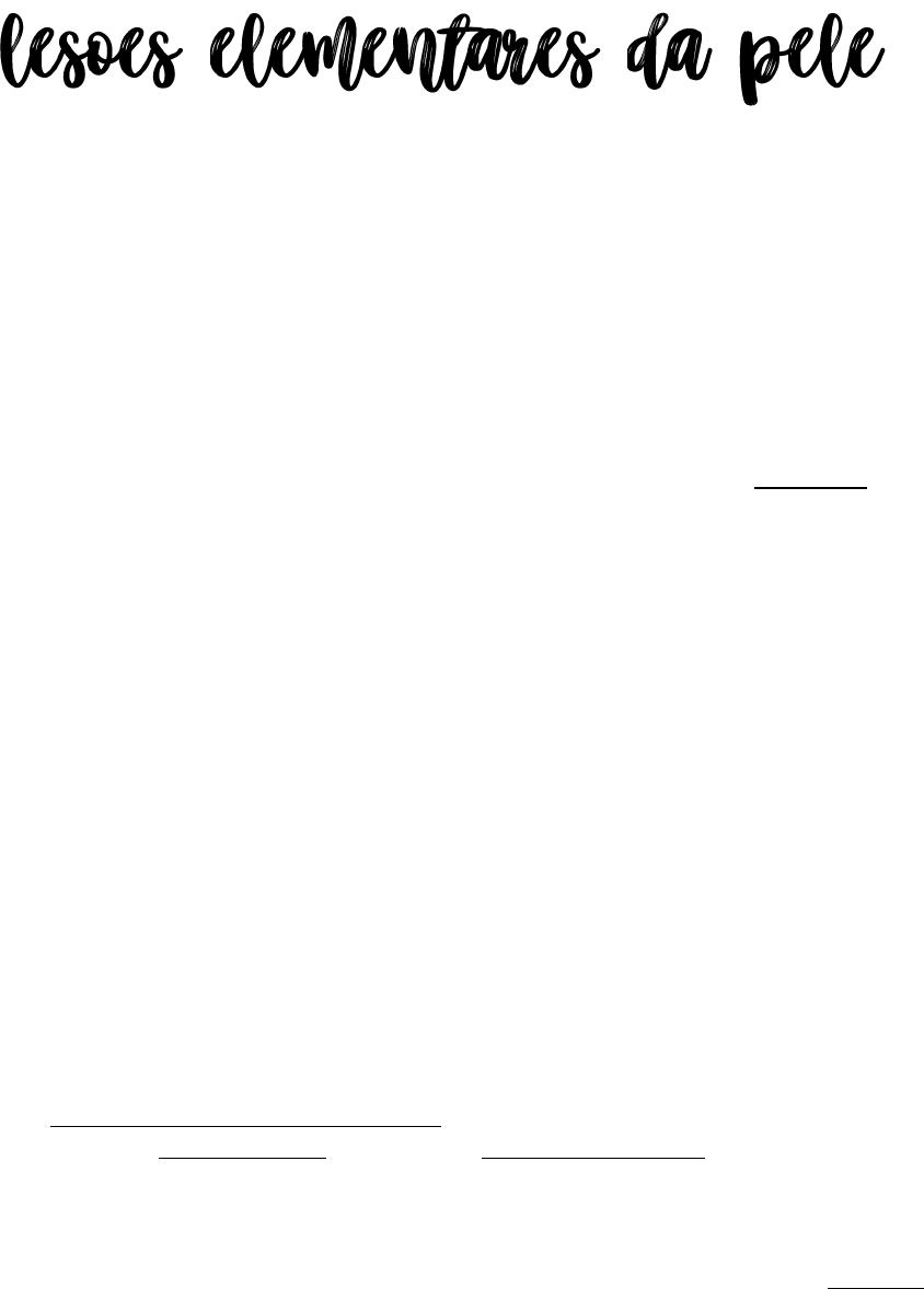 Branda de Oliveira de Lima, Turma LVI - MedUnicamp 1 BLOCO PELE - DERMATOPATOLOGIA Prof Dr. Elemir Macedo de Souza Será possível ler a pele? O normal se apóia na semelhança da pele da maioria dos indivíduos. Alguns apresentam alterações ou variações do normal sem interferência na sua vida; outros terão alterações do normal, constituindo elementos que podem ser interpretados do ponto de vista macro e microscópico. Estes elementos que fogem do normal receberam denominações dermatológicas que permitem a leitura e interpretação daquela alteração cutânea. A sua apresentação num determinado momento e numa determinada região caracterizará uma dermatose. Um dermatologista consegue ler estes elementos. Assim as mesmas lesões podem expressar dermatoses diferentes. As leituras macroscópicas (exame dermatológico) das lesões elementares devem ter consistência com as alterações histopatológicas que serão lidas com o microscópio, configurando o substrato clínico-patológico. Uma área vermelha na pele (eritema) terá uma correspondência microscópica representada por vaso-dilatação; uma púrpura será representada por um extravasamento de hemácias. As lesões elementares que constituem o alfabeto do dermatologista podem se classificadas ou sistematizadas em: lesões elementares primárias e secundárias (decorrentes das primárias). 1. LESÕES ELEMENTARES PRIMÁRIAS São as manchas, pápulas, nódulos, tumores, vesículas, bolhas e pústulas (7). • MANCHAS As manchas são modificações na coloração normal da pele, sem alterações estruturais apreciáveis à palpação, resultantes de perturbações nos elementos responsáveis pela cor da pele: pigmento melânico e vascularização, assim como pigmentos estranhos à pele de origem endógena (bilirrubina, ferro) ou exógena (prata, ouro, caroteno). - Manchas Vasculares: As manchas vasculares podem ser: eritematosas, purpúricas e anêmicas. As manchas eritematosas ou simplesmente ERITEMAS resultam da dilatação temporária ou permanente dos vasos capilares da derme, sendo vermelhas quando o segmento arterial está acometido e arroxeadas ou azuladas (cianose) quando o segmento acometido é o venoso. A combinação de ambas recebe o nome de eritrocianose. A cianose nas extremidades recebe o nome acrocianose. Branda de Oliveira de Lima, Turma LVI - MedUnicamp 2 Portanto, nas manchas eritematosas os vasos estão íntegros, mas com dilatação ou congestão. Com a compressão digital - digitopressão - ou com uma lâmina de vidro – vitropressão -, estas manchas sofrem um embranquecimento por esvaziamento (lividez) temporário do vaso. Ex.: na rosácea há eritema centro-facial; queimaduras solares. As manchas eritematosas podem ter aspecto bem delimitado (geográfico), como na tinha crural; ou serem difusas. Nas manchas purpúricas ou PÚRPURAS, os glóbulos vermelhos (hemácias) saem dos vasos e jazem no tecido circunjacente, não desaparecendo a vitropressão; quando puntiformes são chamadas petéquias e se em grandes áreas são hematomas. Aspecto vermelho vinhoso, bem escuro. Ex.: distúrbio de coagulação no choque. As hemácias fora do vaso serão degradadas e a hemoglobina do seu interior catabolizada, passando por biliverdina e bilirrubina, restando o pigmento ferro. O ferro é um pigmento endógeno não normal da pele e o seu acúmulo acarreta a hemocromatose. As manchas ANÊMICAS são decorrentes da falta ou diminuição real ou virtual dos elementos vasculares na pele: os vasos sangüíneos podem sofrer constrição (palidez) ou ter o seu conteúdo (glóbulo vermelho) diminuído em número ou com baixo teor de hemoglobina (anemia). - Manchas Melânicas: As manchas na pele podem ser devidas a alterações no teor de melanina: quando há aumento poderemos chamá-las manchas hipercrômicas, hiperpigmentadas ou hipermelânicas. Ex.: lentigos. Ocorrendo dimunição da melanina serão manchas hipocrômicas, hipomelânicas ou hipopigmentadas. Ex.: ptiríase alba é um exemplo de hipopigmentadas, ocorre nas crianças atópicas. Mas quando ver uma mancha hipopigmentada sempre pensar primeiro em Branda de Oliveira de Lima, Turma LVI - MedUnicamp 3 hanseníase indeterminada (acompanhada de perda da sensibilidade local). Quando há falta total de melanina, são chamadas manchas acrômicas. Ex.: vitiligo. - Manchas por pigmentos estranhos: A presença de pigmento estranho na pele acarreta as tatuagens, que podem ser devidas a um mecanismo endógeno (ocronose na alcaptonúria, dermatite ocre na insuficiência venosa, intoxicação crônica pela prata, ouro, clofazimina, amiodarona etc.) ou mecanismo exógeno ou tatuagem propriamente dita por mercúrio, cádmio, tinta nanquim, carvão, pólvora. • PÁPULAS, NÓDULOS E TUMORES São formações de conteúdo sólido e delimitáveis. Todos podem se encontrar isolados ou agrupados. - Pápulas: As pápulas são elevações sólidas até 1cm circunscritas localizadas e superficiais na pele, podendo ser foliculares e não-foliculares. Estas podem ser epidérmicas, dérmicas e dermoepidérmicas. As Pápulas Epidérmicas decorrem da hiperplasia da epiderme (verruga plana) e a sua superfície pode ser recoberta por camada córnea espessa, sendo denominada de verrucosa (exemplo verruga vulgar); ou a superfície pode ser vegetante, com pouca camada córnea lembrando a superfície da couve-flor, como no condiloma acuminado. As Pápulas Dérmicas podem surgir por edema na derme superficial (urticada ou pápula edematosa) ou por infiltração celular desta região, como na sífilis. Branda de Oliveira de Lima, Turma LVI - MedUnicamp 4 As Pápulas Dermoepidérmicas ou mistas são constituídas por hiperplasia epitelial e infiltrado na derme superficial, como no líquen plano. O deposito de material estranho na derme superficial pode conferir à pele aspecto elevado e circunscrito que pode ser interpretado como uma pápula tesaurismótica (exemplo amilóide, mucina). - Nódulo