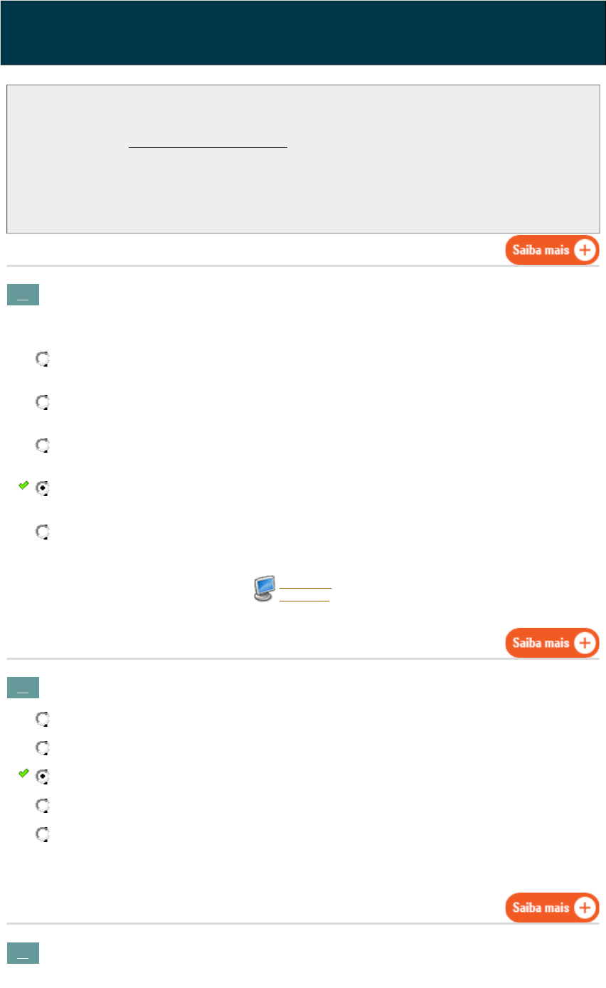 Você fará agora seu TESTE DE CONHECIMENTO! Lembre-se que este exercício é opcional, mas não valerá ponto para sua avaliação. O mesmo será composto de questões de múltipla escolha.