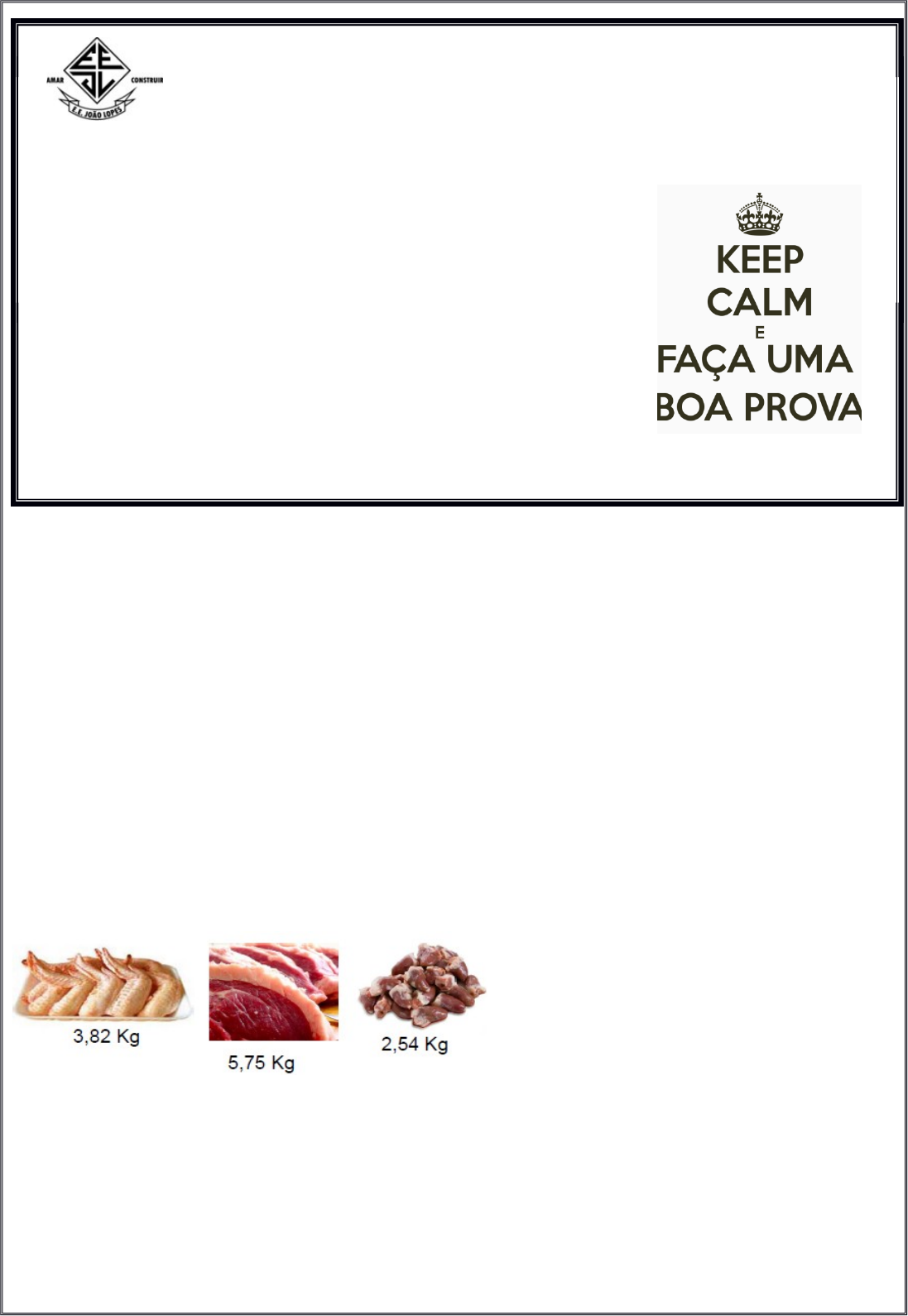 ESCOLA ESTADUAL JOÃO LOPES AVALIAÇÃO DE MATEMÁTICA - 4º BIMESTRE PROFESSORA: TAMARA B. SILVA ALUNO:_______________________________________ TURMA: 6º1 Data: _____/____/______ VALOR: 12,0 PONTOS NOTA: _______ Prova individual e sem consulta. Não rasure sua prova, tenha cuidado!!! Leia com atenção sua prova, uma, duas e até três vezes se necessário, você terá tempo para isso. Você só poderá entregar a prova após 30 minutos do início da mesma. Não atrapalhe o colega ao lado. Fique calmo, lembre dos seus estudos e das aulas de matemática. Boa Sorte e Boa Prova!!! 1) Qual o resultado de cada operação? a) 0,917 + 2,79 I) 2,318 b) 2,7 – 1,82 II) 0,88 c) 5,14 – 2,822 III) 3,707 Cálculos: 2) (Projeto conseguir). Carolina vai comemorar seu aniversário com um churrasco. Veja a quantidade de carnes que ela comprou para o churrasco: Cálculo: Quantos quilos de carnes ela comprou? (A) 8,92 Kg (B) 15,36 Kg (C) 5,75 Kg (D) 12,11 Kg 3) (Projeto conseguir). Observe a imagem que apresenta as medidas de altura de duas amigas. A altura de Luana é de: Cálculo: Luana (A) 1,50 m (B) 0,18 m (C) 1,24 m (D) 1,40 m 4) (SEPR). Em uma questão da prova de Matemática, a professora pediu para que os alunos representassem o número 0,05 em forma de fração. Mariana representou assim , Fabiano representou , Fernanda e Marcela . Qual deles acertou a questão? (A) Mariana (B) Fabiano (C) Fernanda (D) Marcela 5) (Saresp 2007). O número 0,27 corresponde à fração: (A) (B) (C) (D) 6) Observe a tabela abaixo: Cálculo: Fátima foi a uma loja e comprou uma corneta e um boné. Ela gastou: (A) R$ 12,00. (B) R$ 13,00. (C) R$ 13,50. (D) R$ 14,00. 7) (Prova Brasil). Um posto de combustível colocou um cartaz anunciando o preço do etanol por 2,206 reais o litro. Isso significa que o posto vende o etanol a 2 reais e: (A) 0,206 centésimo de real. (C) 206 centésimos de real. (B) 0,206 décimos de real. (D) 206 milésimo de real 8) O quadro abaixo mostra a relação das compras que Aline fez na padaria. Cálculo: Antes de passar pelo caixa da padaria, ela fez o cálculo de quanto gastará. Quanto Aline deverá pagar? (A) R$ 10,20 (B) R$ 9,00 (C) R$ 6,10 (D) R$ 7,90 9) (Projeto conseguir). Pedro quer comprar um jogo de mini-game que custa R$ 18,99 e um jogo de xadrez que custa R$ 23,49. Ele já conseguiu juntar R$ 30,00. Cálculo: Quanto falta? (A) R$14,50 (B) R$41,00 (C) R$42,48 (D) R$12,48 10) (PROVA BRASIL/INEP). Em Belo Horizonte, a temperatura máxima de sábado foi de 28,3 graus e a de domingo foi de 26,7 graus. De quantos graus é a diferença entre as duas temperaturas? Cálculo: (A) 1,4 (B) 1,6 (C) 2,4 (D) 2,6 11) (Saresp 2007). A altura de Karen é 1,45 metros e a de seu irmão é 1,27 metros. Quantos centímetros Karen tem a mais que seu irmão? Cálculo: (A) 28 cm (B) 18 cm (C) 15 cm (D) 12 cm 12) Efetue as adições e subtrações: a) 3,5 + 0,12 = b) 9,1 + 0,07 = c) 4,7 + 12,01 = d) 2,746 + 0,92 = e) 3 - 0,889 = f) 4,329 - 2 = g) 15,8 - 9,81 = h) 10,1 - 2,734 = “Que o seu Natal seja cheio de paz e harmonia em companhia dos amigos e da família. Que a passagem deste ano renove e revigore em todos nós a esperança de saúde, prosperidade, bem estar e felicidade.” Feliz Natal !!! Próspero Ano Novo !!! 10 5 5 10 100 5 1000 5 7 2 100 20 2 7 100 27