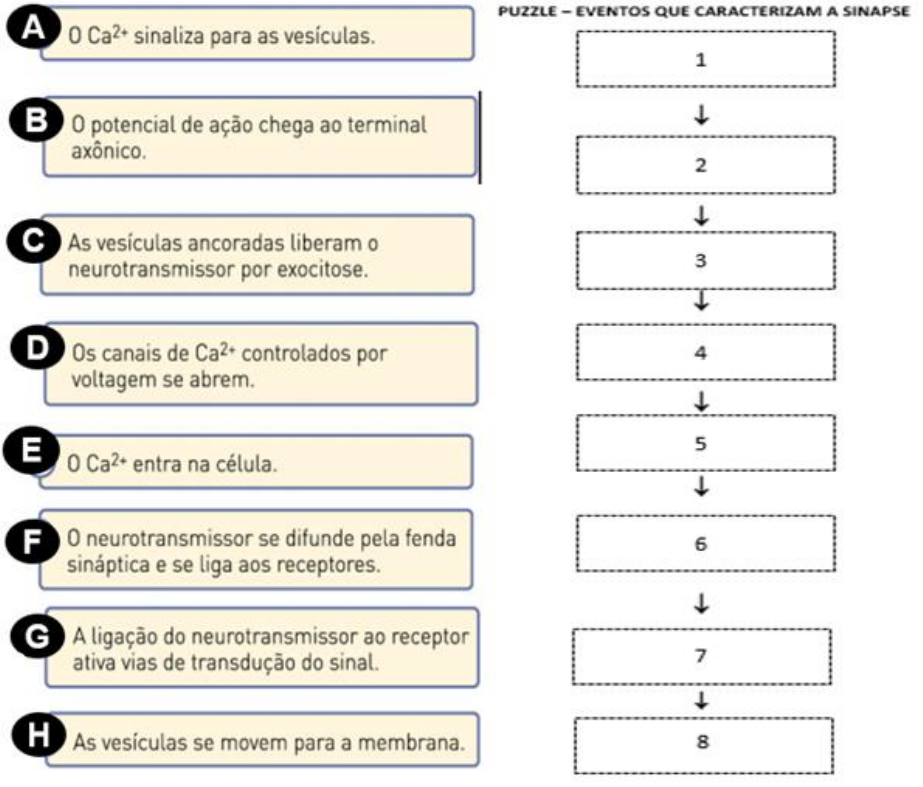 1. No puzzle abaixo, ordene corretamente os eventos relacionados a sinapse. 1. Realize as palavras cruzadas abaixo: