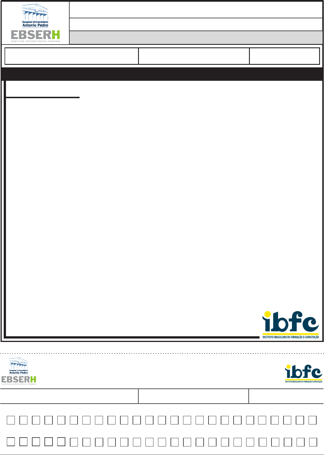 IBFC_46 DESTAQUE AQUI GABARITO DO CANDIDATO - RASCUNHO Nome: Assinatura do Candidato: Inscrição: EMPRESA BRASILEIRA DE SERVIÇOS HOSPITALARES HOSPITAL UNIVERSITÁRIO ANTÔNIO PEDRO DA UNIVERSIDADE FEDERAL FLUMINENSE - HUAP - UFF EDITAL 03/2016 - EBSERH/ HUAP-UFF - SUPERIOR CIRURGIÃO DENTISTA CIRURGIA E TRAUMATOLOGIA BUCO MAXILO FACIAIS NOME DO CANDIDATO ASSINATURA DO CANDIDATO RG DO CANDIDATO INSTRUÇÕES GERAIS I. Nesta prova, você encontrará 06 (seis) páginas numeradas sequencialmente, contendo 50 (cinquenta) questões correspondentes às seguintes disciplinas: Língua Portuguesa (10 questões), Raciocínio Lógico e Matemático (05 questões), Legislação aplicada à EBSERH (05 questões), Legislação aplicada ao SUS (05 questões) e Conhecimentos Específicos (25 questões). II. Verifique se seu nome e número de inscrição estão corretos no cartão de respostas. Se houver erro, notifique o fiscal. III. Verifique se o caderno de provas se refere ao cargo para o qual você se inscreveu. Caso o cargo esteja divergente, solicite ao fiscal de sala para que tome as providências cabíveis, pois não serão aceitas reclamações posteriores nesse sentido. IV. Assine e preencha o cartão de respostas nos locais indicados, com caneta azul ou preta. V. Verifique se a impressão, a paginação e a numeração das questões estão corretas. Caso observe qualquer erro, notifique o fiscal. VI. Você dispõe de 04 (quatro) horas para fazer esta prova. Reserve os 20 (vinte) minutos finais para marcar o cartão de respostas. VII. O candidato só poderá retirar-se do setor de prova 02 (duas) horas após seu início. VIII. O candidato não poderá levar o caderno de questões. O caderno de questões será publicado no site do ibfc, no prazo recursal contra gabarito. IX. Marque o cartão de respostas cobrindo fortemente o espaço correspondente à letra a ser assinalada, conforme o exemplo no próprio cartão de respostas. X. A leitora óptica não registrará as respostas em que houver falta de nitidez e/ou marcação de mais de uma alternativa. XI. O cartão de respostas não pode ser dobrado, amassado, rasurado ou manchado. Exceto sua assinatura, nada deve ser escrito ou registrado fora dos locais destinados às respostas. XII. Ao terminar a prova, entregue ao fiscal o cartão de respostas e este caderno. As observações ou marcações registradas no caderno não serão levadas em consideração. XIII. É terminantemente proibido o uso de telefone celular, pager ou similares. Boa Prova! LEIA COM ATENÇÃO AS INSTRUÇÕES ABAIXO 1 31 26 2 32 27 3 33 28 4 34 29 5 35 30 6 36 7 37 8 38 9 39 10 40 11 41 12 42 13 43 14 44 15 45 16 46 2117 47 2218 48 2319 49 2420 50 25 www.pciconcursos.com.br RASCUNHO www.pciconcursos.com.br 1IBFC_46 LÍNGUA PORTUGUESA Texto I Ensinamento Minha mãe achava estudo a coisa mais fina do mundo. Não é. A coisa mais fina do mundo é o sentimento. Aquele dia de noite, o pai fazendo serão, ela falou comigo: “Coitado, até essa hora no serviço pesado”. Arrumou pão e café, deixou tacho no fogo com água quente. Não me falou em amor. Essa palavra de luxo. (Adélia Prado) 1) Em um texto, as palavras cumprem papel expressivo na construção de sentidos. Assim, indique o par de palavras que, no poema, funcionam como sinônimos. a) “fina” (v.2)/ “luxo” (v.10) b) “estudo” (v.1)/ “serviço” (v.7) c) “pão”(v.8)/ “café” (v.8) d) “tacho” (v.8)/ “água” (v.8) e) “dia” (v.5)/ “noite” (v.5) 2) Após a leitura atenta do texto, deve-se entender o “Ensinamento”, a que o título faz referência, como a: a) utilização do estudo como possibilidade de diferenciação social b) valorização do trabalho através da dedicação do pai ao “fazer serão” c) importância das atitudes de amor representadas pelo cuidado da mãe com o pai d) irrelevância do trabalho doméstico diante da atividade desenvolvida pelo pai e) obrigatoriedade de observação do cotidiano familiar por parte dos filhos 3) No texto, percebe-se a presença de mais de um ponto de vista. São eles: a) o do enunciador e o da mãe b) o da mãe e o do pai c) o do leitor e o da mãe d) o do enunciador e o do leitor e) o do enunciador e o do pai 4) O último verso do texto emprega o pronome “essa” como recurso coesivo. Seu uso pode ser explicado uma vez que: a) antecipa uma ideia que será apresentada b) faz referência a algo próximo ao leitor c) sinaliza uma referência temporal d) resume elementos de uma enumeração e) retoma um termo citado anteriormente 5) Em “Não me falou em amor.” (v.9), o pronome destacado participa da estrutura da oração exercendo a função sintática de: a) sujeito b) objeto direto c) complemento nominal d) objeto indireto e) adjunto adnominal Texto II Carnaval de trazer por casa Quinze dias antes já os olhos se colavam aos pés, com medo de uma queda que acabasse com o Carnaval. Subíamos e descíamos as escadas, como quem pisa algodão. [...] Nós éramos todas meninas. Tínhamos a idade que julgávamos ser eterna. Sonhávamos com os cinco dias mais prometidos do ano. A folia começava sexta-feira e só terminava terça quando as estrelas iam muito altas. Havia o cheiro das bombinhas que tinham um odor aproximado ao dos ovos podres e que se misturava com o pó do baile que se colava aos lábios. Que se ressentiam vermelhos de dor. Havia o cantor esganiçado em palco a tentar a afinação, que quase nunca conseguia: [...] Depois os bombos saíam à rua, noite fora, dia adentro. [...] E na noite que transformava o frio do inverno no calor do Carnaval, eu tinha a certeza de que aquele som dos bombos fazia parte do meu código genético. E que o Carnaval ia estar sempre presente nas ruas estreitas da minha aldeia, assim, igual a si próprio, com os carros de bois a chiar pelas ruas, homens vestidos de mulheres com pernas cheias de pelos, mulheres vestidas de bebês, o meu pai vestido de François Mitterrand e eu com a certeza de 