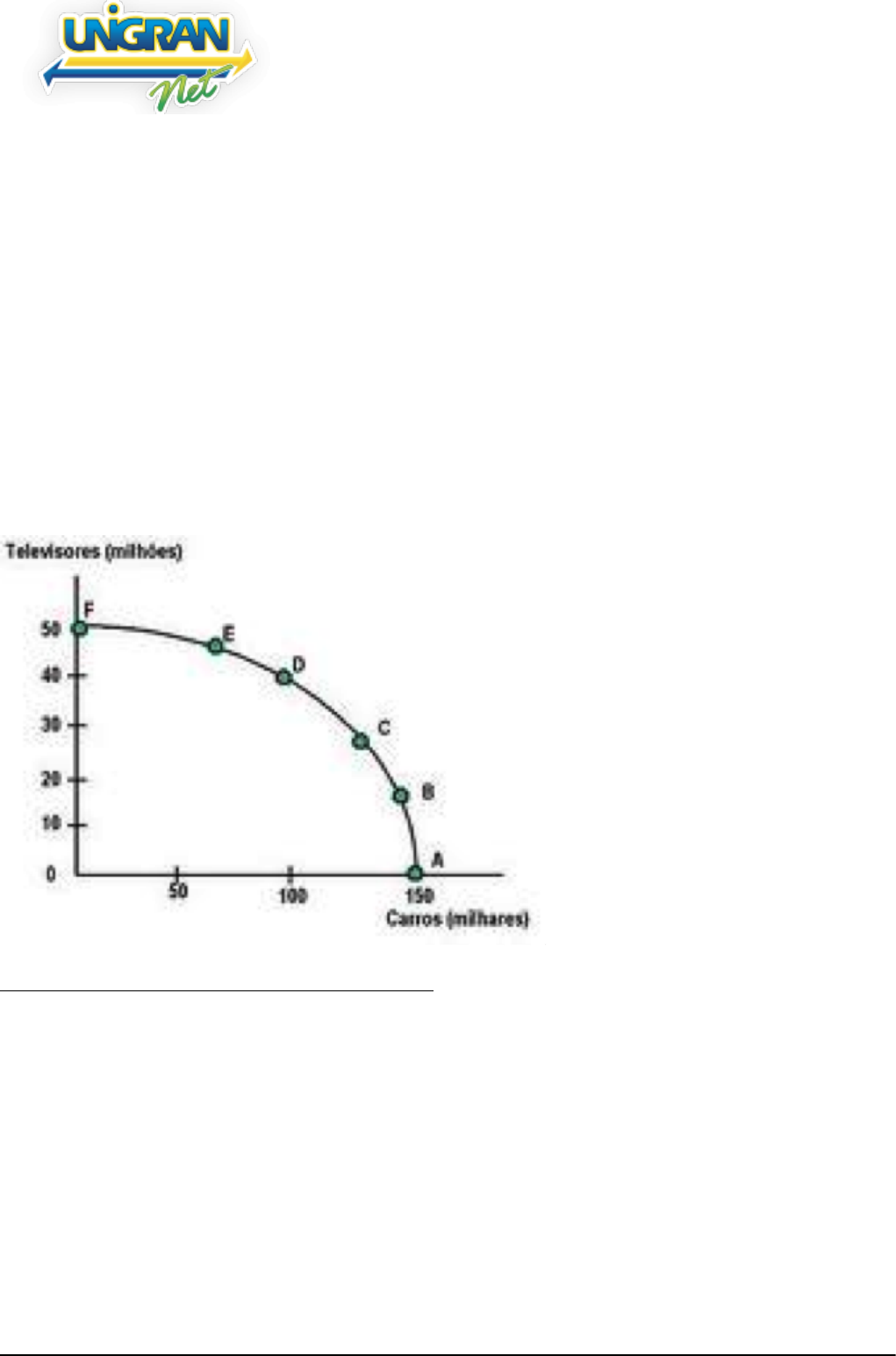 CENTRO UNIVERSITÁRIO DA GRANDE DOURADOS PROVA DO ALUNO Protocolo: 452937 Página 1 - 05/11/2018 às 13:03 P1 e P2 Curso: Engenharia de Produção Disciplina: Economia Data de aplicação: 19/10/2018 Data de Gabarito: 20/10/2018 RGM: 093.603 Aluno(a): YNGRID BRAGGION BARROS PROVA 01 Questão 1 - Aula # - A figura abaixo mostra a Curva de Possibilidades de Produção de um país que produz apenas dois bens: televisores (no eixo vertical) e carros (no eixo horizontal). Analise a figura atentamente e responda: Qual é o custo de oportunidade que o país terá ao decidir deixar de produzir a alternativa de produção F e passar a produzir a alternativa de produção D? O custo de oportunidde do país será de 10 televisores. - Parecer do professor:Correta Questão 2 - Aula # - Segue abaixo a Curva de Possibilidades de Produção de um país que produz batatas (eixo vertical – em quilos) e carne (eixo horizontal – em quilos). Analise a figura e responda: qual é a produção do país se este estiver operando no ponto B? CENTRO UNIVERSITÁRIO DA GRANDE DOURADOS PROVA DO ALUNO Protocolo: 452937 Página 2 - 05/11/2018 às 13:03 O país estaria produzindo no ponto B, 200kg de batatas e 80kg de carne - Parecer do professor:Correta Questão 3 - Aula # - Suponha que, mensalmente, sua renda é de R$900,00. Você pode gastar sua renda em lazer e/ou alimentação. O preço de uma unidade de lazer é de R$15,00 enquanto o preço de uma unidade de alimentação é R$7,50. Das combinações de unidades de lazer e alimentação, qual delas qual delas respeitaria sua restrição orçamentária? a) 40 unidades de lazer e 80 unidades de alimentação. b) 40 unidades de lazer e 40 unidades de alimentação. [CORRETA] c) 35 unidades de lazer e 55 unidades de alimentação. d) 45 unidades de lazer e 40 unidades de alimentação. Questão 4 - Aula # - Com relação à Teoria da Firma assinale a alternativa correta. a) A receita da empresa corresponde aos custos que esta empresa deve pagar para realizar a produção. b) No setor secundário de produção se encaixam todas as atividades ligadas à agricultura, pecuária e extrativismo. c) A maximização dos resultados pode ocorrer quando a firma conseguir maximizar o lucro. [CORRETA] d) O lucro da empresa é dado pela diferença entre a receita marginal e o custo marginal. e) Os rendimentos decrescentes de escala ocorrem quando o volume de produção aumenta mais que proporcionalmente ao aumento da quantidade de fatores de produção utilizados. CENTRO UNIVERSITÁRIO DA GRANDE DOURADOS PROVA DO ALUNO Protocolo: 452937 Página 3 - 05/11/2018 às 13:03 Questão 5 - Aula # - A Curva de Possibilidades de Produção é utilizada nos manuais de Economia para ilustrar um dos problemas econômicos fundamentais do sistema econômico: a escassez. Essa curva, quando construída, mostra: a) Os desejos dos indivíduos perante a produção total de dois bens. b) A quantidade total produzida de dois bens em função do emprego total de mão de obra. c) A quantidade disponível de dois bens em função das necessidades dos indivíduos de uma sociedade. d) Quanto se pode produzir de dois bens com as quantidades de trabalho, terra, matérias primas, capital e com determinada tecnologia. [CORRETA] e) A impossibilidade de atender às necessidades de uma sociedade visto que os recursos são escassos. Questão 6 - Aula # - Suponha que a renda mensal de um indivíduo é R$700,00. Ele pode gastas sua renda em lazer, alimentação e/ou vestuário. O preço de uma unidade de lazer é R$10,00; o preço de uma unidade de alimentação é R$2,00 e o preço de uma unidade de vestuário é R$5,00. Das combinações de unidades de lazer, alimentação e vestuário listadas abaixo qual delas o indivíduo poderia consumir respeitando a sua restrição orçamentária? a) 40 unidades de lazer, 20 unidades de vestuário e 100 unidades de alimentação. [CORRETA] b) 35 unidades de lazer, 40 unidades de vestuário e 90 unidades de alimentação. c) 30 unidades de lazer, 50 unidades de vestuário e 95 unidades de alimentação. d) 25 unidades de lazer, 60 unidades de vestuário e 100 unidades de alimentação. Questão 7 - Aula # - Segue abaixo a Curva de Possibilidades de Produção de um país que produz batatas (eixo vertical – em quilos) e carne (eixo horizontal – em quilos). Analise a figura e assinale a alternativa incorreta. a) No ponto A, a produção do país é de 240kg de batatas e 60 kg de carne. CENTRO UNIVERSITÁRIO DA GRANDE DOURADOS PROVA DO ALUNO Protocolo: 452937 Página 4 - 05/11/2018 às 13:03 b) No ponto B, a produção do país é de 200kg de batatas e 80kg de carne. c) No ponto B, o país trabalha com capacidade ociosa. [CORRETA] d) O custo de oportunidade de passar do ponto A para o ponto B é de 40kg de batatas. Questão 8 - Aula # - A respeito do tema Curva de Possibilidades de Produção (CPP), assinale a alternativa incorreta. a) Em qualquer alternativa de produção na CPP, o custo de oportunidade é nulo. [CORRETA] b) Um ponto ?interior? à CPP (entre a curva e os eixos) mostra uma situação em que a produção é menor do que poderia ser, isto é, ou os recursos produtivos não estão sendo utilizados integralmente ou não estão sendo utilizados com eficiência. c) A noção de custo de oportunidade, subjacente à CPP, relaciona-se estreitamente com o conceito de escassez. d) Se um país almeja produzir em um ponto acima de sua CPP, este deve investir, por exemplo, em novas tecnologias de produção e na descoberta de novas fontes de matérias primas. Questão 9 - Aula # - Com relação aos sistemas econômicos, assinale a alternativa falsa. a) Os países capitalistas desenvolvidos normalmente exportam produtos manufaturados e importam produtos primários. b) Países como o Brasil e os Estados Unidos possuem uma economia mista. c) Em países de economia mista inexiste a participação do Estado na economia. [CORRETA] d) O princípio básico do capitalismo é a pr