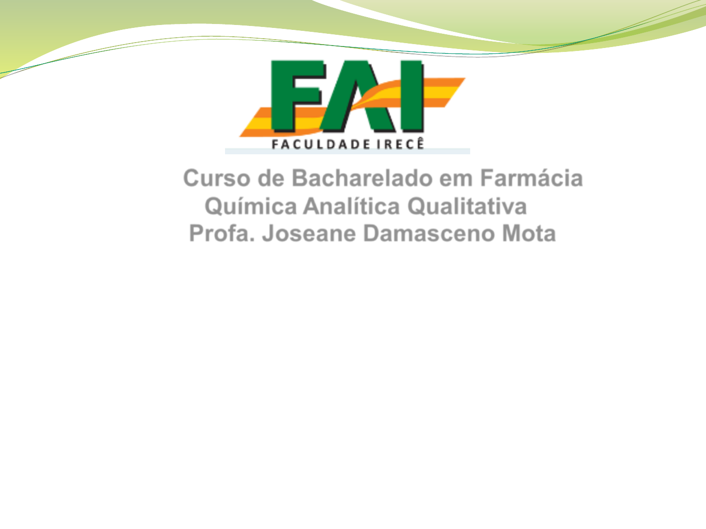 1 SOLUÇÕES E CONCENTRAÇÃO DE SOLUÇÕES Curso de Bacharelado em Farmácia Química Analítica Qualitativa Profa. Joseane Damasceno Mota Doutora em Engenharia Química – Universidade Federal de Campina Grande/UFCG 2 Você sabe o que uma barra de aço, os fluidos do seu corpo (como o sangue e a urina) e um remédio antigripal têm em comum? 3 Imagina se o médico, ao fazer o acompanhamento de um paciente, prescrevesse uma dose de um medicamento que está abaixo do valor mínimo para que seja obtido algum efeito benéfico? O tratamento seria ineficiente, podendo ocasionar a piora no seu quadro clínico ou até mesmo a sua morte! Soluções Solução: é uma mistura homogênea de duas ou mais substâncias. Seus componentes são denominados de solvente e soluto. Solvente: substância que promove a dissolução (maior quantidade). Soluto: substância que se dissolve (menor quantidade). Soluções Coeficiente de solubilidade: é a quantidade necessária de uma substância para saturar uma quantidade padrão de solvente, em determinadas condições de temperatura e pressão. Em função do ponto de saturação, classificamos as soluções em: CLASSIFICAÇÃO DAS SOLUÇÕES Quantidade de soluto dissolvido igual a sua solubilidade SATURADA Quantidade de soluto dissolvido menor do que a sua solubilidade INSATURADA Quantidade de soluto maior do que a sua solubilidade SUPERSATURADA Soluções CLASSIFICAÇÃO DAS SOLUÇÕES Quantidade de soluto dissolvido igual a sua solubilidade SATURADA Quantidade de soluto dissolvido menor do que a sua solubilidade INSATURADA Quantidade de soluto maior do que a sua solubilidade SUPERSATURADA Coeficiente de solubilidade Com relação à solubilidade do medicamento, deve-se exaltar que, para que este seja bem absorvido, um fármaco necessita apresentar certa hidrossolubilidade, além de lipossolubilidade, para que seja capaz de dissolver-se na água do organismo. Coeficiente de solubilidade Para maior parte das substâncias, a solubilidade aumenta com a temperatura. Os gases são, em geral, pouco solúveis em líquidos. A solubilidade dos gases em líquidos depende consideravelmente da pressão e da temperatura. Aumentando-se a temperatura, o líquido tende a “expulsar” o gás, consequentemente, a solubilidade do gás diminui. Os peixes, por exemplo, não vivem bem em águas quentes, por falta de oxigênio dissolvido na água. Aumentando-se a pressão sobre o gás, estaremos, de certo modo, empurrando o gás para dentro do líquido, o que equivale dizer que a solubilidade do gás aumenta. Soluções Concentração das Soluções Concentração das Soluções De um modo geral, usamos o termo concentração de uma solução para nos referirmos a qualquer relação estabelecida entre a quantidade do soluto e a quantidade do solvente (ou da solução). Essas quantidades podem ser dadas em massa (mg, g, kg), em volume (m3, L, mL) ou em mols, teremos várias maneiras de expressar concentrações. Concentração das Soluções Concentração comum (C) Concentração comum é a quantidade, em gramas, de soluto existente em 1 litro de solução. Como se prepara uma solução de concentração definida? Pesar o soluto com a maior precisão possível. Dissolver o soluto e atingir um volume definido em solução. Ex.: 20g/L Concentração das Soluções Não confundir concentração comum (C) com densidade (d) da solução. Concentração comum (C) Concentração das Soluções O leite de vaca de boa qualidade deve ter densidade entre 1,025 e 1,033g/mL; Em exames de urina, o resultado normal se situa entre 1,010 e 1,030g/mL. A densidade de uma solução depende de sua concentração; e na prática, é facilmente medida por um densímetro. Densidade (d) Concentração das Soluções Título ou fração em massa (T) Título em massa de uma solução é a razão entre a massa do soluto e a massa da solução. Concentração das Soluções Título ou fração em massa (T) Concentração das Soluções Partes por milhão (ppm) Partes por milhão (ppm) indica quantas partes do soluto existem em 1 milhão de partes da solução. Concentração das Soluções Concentração em mols por litro ou molaridade É a quantidade, em mols, do soluto existente em 1L de solução Concentração em mols por litro ou molaridade Concentração das Soluções Aplicação: • Qual é a quantidade de matéria por volume de 20 g de NaCl que estão em solução aquosa de 100 mL ? •1ºpasso: descobrir o nºde mols do NaCl: n1= m1/MM1 n1= 20 g/58 gmol -1 n1= 0,34 mol. •2ºpasso: descobrir a molaridade da solução: M = 0,34 mol / 0,1 L M = 3,4 mol/L. Relação entre concentração comum e molaridade Concentração das Soluções Exercícios 01. Calcule a concentração, em g/L, de uma solução de nitrato de potássio (KNO3), sabendo que ela encerra 60g do sal em 300 cm 3 de solução. 02. Um analgésico em gotas deve ser ministrado na quantidade de 3mg por quilograma de peso corporal, não podendo contudo exceder 200mg por dose. Cada gota contém 5mg de analgésico. Quantas gotas deverão ser ministradas a um paciente de 80kg? Exercícios 03. Uma solução contém 8 g de cloreto de sódio e 42 g de água. Qual é o título em massa da solução? E seu título percentual? 04. Tem-se um frasco de soro glicosado, a 5,0% (solução aquosa de 5,0% em massa de glicose). Para preparar 1,0kg desse soro, quantas gramas de glicose devem ser dissolvidos em água? Exercícios 05. Na embalagem de um certo iogurte, consta que em 150 mL do produto há 150 mg de cálcio (MCa=40g/mol). Qual a concentração molar de cálcio nesse iogurte? 06. As literaturas médicas citam uma concentração média de 143 mililitros de Na+ por litro de sangue humano. Qual será a massa em gramas do íon sódio (Na=23) contida em 7 litros de sangue nessa concentração? 07. Observe o gráfico a seguir e responda às questões que se seguem: a) Qual a menor quantidade de água necessária para dissolver completamente, a 60º C,