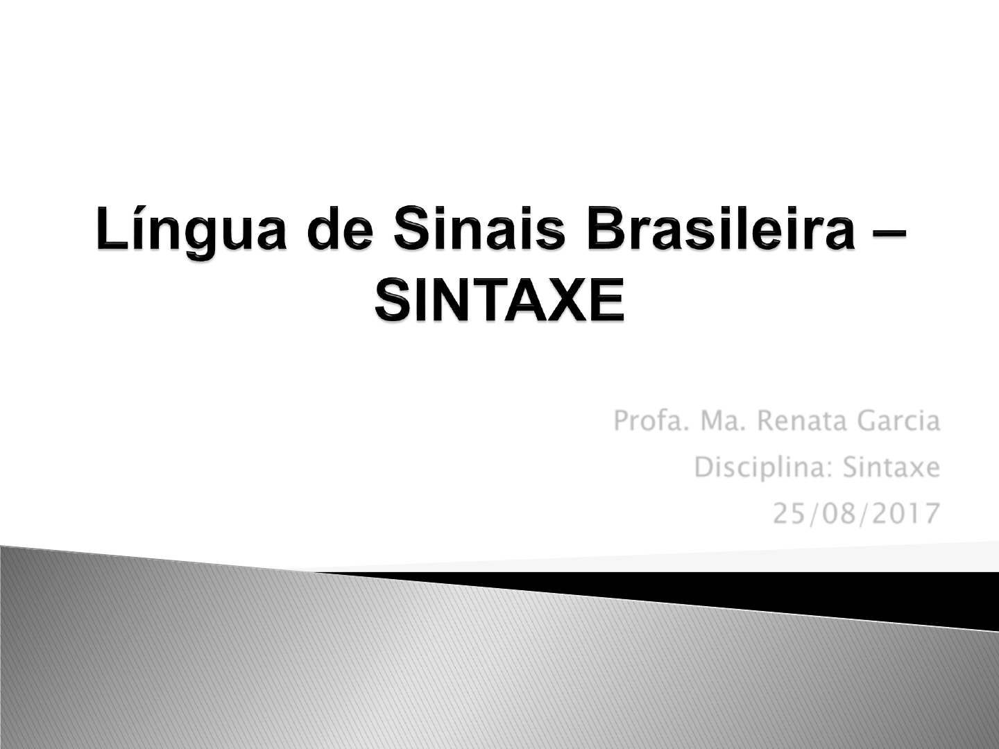 Profa. Ma. Renata Garcia Disciplina: Sintaxe 25/08/2017 QUADROS, R. M. de & KARNOPP, L. Língua de sinais brasileira: estudos linguísticos. ArtMed. Porto Alegre. 2004 – Capítulo 4 - 127 à 212 É a área de estudo que analisa a combinação das palavras para a formação de estruturas maiores (frases). Qualquer referência usada no discurso requer o estabelecimento de um local no espaço de sinalização ( espaço definido na frente do corpo do sinalizador). Este local pode ser referido através de vários mecanismos espaciais, apresentados a seguir: a) fazer o sinal em um local particular (se a forma do sinal permitir; por exemplo, o sinal de “CASA” pode acompanhar o local estabelecido para o referente); A SINTAXE ESPACIAL b) direcionar a cabeça e os olhos (e talvez o corpo) em direção a uma localização particular simultaneamente com o sinal de um substantivo com a apontação para o substantivo; c) usar a apontação ostensiva antes do sinal de um referente específico (por exemplo, apontar para o ponto ‘a’ associando esta apontação com o sinal CASA; assim o ponto ‘a’ passa a referir CASA); d) usar um pronome (a apontação ostensiva) numa localização particular quando a referência for óbvia; e) usar um classificador (que representa aquele referente) em uma localização particular; f) usar um verbo direcional (com concordância) incorporando os referentes previamente introduzidos no espaço. Na Língua de Sinais Brasileira, os sinalizadores estabelecem os referentes associados a localização no espaço, sendo que tais referentes podem estar fisicamente presentes ou não. Quando os referentes estão presentes, os pontos no espaço serão estabelecidos baseados na posição real ocupada pelo referente. Quando os referentes estão ausentes da situação de enunciação, são estabelecidos pontos abstratos no espaço. A LIBRAS apresenta certa flexibilidade na ordem das palavras. Portanto, determinar a sua ordem básica não é tão trivial. SVO – OSV – SOV I – todas as frases com a ordem SVO são gramaticais: El@ assiste TV (SVO) El@ gosta de futebol (SVO) II – as ordens OSV e SOV ocorrem somente quando há alguma coisa a mais na sentença, como concordância e as marcações não-manuais: El@ TV assiste. ( SOV) Futebol el@ gosta.(OSV) Ele gosta de futebol. Comparando as construções com as marcas não-manuais e as construções sem estas marcas, conclui-se que alguma coisa associada a essa marcas é o que permite a movimentação dos constituintes na Língua de Sinais Brasileira. Se não houver tais traços particulares, as construções são consideradas agramaticais. No entanto, na ordem SVO tais marcas NÃO são imprescindíveis. III – apesar de ocorrerem construções SOV e OSV associadas a marcas não-manuais, se houver uma estrutura complexa na posição de objeto, NÃO será possível mudar o objeto de ordem: EU ACHAR M-A-R-I-A IR-EMBORA Eu acho que a Maria foi embora. * M-A-R-I-A IR-EMBORA ACHAR * agramatical EU QUERER M-A-R-I-A TRABALHAR MELHOR Eu quero que Maria trabalhe melhor * EU M-A-R-I-A TRABALHAR MELHOR QUERER IV – os advérbios temporais e de frequência NÃO podem interromper uma relação entre o verbo e o objeto. Isso é considerado mais um argumento para conceber a ordem SVO como básica na LIBRAS. J-O-Ã-O COMPRAR ONTEM CARRO. ( Ontem João comprou um carro) EU BEBER ALGUMAS-VEZES LEITE. ( Algumas vezes eu bebo leite) J-O-Ã-O COMPRAR CARRO AMANHÃ. EU BEBO LEITE ALGUMAS-VEZES. ?? ALGUMAS-VEZES EU BEBO LEITE. V – através da topicalização muda-se a ordem da frase. A marca de tópico associada ao sinal topicalizado é seguida por outras marcas não-manuais, de acordo com o tipo de construção: a) marca não-manual de foco (se a sentença for focalizada) b) marca não-manual de negação (se for negativa) c) marca não-manual de interrogação (se for interrogativa) FUTEBOL J-O-Ã-O GOSTAR (De futebol, João gosta) FUTEBOL J-O-Ã-O GOSTAR-NÃO (De futebol, o João não gosta) FUTEBOL J-O-Ã-O GOSTAR (De futebol, o João gosta?) VI – as construções com foco incluindo verbos sem concordância podem derivar estruturas SOV. EU PERDER LIVRO <PERDER> Eu perdi o livro. EU ??? LIVRO <PERDER> Eu perdi o livro. O elemento final é apenas a duplicação do verbo original que foi apagado devido à existência de uma cópia com a mesma identidade. Este verbo final é necessariamente associado à marca não-manual afirmativa. VII – elevação do objeto nas construções contendo verbos com concordância. A presença de concordância verbal permite a elevação do objeto para uma posição mais alta derivando a ordem SOV. JOÃOa MARIAb DAR LIVRO NÃO verbo com concordância estabelecimento nominal João não deu o livro a Maria VIII – a ordem (S)V(O) é derivada pela possibilidade de omitir-se tanto o sujeito como o objeto nas construções com verbos com concordância ( Quadros, 1995). aDARb (el@) deu (algo) (el@) IX – a ordem VOS também pode ocorrer em contextos de foco contrastivo. QUEM COMPRAR CARRO J-O-Ã-O OU M-A-R-I-A ? Bibliografia: QUADROS, Ronice Muller & KARNOPP, Lodenir Becker. Língua de sinais brasileira: estudos linguísticos. Porto Alegre: Artmed, 2004. Marque a ordem em que está cada frase em LIBRAS: A) MARIANA VIAJAR AO SUL DO BRASIL a.( ) SOV b.( ) VOS c.( ) OSV d.( ) SVO e.( ) OVS f.( ) VSO B) FÁBIO GOSTAR LIVRO ROMANCE a.( ) SOV b.( ) VOS c.( ) OSV d.( ) SVO e.( ) OVS f.( ) VSO C) GOSTAR CARRO PEDRO. a.( ) SOV b.( ) VOS c.( ) OSV d.( ) SVO e.( ) OVS f.( ) VSO D) JOÃO LIVRO COMPRAR a.( ) SOV b.( ) VOS c.( ) OSV d.( ) SVO e.( ) OVS f.( ) VSO E) EU CADERNO PERDER a.( ) SOV b.( ) VOS c.( ) OSV d.( ) SVO e.( ) OVS f.( ) VSO Explique a diferença entre uma língua viso- espacial e uma língua oral-auditiva. LÍNGUA VISO-ESPACIAL: - língua usada como meio de comunicação principal da Comunidade Surda; - língua cujo canal de emissão ocorre no espaço diante do corpo do locutor; - língua cujo canal de recep