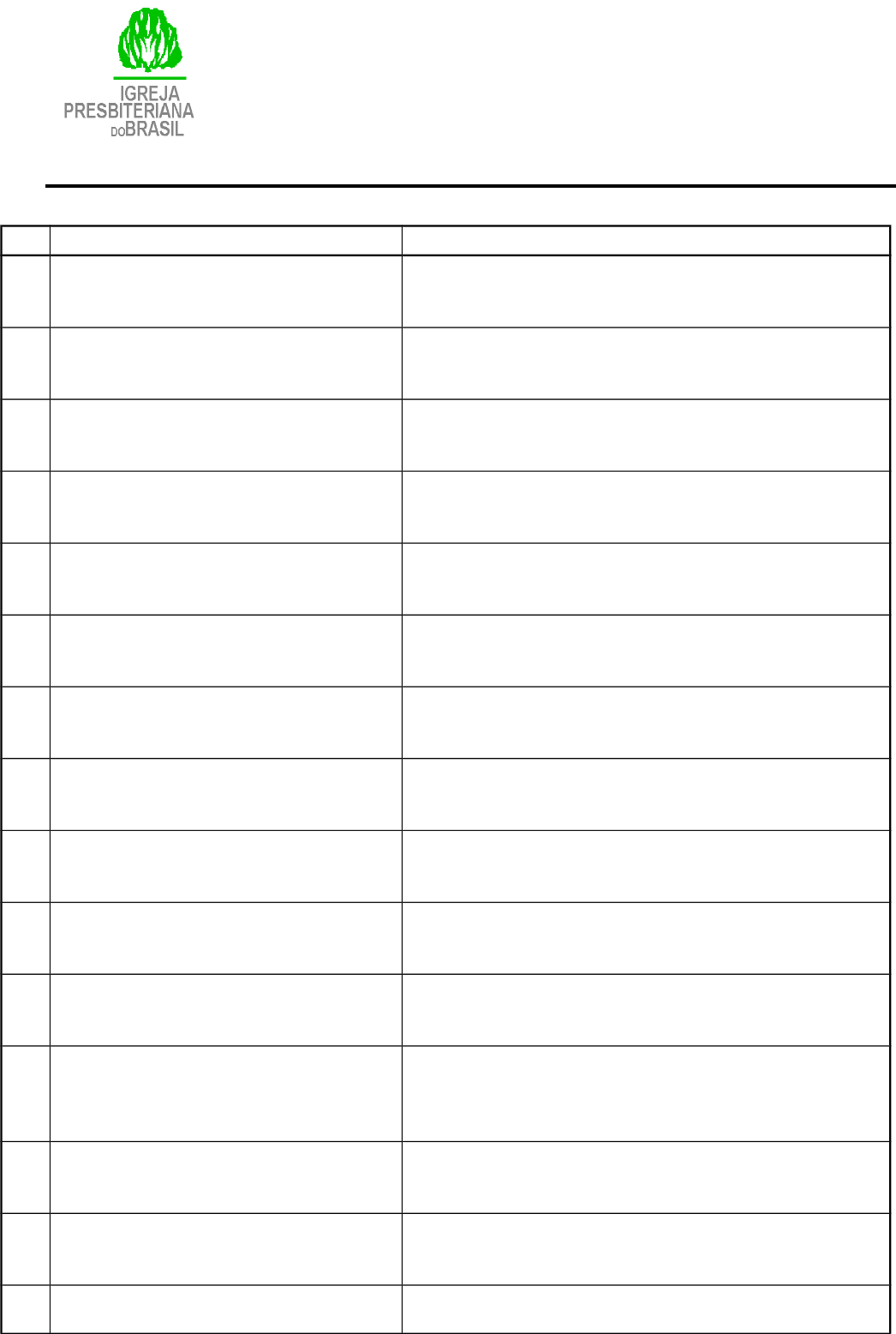 Nº PERGUNTA OPÇÕES 01 A revelação do Apocalipse foi enviada por meio de quem? (1.1) Jesus Cristo. Um anjo. O apóstolo João. 02 Quantas bem-aventuranças existem no livro de Apocalipse ? 3. 5. 7. 03 Quem são os bem-aventurados do capítulo 1.3 ? Os que lêem, ouvem e guardam a profecia. Os que lavam suas vestes no mar de vidro. Aqueles sofrem o martírio por causa da fé. 04 João escreve a sete Igrejas. Em qual região elas estão situadas ? (1.4) Na Palestina. Na Macedônia. Na Ásia. 05 Todo olho o verá, vindo sobre as nuvens. Há um grupo específico que verá Jesus, qual é ? (1.7). Os imperadores romanos que perseguiam. Aqueles que o traspassaram. A Igreja. 06 O que é o alfa e o ômega ? A primeira e última letras do alfabeto hebraico. A primeira e a última letras do alfabeto grego. Apenas uma designação da encarnação de Cristo. 07 O que são os sete candeeiros de ouro ? (1.20) Os anjos das Igrejas. As Igrejas . O Tabernáculo eterno de Cristo. 08 João ao escrever o Apocalipse está exilado em: (1.9) Creta. b. Éfeso. c. Patmos. 09 O nome das 2 Igrejas que Jesus somente elogia: (2.8-11; 3.7-13). Esmirna e Filadélfia. Tiatira e Esmirna. Filadélfia e Sardes 10 O nome das Igrejas onde haviam problemas com os Nicolaítas: (2.6,15) a. Tiatira e Laodicéia. b. Sardes e Filadélfia. c. Éfeso e Pérgamo 11 Antipas foi morto por causa do testemunho de Cristo. Em qual cidade ? (2.13) Pérgamo. Esmirna. Laodicéia. 12 Na Igreja de Tiatira havia uma profetiza que estava desagradando a Deus por causa de sua prostituição. O seu nome é: (2.20) Atalia. Priscila Jezabel 12 Ao vencedor de qual Igreja Deus dará uma pedrinha branca com um novo nome secreto ? (2.17) Éfeso. Sardes. Pérgamo. 12 Qual o prêmio ao vencedor da Igreja de Sardes ? (3.5) ser coluna no santuário de Deus. assentar-se com Cristo em seu trono. Vestir-se de vestiduras brancas. 13 A característica de Cristo revelada à Igreja de Filadélfia é: (3.7) Aquele que abre e ninguém fecha. Aquele que tem os pés de bronze polido. Aquele que anda no meio dos candeeiros. 14 Qual Igreja deveria comprar colírio para ungir seus olhos ? (3.180 Éfeso. Laodicéia. Esmirna. 15 Qual das Igrejas tinha fama de viva, mas para Deus estava morta ? (3.1) Sardes. Laodicéia. Pérgamo. 16 Ao redor do trono de Cristo estão outros 24 tronos. Qual as principal características daqueles que estão assentados neles ? (4.4) Estão vestidos de ouro com coroas de arruda na cabeça. Estão vestidos de branco com coroas de ouro na cabeção. Estão vestidos de branco com palmas nas mãos. 17 Os quatro seres viventes diante do trono têm aparência de respectivamente : (4.7) Leão, touro, cavalo e águia. Leão, novilho, homem e águia. Leão, novilho, águia e cordeiro. 18 “Tu és digno, Senhor e Deus nosso, de receber a glória, a honra e o poder...” é uma declaração : (4.10) Dos 4 seres viventes. Dos 144 mil redimidos. Dos 24 anciãos. 19 O livro que estava na mão direita de Deus (assentado no trono) era: (5.1) Escrito por dentro e por fora. Selado com seis selos. Entregue selado ao ancião de dias. 20 Por que João chorou ao ver o livro na mão direita de quem estava assentado no trono ? (5.4) Porque o livro era muito grande e pesado. Porque seria preciso esperar ainda muito tempo até que este livro pudesse ser aberto. Porque ninguém era digno de abri-lo. 21 No capítulo 5, Cristo recebe o nome de dois animais que são: (5.5,6) O cordeiro e o novilho. O cordeiro e o leão. O cordeiro e a águia. 22 Quantas vezes aparece a palavra cordeiro no capítulo cinco de Apocalipse ? (5.6,8,12 e 13) 7 vezes. 4 vezes. 5 vezes. 23 As orações dos santos são comparadas a: (5.8) Aromas suaves. Incenso. Sacrifícios de louvor. 24 O que o cavaleiro do primeiro selo tinha nas mãos ? (6.2) Uma espada. Uma balança. Um arco. 25 As cores dos cavalos do capítulo 6 são: (6.2, 4, 5 e 8) Preto, laranja, branco e marrom. Branco, vermelho, preto e amarelo. Branco, preto, malhado e amarelo. 26 Uma das funções do cavalo vermelho será: (6.4) Arregimentar as nações contra o cordeiro. Destruir um terço da terra com peste. Tirar a paz da terra. 27 Qual dos cavaleiros tinha uma balança na mão ? (6.5) O que montava o cavalo branco. O que montava o cavalo amarelo. O que montava o cavalo preto. 28 Quem estava seguindo o cavalo amarelo ? (6.8) O inferno. O lago de fogo. O dragão de fogo. 29 Que evento está ligado à abertura do quinto selo ? (6.9-11) A morte da Quarta parte da terra pela peste e fome. O clamor das almas dos mártires. O lamento dos reis e príncipes da terra por sua própria incredulidade diante do Cordeiro. 30 Quatro anjos retinham os ventos após a abertura do quinto selo. Até quando eles deveriam fazer isso ? (7.3) Até que todos os servos de Deus fossem selados na fronte. Até que os mortos em Cristo ressuscitassem. Até que o dragão investisse contra a mulher no deserto. 31 Qual o número daqueles que foram selados pelos 4 anjos ? (7.4) 144 mil. 12 mil. 7 mil. 32 Aqueles que virão da grande tribulação, terão vários privilégios. Um deles será: (7.17) Assentarem-se no trono de Deus perpetuamente. Serem guiados por Cristo às fontes da água da vida. Comer do fruto da videira pela mão do cordeiro. 33 O que aconteceu quando o Cordeiro abriu o sétimo selo ? (8.1) A grande montanha de fogo foi atirada ao mar. Foi ferida a Terça parte do sol, da lua e das estrelas. Houve silêncio no céu por meia hora. 34 Havia um anjo com um incensário nas mãos quando os sete anjos receberam as sete trombetas. A quê o seu incenso faria companhia diante do trono de Deus ? (8.3) Às orações dos santos. Ao cântico dos 24 anciãos. Ao juízo das sete trombetas. 35 Está relacionado à primeira trombeta: (8.7) À águia que voa gritando 3 ais. À libertação dos 4 anjos atados junto ao rio Eufrates. À queima da Terça parte da terra. 36 Quantas trombetas são tocadas no capítulo 8 de Apocalipse ? Todas as 7. Apenas 4 são tocadas 