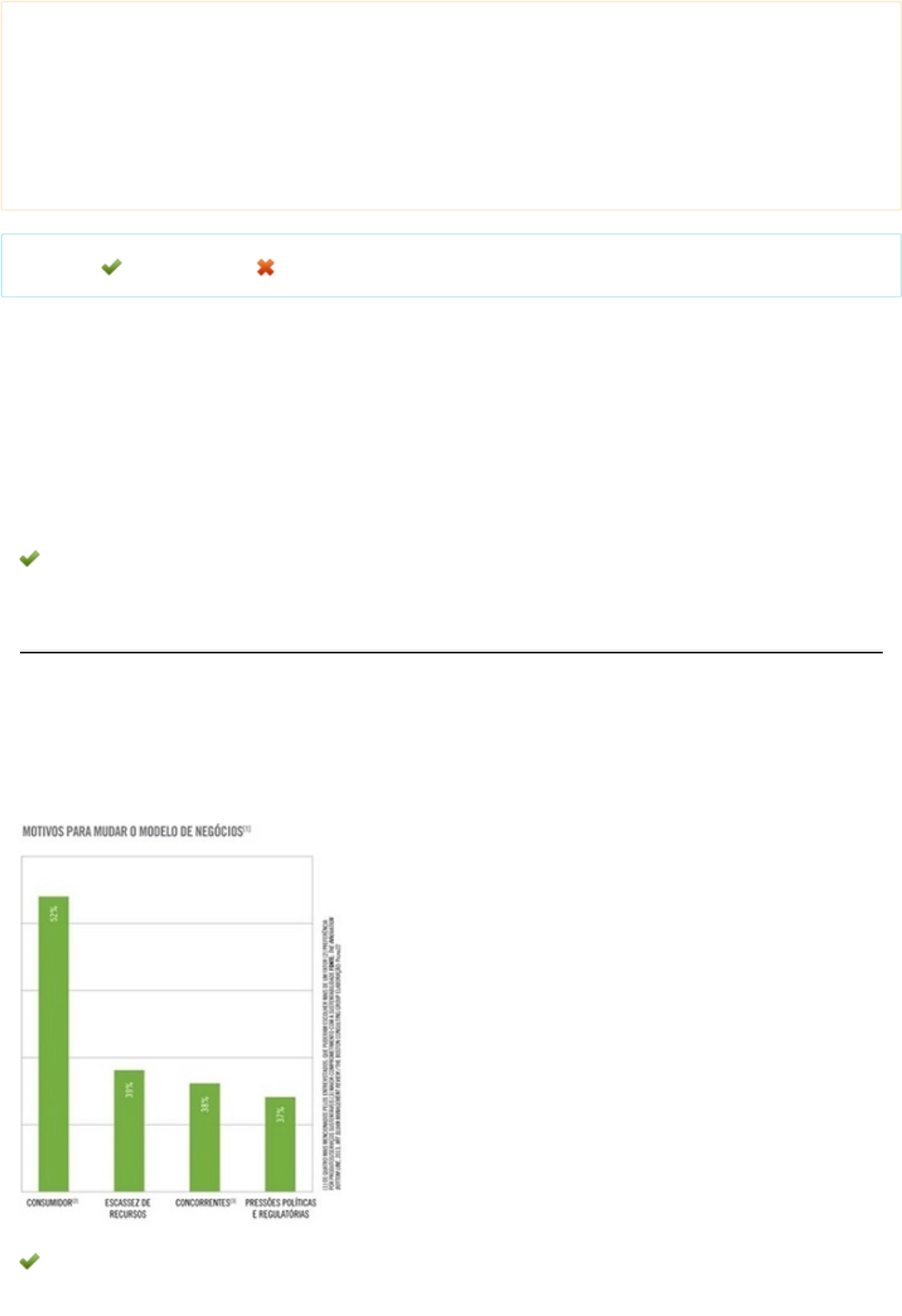 Acadêmico: Maicon de Souza Joaquim (1984127) Disciplina: Estudo Transversal I (17579) Avaliação: Avaliação disciplina on-line ( Cod.:512735) ( peso.:10,00) Prova: 16228806 Nota da Prova: 10,00 Legenda: Resposta Certa Sua Resposta Errada 1. A poluição por materiais plásticos é um grave problema ambiental e requer, para seu enfrentamento, três abordagens complementares: a drástica redução do uso, a substituição por novos materiais (com características similares ao plástico sintético) facilmente degradáveis e a destinação adequada dos resíduos, via coleta e reciclagem. Com base no exposto, assinale a alternativa CORRETA: FONTE: https://revistapesquisa.fapesp.br/2019/07/08/planeta-plastico/. Acesso em: 24 jul. 2019 (adaptado). a) O consumidor é quem manda no mercado, suas escolhas influenciam as políticas ambientais e a produção de plásticos tende a aumentar com o reaproveitamento de embalagens usadas. b) A internet é uma rede de comunicação mundial que contribui para a disseminação de informações sobre a poluição por plásticos, o que gera melhoria ambiental direta. c) O cidadão pode contribuir com a redução do consumo de plásticos a partir de atitudes simples do dia a dia, como evitar o uso de materiais descartáveis, priorizar o reaproveitamento e a reciclagem. d) A pessoa é responsável por aquilo que consome e gera de resíduos, bem como pela poluição por materiais plásticos, os quais são facilmente degradáveis e adequadamente coletados e reciclados. 2. Uma pesquisa com mais de 2.631 executivos, gerentes e formadores de opinião de todo o mundo e de uma gama variada de indústrias revelou que a reformulação no modelo de negócio das empresas se dá conforme os resultados apresentados na figura a seguir. Com base no texto e na figura, quem mais influencia as empresas a implantarem estratégias de sustentabilidade? FONTE: http://pagina22.com.br/2013/04/08/mais-empresas-lucram-com-sustentabilidade/. Acesso em: 25 jul. 2019 (adaptado). a) Recursos naturais escassos. b) Consumidores. c) Concorrentes. d) Pressões políticas e regulatórias. 3. A meta n° 12.5 dos ODS da ONU diz: "Até 2030, reduzir substancialmente a geração de resíduos por meio da prevenção, redução, reciclagem e reúso". Neste contexto, espera-se que cada nação e cidadão desenvolva ações para atingir essa meta. São exemplos de ações que podem ser praticadas no dia a dia, e que contribuem para alcançar essa meta: a) Consumir produtos orgânicos de origem agroecológica; optar por recusar a reciclagem de resíduos e adquirir produtos novos e modernos; reutilizar os rejeitos para a fabricação de embalagens de alimentos. b) Usar sacolas plásticas quando for ao supermercado; encher as sacolas com alimentos biodegradáveis; comprar produtos com embalagens grandes e coloridas, ricas em informações ambientais. c) Utilizar sacolas retornáveis ao fazer compras em supermercados; evitar o desperdício de alimentos; manter embalagens limpas e secas e encaminhá-las para a reciclagem. d) Reduzir o consumo de materiais recicláveis; reutilizar embalagens de resíduos perigosos, como as de agrotóxicos; encaminhar todos os resíduos sólidos urbanos para o aterro sanitário. 4. Considerando as informações da figura, é correto afirmar que: FONTE: https://i.pinimg.com/474x/05/2f/a6/052fa68dc121cd53a3168799e2bff0bc.jpg. Acesso em: 12 set. 2019. a) O ser humano tem consciência das consequências de suas atitudes e, por isso, age com responsabilidade socioambiental. b) Quanto mais árvores menos calor, quanto menos árvores mais sombra. c) O calor é proveniente da radiação solar que incide diretamente no solo, e a ausência das árvores contribui para reduzir o calor local. d) Mesmo com as evidências óbvias do efeito do desmatamento sobre o clima local, o ser humano parece não reconhecer o mal que faz a si mesmo ao eliminar florestas. 5. Há um contraste entre a reciclagem dos diferentes resíduos no Brasil. Se, por um lado, o país é campeão mundial em reciclagem de alumínio, com mais de 98% de reciclagem desse resíduo, o plástico apresenta um índice de reciclagem muito baixo, cerca de 1%, o que significa que há um grande volume de plásticos depositados em aterros e dispersos na natureza. Para melhorar esse cenário, cada cidadão brasileiro precisa fazer a sua parte para reduzir o consumo de plástico e reciclar o que já está em circulação. Com base no exposto, assinale a alternativa CORRETA: FONTE: https://www.wwf.org.br/?70222/Brasil-e-o-4-pais-do-mundo-que-mais-gera-lixo-plastico. Acesso em: 25 jul. 2019. a) O consumidor pode mudar seus hábitos, repensando, recusando, reduzindo, reutilizando e reciclando os produtos com componentes plásticos. b) O plástico é um produto utilizado em larga escala na indústria, no comércio e nas residências de um modo geral, o que aumenta os índices de reciclagem. c) O uso excessivo do plástico, especialmente os descartáveis, contribui para Brasil ser líder mundial na reciclagem deste resíduo. d) O consumidor brasileiro, ao desperdiçar comida e não separar os resíduos em casa, contribui para os baixos índices de reciclagem do plástico e do alumínio. 6. Dados da ONU apontam que uma em cada três pessoas no mundo não tem acesso à água potável. Esses dados revelam a importância do ODS número 6 que pretende, até 2030, assegurar a disponibilidade e gestão sustentável da água e saneamento para todas e todos. Dentre as metas propostas para alcançar esse objetivo, analise as sentenças a seguir: I- Alcançar o acesso universal e equitativo à água potável e segura para todos. II- Proteger e restaurar ecossistemas relacionados com a água, incluindo montanhas, florestas, zonas úmidas, rios, aquíferos e lagos. III- Melhorar a qualidade da água, reduzindo a poluição, eliminando despejo e minimizando a liberação de produtos químicos e materiais perigosos, reduzindo pela metade a proporção 