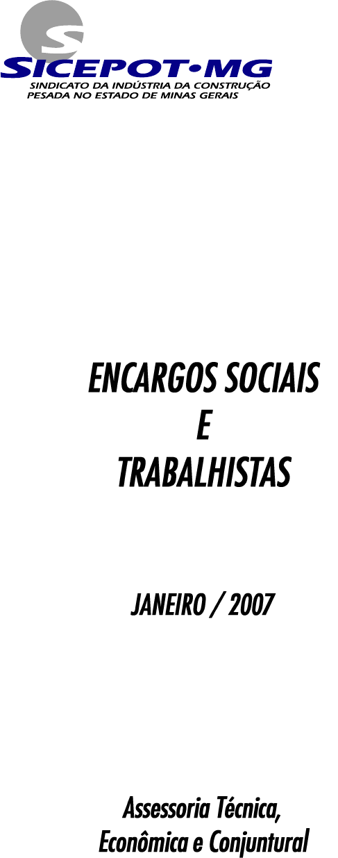 A versão/96 dos “Encargos Sociais e Trabalhistas do SICEPOT-MG” se fez necessária em função da
