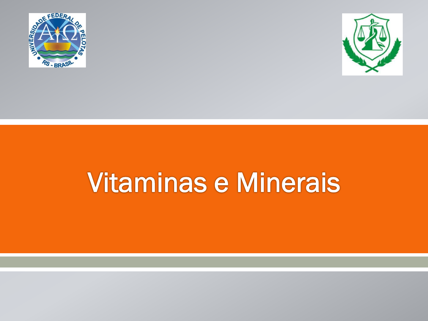 Prof.ª Dra. Pathise Oliveira Ministério da Educação Universidade Federal de Pelotas Substâncias encontradas nos alimentos (proteínas, carboidratos, gorduras, vitaminas, minerais e fibras São divididos em macro e micronutrientes Macronutrientes Proteínas Carboidratos Lipídeos Energia necessária para preservar as funções corporais durante o repouso e o exercício físico Micronutrientes Vitaminas Minerais Desempenham três grandes funções: energética, construtora e reguladora Época das grandes navegações Após algumas semanas fraqueza, hemorragias, desatenção e até mortes Poucos dias em terra firme, alimentando-se de frutas e verduras frescas sintomas rapidamente desapareciam! As fontes naturais são os alimentos Podem também ser utilizadas na forma de medicamentos para minimizar deficiências vitamínicas o Vitaminas podem sofrer destruição pelo calor e exposição ao oxigênio o Alimentos crus ou levemente cozidos em água ou vapor preservam o conteúdo vitamínico o Frutas, verduras e vegetais para saladas só devem ser cortados no momento de serem servidos As doenças causadas por falta de vitaminas são chamadas AVITAMINOSES e são classificadas como doenças carências Liberadas, absorvidas e transportadas com os lipídeos da dieta São transportadas para o fígado através da linfa como parte das lipoproteínas (quilomicrons) São estocadas no fígado e tecido adiposo Se consumidas em excesso são tóxicas (hipervitaminose) CHAMPE, P.; Harvey R; Ferrier D. Bioquímica ilustrada. Editora Artmed, 2009 Lipossolúvel Funções no organismo: Mantém saudáveis a pele e as mucosas proteção contra infecções (sistema imunológico) Desenvolvimento da retina bom funcionamento da visão Fortalecimento do sistema imune e conservação do esmalte dentário Avitaminose (carência) Infecções recorrentes, Afeta o desempenho físico Cegueira noturna e xeroftalmia podem levar à cegueira definitiva Principais fontes: Vegetais amarelos e verdes-escuros contém β-caroteno que será convertido em vitamina A no fígado. Fígado, manteiga e gema de ovo contém a vitamina A pronta. Mulheres: 700 μg/dia Homens: 900 μg/dia Alimento (100g) Vitamina A / Retinol Fígado grelhado 14.574μg Leite em pó integral 361μg Espinafre 7.385μg Abóbora crua 2.800μg Cenoura 14.500μg Escarola 21.000μg Salsa 70.000μg Brócolis cru 15.000μg Mamão 2.350μg Lipossolúvel (vitamina e hormônio) Não é encontrada pronta nos alimentos A pré-vitamina D é convertida em vitamina D por ação da radiação solar Funções no organismo: Facilita a absorção de cálcio e fósforo no intestino Formação correta de ossos e dentes Mulheres: 15 μg/dia Homens: 15 μg/dia 15 μg=600 UI Excesso: hipercalemia (K), fraqueza, letargia, náuseas, vômitos, dores articulares Avitaminose: Exposição ao sol/filtro solar Perda do tecido ósseo (osteomalácia): fraqueza e dor Raquitismo ossos fracos e mal formados Óleo de fígado de bacalhau, atum, salmão, fígado, leite*, gema de ovo, cereais* Alimento Vitamina D Óleo de fígado de bacalhau (1 col) 34 mcg Salmão cozido (100g) 12,5 mcg Arenque fresco (100g) 23,5 mcg Sardinha (100g) 7,5 mcg Leite em pó Fortificado (100g) 6,2 mcg Lipossolúvel (α tocoferol: tocóis e tocotrienóis) α tocoferol tem maior atividade biológica e abundância nos alimentos, mas a absorção é ineficiente (20 a 40%) Aumenta absorção com a gordura Funções no organismo • Promove a fertilidade e previne o aborto importante na gravidez • Antioxidante: atua na remoção de radicais livres do oxigênio Atua bloqueando as reações que ocorrem durante o processo de oxidação lipídica, preservando a membrana celular Avitaminose: Esterilidade masculina e aborto. Principais fontes: Gérmen de trigo, amêndoas, amendoim, nozes e avelâs, gema de ovo e hortaliças frescas óleos ricos em AG poli-insaturados são fortificados com vitamina E Mulheres: 15 μg/dia Homens: 15 μg/dia Alimento (100g) Vitamina E Azeite de oliva 11,42 mg Amendoim 7,78 mg Avelãs secas 23 mg Castanha do pará 7,6 mg Amêndoas secas 24 mg Pistaches secas 5,21 mg Óleo de amendoim 11,42 mg Óleo de milho 13,5 mg Lipossolúvel Funções no organismo: Previne hemorragias Está presentes em alimentos de origem vegetal (filoquinonas ou K1) ou sintetizadas pelas bactérias intestinas (menaquinonas ou K2) Avitaminose: Hemorragias recorrentes Mulheres: 90 μg/dia Homens: 120 μg/dia Deficiência é incomum em adultos saudáveis A flora microbiana sintetiza menaquinonas que podem contribuir com a necessidade de vitamina K Necessidades atingidas com ingestão + biossíntese no intestino Excesso: Não há relatos de efeitos tóxicos, até 500x DRI e nem no desempenho físico Vitamina K Vegetais verde-escuros (espinafre, alface, couve-flor, brócolis, rúcula), tomate, amêndoas, castanhas fígado, rim, coração, manteiga, ovos e óleos vegetais Alimento (100g) Vitamina K Couve flor crua 191 mcg Couve crua 275 mcg Gema de ovo 147 mcg Fígado bovino cru 104 mcg Dissolvem-se na água As vitaminas do complexo B e a vitamina C atuam como reguladoras das funções metabólicas Normalmente de origem vegetal (exceto a B12) Pouco armazenadas no organismo e seu excesso é eliminado pela urina Hidrossolúvel Funções: o Auxilia na respiração celular conversão de glicose em energia e mantém o tônus muscular e o bom funcionamento do sistema nervoso Principais fontes: Cereais integrais, pinhão, Feijão, Leite, Fígado, peixe, Carnes magras e pão. - Se perde em altas temperaturas! - Excesso é removido pelos rins! Mulheres: 1,1 mg/dia Homens: 1,2 mg/dia Avitaminose > Álcool (principal causa) Beribéri: perda do apetite, fadiga muscular, problemas gastro-intestinais e no sistema nervoso. Aumento das necessidades de B1 devido ao EF extenuante, febre, gravidez, lactação ou crescimento EF requer um aumento de B1 A TPP (tiamina pirofosfato) é necessária para descarboxilação oxidativa do piruvato, formando acetato 