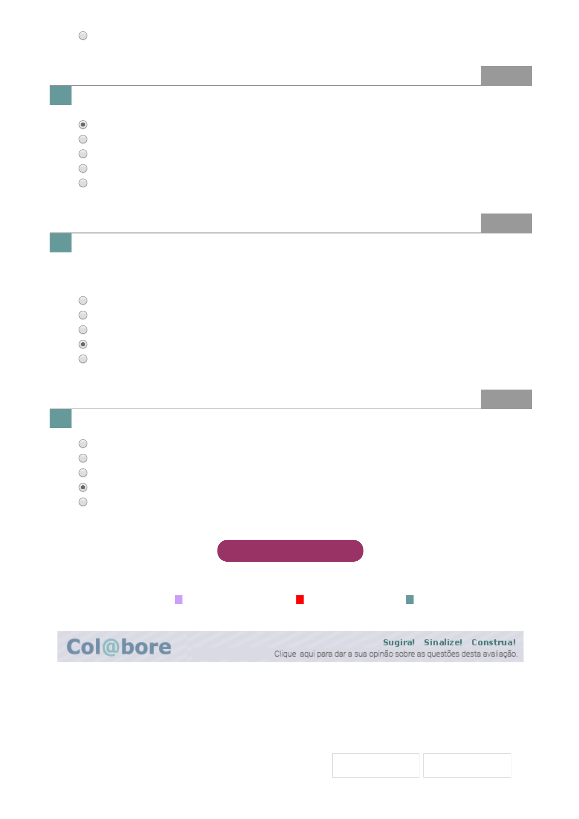 04/05/2020 Conteúdo Interativo estacio.webaula.com.br/Classroom/index.html?id=2829791&courseId=14594&classId=1288978&topicId=3070298&p0=03c7c0ace395d80182db0… 1/1 Tópico Anterior Próximo Tópico 1 ponto Uma empresa apresentou os seguintes dados: Receitas: $250.000,00; Despesas: $200.000,00. Supondo-se que os sócios distribuam todo lucro entre eles, assinale a alternativa CORRETA: (Ref.: 202005075699) 1 ponto A empresa MTT Ltda detém um saldo de $ 20.000 em seu Caixa e $ 20.000 no seu Capital Social. Efetuou uma compra de mercadorias, à vista, no valor de $10.000, um pagamento de Despesa com energia no valor de $ 500, um pagamento de telefone no valor de $ 300 e uma venda de mercadorias à vista no valor de $ 8.000. O valor do Custo da Mercadoria Vendida foi de $ 5.000. Pergunta-se: qual o resultado do período dessa empesa? (Ref.: 202002429326) 1 ponto O ativo circulante pode ser composto através das seguintes contas: (Ref.: 202002361755) São contas do Patrimônio Líquido 8. O patrimônio líquido da empresa ficará inalterado O patrimônio líquido da empresa diminuirá O patrimônio da empresa aumentará Após a distribuição dos lucros correspondentes, o ATIVO não se alterará O balanço patrimonial apresentará a conta lucros acumulados no valor de $50.000,00 9. Lucro de R$ 800,00 Lucro de R$ 8.000,00 Lucro R$ 5.800,00 Lucro de R$ 2.200,00 Prejuízo de R$ 500,00; 10. Contas a Pagar, Caixa, Fornecedores e Estoques. Capital, Fornecedores, Reserva de Lucros e Empréstimos Bancários. Impostos a Recolher, Veículos, Aplicações Financeiras e Contas a Pagar. Estoques, Caixa, Aplicações Financeiras e Clientes. Contas a Pagar, Fornecedores, Impostos a Pagar e Empréstimos Bancários. VERIFICAR E ENCAMINHAR Legenda: Questão não respondida Questão não gravada Questão gravada javascript:abre_colabore();