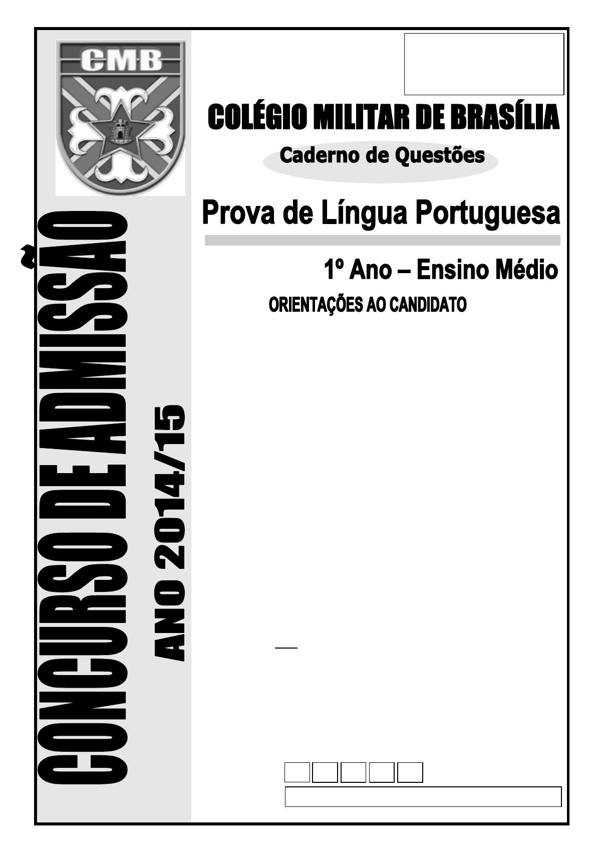 PROVA DE MATEMÁTICA REALIZAÇÃO: 18 Out 2010 111º ANO – ENSINO MMMÉÉÉDDDIIIOOO 1. A prova de Língua Portuguesa é constituída de UM CADERNO DE QUESTÕES, UM CARTÃO-RESPOSTA e UM CADERNO DE REDAÇÃO. 2. Este caderno de questões é constituído de 12 (doze) páginas, incluindo a capa. 3. O tempo de duração desta prova é de 03 (três) horas, incluído o tempo destinado à entrega da prova, orientações ao candidato e ao preenchimento do CARTÃO-RESPOSTA e DO CADERNO DE REDAÇÃO. 4. CONFIRA TODAS AS PÁGINAS do caderno. Qualquer falha de impressão ou falta de folhas deve ser comunicada ao fiscal, no prazo máximo de 15 (quinze) minutos após o início da prova. As devidas providências serão tomadas. 5. Escreva seu NÚMERO DE INSCRIÇÃO e seu NOME COMPLETO, EM LETRA DE FORMA, na parte inferior desta página. 6. Esta Prova de Língua Portuguesa é composta de 20 (vinte) questões de Múltipla-Escolha, contendo 5 (cinco) opções de resposta cada, que no total correspondem à nota 7,0 (sete); e uma Produção Textual, que corresponde à nota 3,0 (três). 7. O fiscal avisará quando faltarem 30 (trinta) e 10 (dez) minutos para o término da prova. 8. Concluindo a prova, antes do tempo estabelecido, reveja suas respostas e transcreva-as para o CARTÃO-RESPOSTA e para o CADERNO DE REDAÇÃO. 9. Quando o fiscal avisar que o tempo da prova terminou, nada mais escreva e o aguarde para recolher seu CARTÃO-RESPOSTA e o CADERNO DE REDAÇÃO. 10. O candidato somente poderá sair do local de aplicação após transcorridos 45 minutos do início da prova. O CADERNO DE QUESTÕES NÃO poderá ser levado pelo candidato que sair antes das 11h30min. 11. Somente SERÃO CORRIGIDAS AS SOLUÇÕES CONSTANTES no CARTÃO-RESPOSTA e no CADERNO DE REDAÇÃO. 12. LEIA atentamente as orientações que constam no CADERNO DE REDAÇÃO. 13. Utilizar somente caneta esferográfica de tinta AZUL ou PRETA para a marcação das questões no CARTÃO-RESPOSTA. BOA PROVA! Nº de inscrição: Nome: ____________________________________ Denison – Cel Comandante e Diretor de Ensino (PROVA DE LÍNGUA PORTUGUESA DO CONCURSO DE ADMISSÃO AO 1º ANO CMB 2014 / 2015) Página 3 MÚLTIPLA-ESCOLHA (Marque com um “X” a única opção que atende ao que é solicitado em cada questão). TEXTO 1 Diversidade cultural traz qualidade ao ensino O respeito à diversidade cultural do Brasil e as políticas de Estado para agregar as diferenças da sociedade brasileira, como a educação inclusiva, podem aumentar a qualidade do ensino no País. “Nós perdemos muito com a supremacia do conhecimento erudito, pois a cultura popular da vivência das minorias é, muitas vezes, mais útil e rica”, disse o secretário especial de Direitos Humanos, Perly Cipriano, durante a mesa-redonda A Educação em Direitos Humanos numa Perspectiva de Estado. A discussão fez parte do seminário Diferentes Diferenças, promovido pela Secretaria de Educação Continuada, Alfabetização e Diversidade (Secad/MEC). Cipriano apresentou uma perspectiva histórica do uso das diferenças como justificativa à opressão das minorias. “Os índios e os negros foram colonizados sob a justificativa de que eram primitivos se comparados ao povo europeu. Entretanto, eles respeitavam suas mulheres”, destacou. Cipriano ressaltou, também, a necessidade do reconhecimento das diferenças para que exista uma contribuição educacional das diversas camadas da sociedade. Ana Maria Roudino, presidente do Instituto Interamericano de Direitos Humanos, destacou a educação como um mecanismo preventivo às violações dos direitos humanos. “O indivíduo que teve acesso à educação tem mais condições de reconhecer seus direitos e os direitos alheios”, afirmou. Ana Maria ressaltou o desafio futuro de se construírem sociedades onde a dignidade humana não seja atropelada. O titular da Secad, Ricardo Henriques, explicitou as dificuldades encontradas para integrar a diversidade na educação. “Não se trata de colocar os direitos humanos como uma matéria a mais no currículo escolar e, sim, de promover uma radical mudança cultural”, explicou. Fonte: Portal MEC, http://www.historianet.com.br/conteudo/default.aspx?codigo=885–acesso em 08 ago 2014. Com adaptação. QUESTÃO 01 – A leitura do texto 1 permite afirmar que A ( ) a qualidade do ensino brasileiro está condicionada à educação inclusiva, como único mecanismo de integração cultural. B ( ) a aceitação da cultura popular é uma forma de respeito à diversidade cultural brasileira e valoriza conhecimentos das minorias. C ( ) embora a qualidade do ensino deva ser orientada pelo conhecimento erudito, há necessidade de se reconhecer o valor da cultura popular. D ( ) o reconhecimento da diversidade cultural como fator de aumento da qualidade na educação advém da época da colonização. E ( ) somente o indivíduo que teve acesso à educação reconhece os seus direitos, bem como os direitos dos demais cidadãos brasileiros. QUESTÃO 02 – O texto em questão A ( ) aborda a ideia de que a educação é base de uma mudança cultural. B ( ) discute pontos de vista antagônicos sobre as diferenças étnicas, com ênfase na educação. 1 5 10 15 20 25 http://www.historianet.com.br/conteudo/default.aspx?codigo=885 (PROVA DE LÍNGUA PORTUGUESA DO CONCURSO DE ADMISSÃO AO 1º ANO CMB 2014 / 2015) Página 4 C ( ) expõe uma opinião sobre a diversidade no Brasil, sem argumentações que a defendam. D ( ) ressalta estudiosos que apresentam, entre si, opiniões contraditórias sobre a diversidade cultural. E ( ) trata a questão da diversidade cultural com imparcialidade, expondo seus aspectos positivos e negativos. QUESTÃO 03 – Observe os fragmentos retirados do texto 1: I. “O respeito à diversidade cultural do Brasil...” (linha 1) II. “...da vivência das minorias...” (linhas 4 e 5) III. “...uso das diferenças como justificativa...” (linhas 10 e 11) IV. “...como justificativa à op
