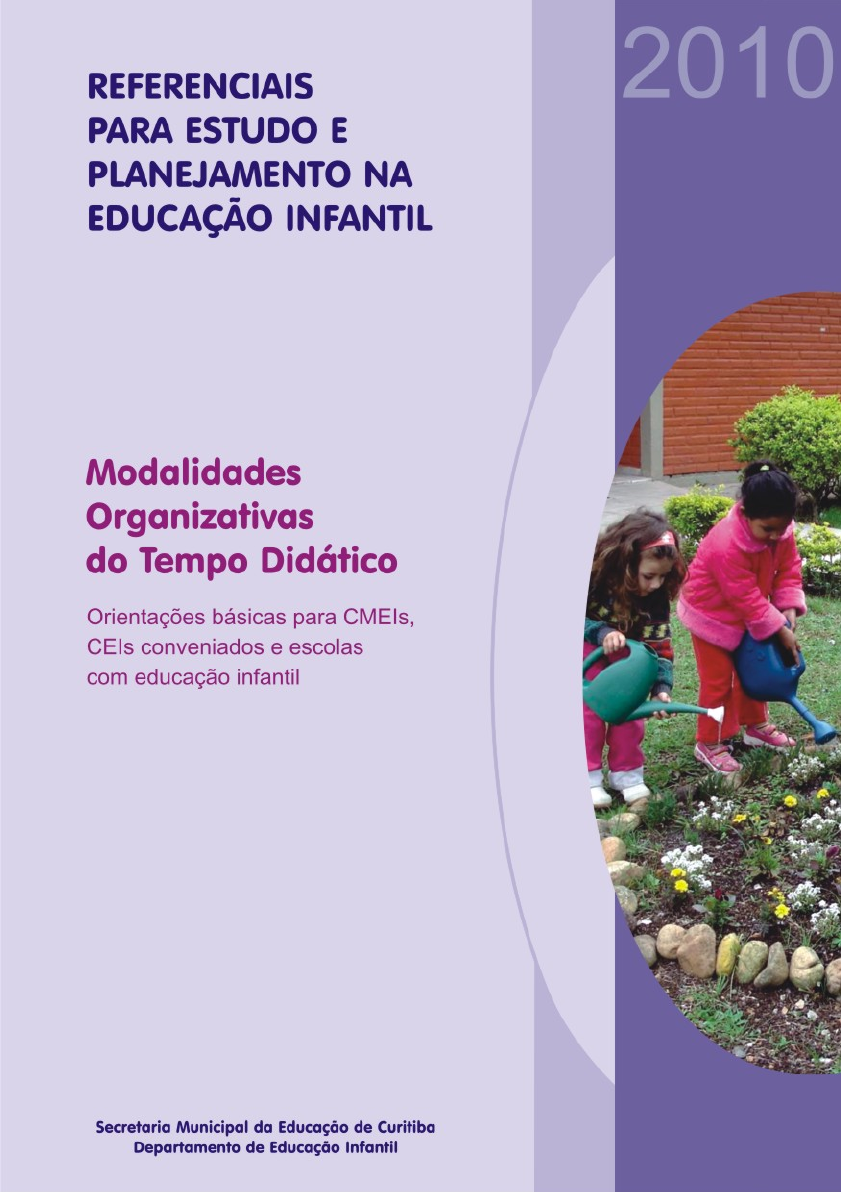 PREFEITURA MUNICIPAL DE CURITIBA Luciano Ducci SECRETARIA MUNICIPAL DA EDUCAÇÃO Eleonora Bonato Fruet SUPERINTENDÊNCIA EXECUTIVA Jorge Eduardo Wekerlin DEPARTAMENTO DE LOGÍSTICA Cilos Roberto Vargas DEPARTAMENTO DE PLANEJAMENTO E INFORMAÇÕES Reginaldo Luiz dos Santos Cordeiro SUPERINTENDÊNCIA DE GESTÃO EDUCACIONAL Meroujy Giacomassi Cavet DEPARTAMENTO DE EDUCAÇÃO INFANTIL Ida Regina Moro Milléo de Mendonça DEPARTAMENTO DE ENSINO FUNDAMENTAL Nara Luz Chierighini Salamunes DEPARTAMENTO DE TECNOLOGIA E DIFUSÃO EDUCACIONAL Raquel Rodrigues de Lima Simas COORDENADORIA TÉCNICA – ESTRUTURA E FUNCIONAMENTO DE ENSINO Eliane de Souza Cubas Zaions COORDENADORIA DE ATENDIMENTO ÀS NECESSIDADES ESPECIAIS Iaskara Maria Abrão COORDENADORIA DO PROGRAMA COMUNIDADE ESCOLA Liliane Casagrande Sabbag A P R E S E N T A Ç Ã O Prezados Profissionais, A educação infantil na Rede Municipal de Ensino tem como finalidade o desenvolvimento integral das crianças na faixa etária de zero a cinco anos, numa ação compartilhada com as famílias, com o compromisso de envolver a comunidade educativa em discussões e decisões sobre a qualidade das ações de educar e cuidar nessa etapa educacional. Um grande desafio é o desenvolvimento de ações educativas voltadas à construção e à ampliação do conhecimento e das experiências culturais das crianças. A possibilidade de estudo e reflexão sobre a prática, o planejamento, o registro e a avaliação do processo educativo na dinâmica de formação continuada em serviço dos profissionais faz a diferença nos resultados das aprendizagens e do desenvolvimento das crianças. Nesse sentido, este material, como um dos Referenciais para Estudo e Planejamento na Educação Infantil, tem por objetivo subsidiar de forma permanente as reflexões e a elaboração do planejamento pedagógico dos profissionais de CMEIs, CEIs conveniados e escolas com turmas de educação infantil da Rede Municipal de Ensino. Desse modo, espera-se que a execução do planejamento pedagógico proporcione às crianças a vivência de experiências ricas e diversificadas e, sobretudo, a construção significativa de novas aprendizagens, potencializando suas condições de interação e comunicação com as pessoas e o mundo em que vivem. Um bom trabalho a todos. Eleonora Bonato Fruet Secretária da Educação INTRODUÇÃO.................................................................................07 MAS O QUE É MODALIDADE ORGANIZATIVA DO TEMPO DIDÁTICO E QUAIS SÃO ELAS? ...........................................08 ATIVIDADES PERMANENTES....................................................09 SUGESTÕES DE PLANEJAMENTO DE ATIVIDADES PER- MANENTES.........................................................................11 SEQUÊNCIA DIDÁTICA ...............................................................13 SUGESTÕES DE PLANEJAMENTO DE SEQUÊNCIAS DI- DÁTICAS.............................................................................13 PROJETO DIDÁTICO...................................................................17 SUGESTÕES DE PLANEJAMENTO DE PROJETOS DIDÁ- TICOS.................................................................................18 ATIVIDADES OCASIONAIS.........................................................20 REFERÊNCIAS...............................................................................21 FICHA TÉCNICA.............................................................................23 S U M Á R IO 07 INTRODUÇÃO Este texto tem a intenção de contribuir com as discussões, reflexões e orientações acerca da organização do trabalho pedagógico nas turmas de educação infantil de CMEIs, escolas com educação infantil e CEIs conveniados da Rede Municipal de Ensino de Curitiba, através da abordagem das modalidades organizativas do tempo didático. A utilização e a articulação das diferentes modalidades organizativas do tempo didático no planejamento do trabalho educativo elaborado pelo educador/professor dão um caráter de comprometimento e intencionalidade a esse trabalho e devem estar contempladas no dia a dia das unidades, com o intuito de buscar a melhor estratégia para alcançar determinado objetivo de aprendizagem. Essas reflexões consideram que as ações de educação e cuidado precisam estar integradas de modo que a aprendizagem e o desenvolvimento das crianças sejam potencializados com propostas desafiadoras e interessantes, adequadas a diferentes tempos, relacionados a diferentes aprendizagens. Portanto, a dimensão do tempo no cotidiano infantil se estrutura com as situações planejadas de rotina, que envolvem as ações educativas de cuidado e demais ações educativas que visam desenvolver aprendizagens específicas, considerando as diferentes áreas de formação humana. 08 MAS O QUE É MODALIDADE ORGANIZATIVA DO TEMPO DIDÁTICO E QUAIS SÃO ELAS? Modalidade organizativa do tempo didático é a denominação atribuída às diferentes formas de planejar, encaminhar e organizar o trabalho pedagógico, considerando os objetivos de aprendizagens selecionados para um determinado período de tempo, em cada uma das áreas de formação humana. Dessa forma, viabiliza a distribuição do tempo e a continuidade de cada proposta de trabalho, abrangendo várias experiências de aprendizagens. Na elaboração do planejamento, é importante a definição do momento do dia em que cada modalidade organizativa do tempo didático será desenvol- vida e a forma como será apresentada às crianças. Nas turmas de educação infantil da Rede Municipal de Ensino de Curitiba, estas modalidades organizativas consistem em: atividades permanentes, sequências didáticas, projetos didáticos e atividades ocasionais. Embora cada uma delas tenha um propósito e especificidade de encaminhamento, elas não se excluem, ou seja, uma atividade permanente pode ser uma etapa da sequência didática, ou uma das etapas de um projeto pode ser con
