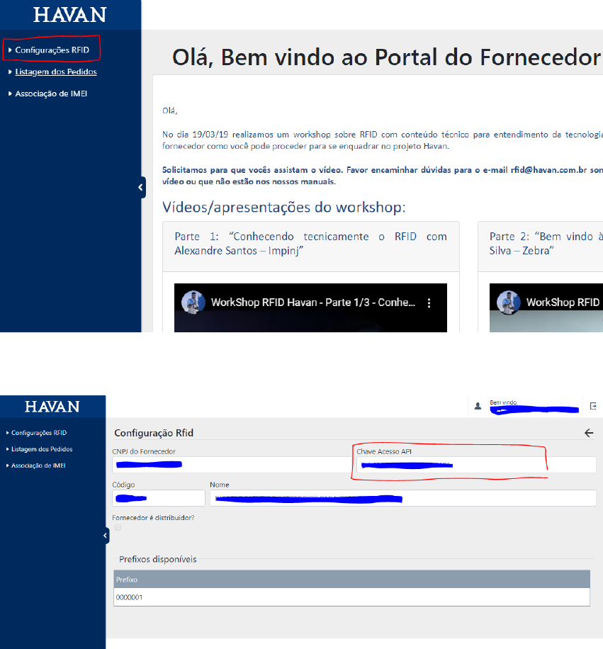 Manual de Utilização da API Chave de acesso. A chave de acesso única do fornecedor (necessária para qualquer transição entre nossas API’s), é liberada após a conclusão do cadastro RFID da Empresa. Caso esteja com o cadastro incompleto é necessário seguir o passo a passo disponível na tela inicial do Portal RFID para adequação. Após o cadastro ser concluído, a chave pode ser consultada em “Configurações RFID” localizado no menu principal do portal. Geração de EPC’s associados. Gera códigos EPC’s já associados. Url da EndPoint de acesso: https://cliente.havan.com.br/PortalRfid/Api/GerarEpc/ Envio para API Para o Envio será necessário um JSON no seguinte Formato: Em relação aos Campos: Chave de Acesso: o Tipo: “String”; o Detalhe: Chave de Acesso única do Fornecedor. Pode ser consultada no Portal RFID na opção “Configurações Rfid” do Menu; BarCode: o Tipo: “String”; o Detalhe: Código de barras do Produto a ser gerado o EPC; Imei: o Tipo: “String”; o Detalhe: Número do Imei do produto; Será feita verificação se o Número do Imei já existe no Nosso cadastro; https://cliente.havan.com.br/PortalRfid/Api/GerarEpc/ Retorno da API O retorno da API será um JSON no seguinte formato: Em relação aos Campos: EpcHexa: o Tipo: “String”; o Detalhe: EPC serializado do produto em base Hexadecimal; Pode vir nulo se ocorrer algum erro na geração (Sucesso = false , Mensagem = Descrição do Erro) Sucesso: o Tipo: “Boolean”; o Detalhe: Flag de Sucesso ou não da operação. Verificar antes de manipular o valor “EpcHexa”; Mensagem: o Tipo: “String”; o Detalhe: Mensagem de Retorno do servidor (sucesso ou descrição do erro) Consultar Epc Consulta os EPC’s com base no código de barras e IMEI ou Epc Hexadecimal. Url da EndPoint de acesso: https://cliente.havan.com.br/PortalRfid/Api/BuscarEpc/ Envio para API: Para o Envio será necessário um JSON no seguinte Formato: Ou Em relação aos Campos: Chave de Acesso: o Tipo: “String”; o Detalhe: Chave de Acesso única do Fornecedor. Pode ser consultada no Portal RFID na opção “Configurações Rfid” do Menu; BarCode: o Tipo: “String”; o Detalhe: Código de barras do Produto; Imei: o Tipo: “String”; o Detalhe: Número do Imei do produto; EpcHexa: o Tipo: “String”; o Detalhe: Código EPC Hexadecimal gravado na Tag; https://cliente.havan.com.br/PortalRfid/Api/BuscarEpc/ Retorno da API: O retorno da API será um JSON no seguinte formato: Em relação aos Campos: Retorno: o Tipo: “Objeto” o Detalhe: Campo de retorno com as informações da Tag. Pode vir nulo. o Campos: BarCode: Tipo: “String”; Detalhe: Código de barras do Produto; EpcHexa: Tipo: “String”; Detalhe: EPC serializado do produto em base Hexadecimal; Imei: Tipo: “String”; Detalhe: Número do Imei do produto; Sucesso: o Tipo: “Boolean”; o Detalhe: Flag de Sucesso ou não da operação. Verificar antes de manipular o valor “Retorno”; Mensagem: o Tipo: “String”; o Detalhe: Mensagem de Retorno do servidor (sucesso ou descrição do erro) Deletar associação do EPC Deletar associação do número de sério com um produto. Url da EndPoint de acesso: https://cliente.havan.com.br/PortalRfid/Api/DeletarAssociacaoEpc/ Envio para API: Para o Envio será necessário um JSON no seguinte Formato: Em relação aos Campos: Chave de Acesso: o Tipo: “String”; o Detalhe: Chave de Acesso única do Fornecedor. Pode ser consultada no Portal RFID na opção “Configurações Rfid” do Menu; BarCode: o Tipo: “String”; o Detalhe: Código de barras do Produto a ser gerado o EPC; Imei: o Tipo: “String”; o Detalhe: Número do Imei do produto; https://cliente.havan.com.br/PortalRfid/Api/DeletarAssociacaoEpc/ Retorno da API: O retorno da API será um JSON no seguinte formato: Em relação aos Campos: Retorno: o Tipo: “Boolean” o Detalhe: Retorno da Operação. Pode vir nulo. Sucesso: o Tipo: “Boolean”; o Detalhe: Flag de Sucesso ou não da operação. Verificar antes de manipular o valor “Retorno”; Mensagem: o Tipo: “String”; o Detalhe: Mensagem de Retorno do servidor (sucesso ou descrição do erro)