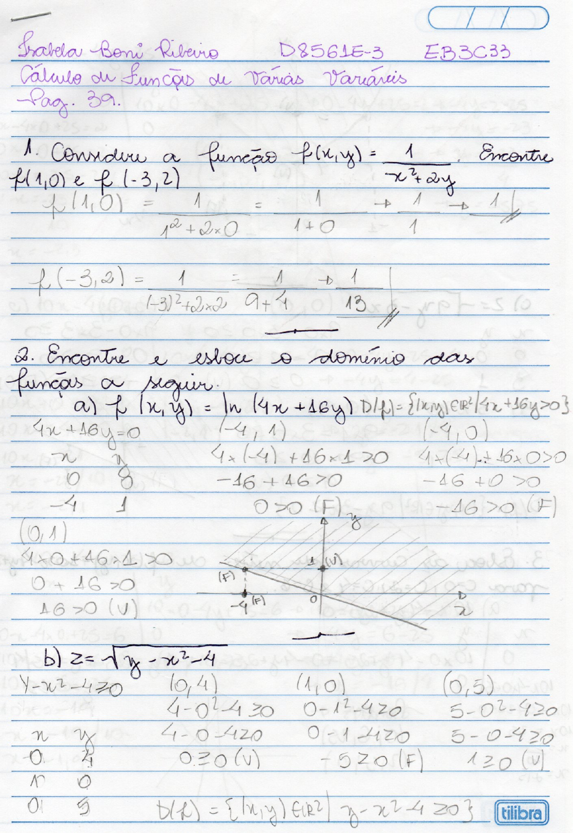 Tarefa Unidade 3 e Exercício Proposto 4 - Cálculo de Funções de Várias Variáveis