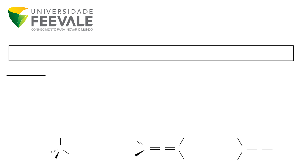 Nome: INSTRUÇÕES: Atenha-se ao espaço disponível para as respostas. Não serão aceitas folhas anexas. Use o espaço no final da prova, caso necessário. Questões de assinalar devem ser marcadas à caneta e sem rasuras. Caso rasurar, pergunte ao professor como proceder. (01) (12 pontos) Para as moléculas abaixo, diga se são polares ou apolares e justifique utilizando os vetores de polarização. (A) C H Br Br Br (B) C C C H H H H (C) C C O H H (02) (04 Pontos) Assinale a opção na qual as duas substâncias são polares: (A) O2 e CCl4 (B) HCl e N2 (C) H2O e NaCl (D) CH4 e Cl2 (E) CO2 e HF (03) (10 Pontos) Analise as seguintes afirmações: I. A molécula CO2 é apolar, sendo formada por ligações covalentes polares. II. A molécula de H2O é polar, sendo formada por ligações covalentes polares. III. A molécula NH3 é polar, sendo formada por ligações iônicas. Conclui-se que: (A) somente I é correta (D) somente I e II são corretas (B) somente II é correta (E) somente I e III são corretas (C) somente III é correta (04) (10 Pontos) O aumento da diferença de eletronegatividade entre os elementos ocasiona a seguinte ordem no caráter das ligações: (A) covalente polar, covalente polar, iônica. (D) covalente apolar, iônica, covalente polar. (B) covalente apolar, covalente polar, iônica. (E) iônica, covalente polar, covalente apolar. (C) iônica, covalente apolar, covalente polar. (05) (08 Pontos) Considere os átomos X, Y e Z, todos no terceiro período da tabela periódica. X é um metal alcalino, Y tem 5 elétrons na camada de valência e Z é um halogênio. Qual (ou quais) das ligações abaixo devem ser iônicas? Explique. (a) YZ (b) XZ (c) XY - QUÍMICA GERAL – FARMÁCIA e BIOLOGIA - - SEGUNDA AVALIAÇÃO- (06) (12 Pontos) Faça o que é solicitado para cada uma das estruturas abaixo, considerando somente o carbono indicado pela seta: CH3 C N C CH3 C CH3 CH3 N C C O H H Hibridização do C Geometria do C (07) (12 Pontos) Utilizando as eletronegatividades da tabela periódica classifique cada uma das ligações seguintes como sendo iônica ou covalente: a) CaO b) SiC c) ClO d) GaF e) RbCl f) HBr (08) (10 Pontos) Considerando as classificações das ligações químicas, faça a associação entre as duas colunas A - HCl ( ) Ligação metálica B - NaCl ( ) Ligação covalente apolar C - O C O ( ) Ligação covalente polar D - K ( ) Ligação iônica E - Cl2 ( ) Ligação “pi” (09) (05 Pontos) Um elemento X, cujo número atômico é 12, combina-se com um elemento Y, situado na família 16 da tabela periódica e resulta num composto cuja fórmula provável será: (A) X3Y2 (B) XY2 (C) X2Y (D) XY (E) X2Y3 (10) (05 Pontos) Um elemento X (Z = 20) forma com Y um composto de fórmula X3Y2. O número atômico de Y é: (A)9 (B) 7 (C) 11 (D) 12 (E) 18 (11) (12 Pontos) Esquematize as estruturas de Lewis para cada uma das seguintes moléculas: (a) CH3F (b) N2H4 (12) (08 Pontos) Explique, utilizando a teoria da hibridização, por que BeF2 é apolar e OF2 é polar. BOA PROVA