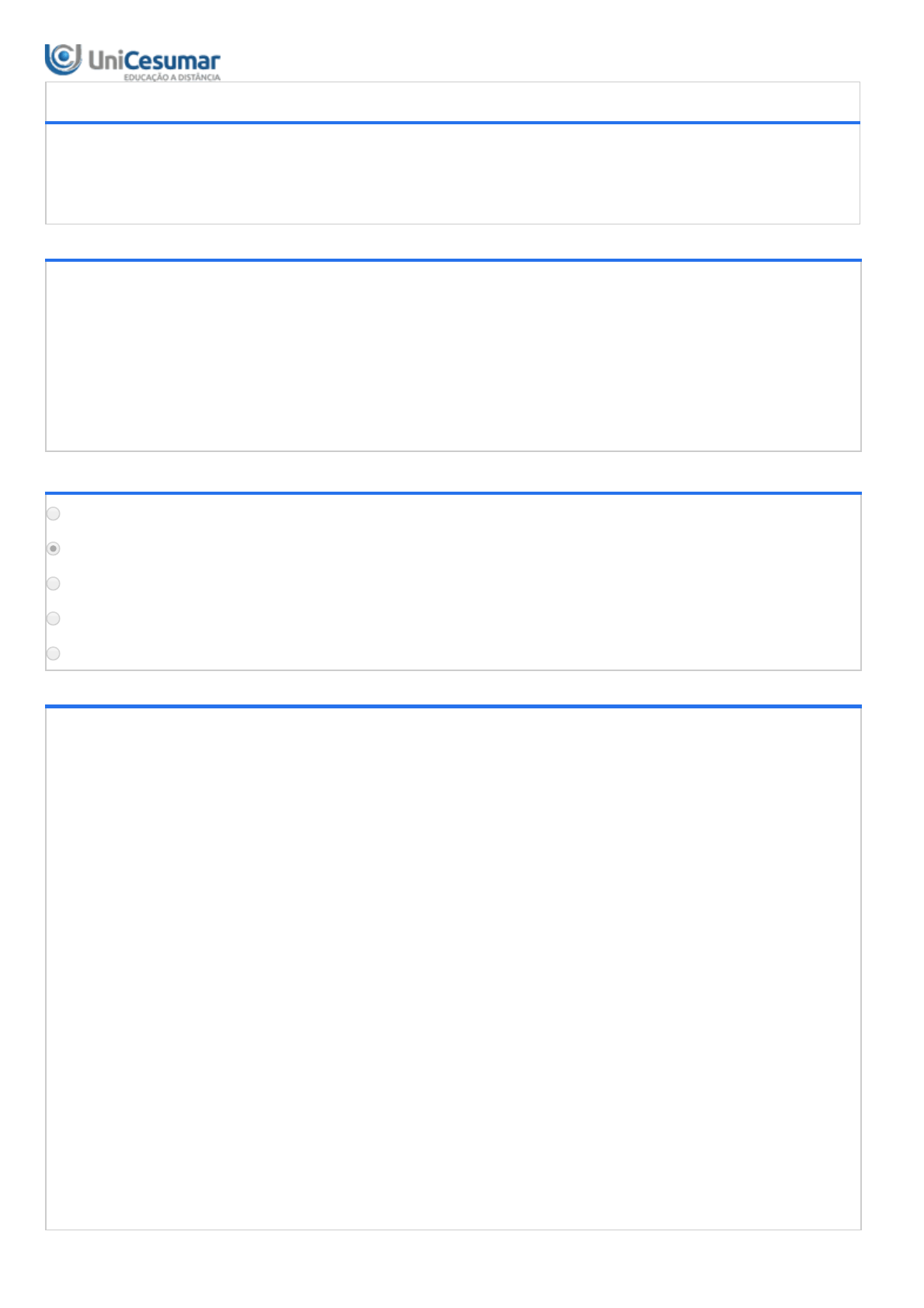 14/05/2020 Unicesumar - Ensino a Distância 1/7 ATIVIDADE 3 - GPUB - ADMINISTRAÇÃO VOLTADA À GESTÃO PÚBLICA - 2020A1 Período:24/02/2020 08:00 a 13/03/2020 23:59 (Horário de Brasília) Status:ENCERRADO Nota máxima:0,50 Gabarito:Gabarito será liberado no dia 14/03/2020 00:00 (Horário de Brasília) Nota obtida:0,45 1ª QUESTÃO A arrecadação de recursos da Administração Pública, bem como a despesa pública, devem ser fortemente controladas. A Receita Pública pode ser obtida também pelos contribuintes, sob coerção, por meio de impostos e taxas. Já a Despesa Pública, tem por objetivo manter o funcionamento dos serviços públicos. A participação do Governo na economia pode ser decomposta e abrange funções distintas e básicas. STRUETT, Mirian Aparecida Micarelli. Administração Voltada à Gestão Pública. Maringá: Unicesumar, 2018. Analise as alternativas a seguir e assinale aquela que corresponda às funções que foram estudadas. ALTERNATIVAS Função Coercitiva, Função Alocativa e Função Distributiva. Função Alocativa, Função Distributiva e Função Estabilizadora. Função Estabilizadora, Função Alocativa e Função Coercitiva. Função Coercitiva, Função Regulatória e Função Distributiva. Função Coercitiva, Função Alocativa e Função Regulatória. 2ª QUESTÃO O Controle dos gastos públicos se orienta pelo uso de diversos princípios Constitucionais. Por meio destes princípios podem ser identificadas formas de controle, os quais devem ser utilizados pelos órgãos encarregados da fiscalização dos gastos públicos. STRUETT, Mirian Aparecida Micarelli. Administração Voltada à Gestão Pública. Maringá-Pr. Unicesumar, 2018. Considerando esses princípios, leia as afirmações a seguir. I. Pelo princípio da legalidade, há um controle da adequação das despesas e dos procedimentos, visando evitar qualquer tipo de irregularidade. Da mesma forma, o princípio da universalidade garante que todos os gestores públicos estão submetidos ao controle, independente do nível hierárquico bem como isso será realizado em todo o patrimônio público, garantido pelo princípio da totalidade. II. A imparcialidade impede que as ações dos gestores públicos sejam implementadas sem a intromissão política no desenvolvimento das atividades. Da mesma forma, os atos administrativos serão revestidos de moralidade, ou seja, na mesma linha de importância da impessoalidade. III. A economicidade é um princípio muito importante a ser utilizado pelos gestores públicos porque compreende o menor custo no atendimento dos serviços prestados a sociedade. IV. A autonomia e independência representam princípios que garantem o exercício das atividades administrativas bem como a independência dos gestores públicos em relação a todos os agentes políticos ou servidores públicos. É correto o que se afirma em: 14/05/2020 Unicesumar - Ensino a Distância 2/7 ALTERNATIVAS I, apenas. I e II, apenas. II e III, apenas. I e III, apenas. I, II, III e IV. 3ª QUESTÃO O termo governança tem sido muito difundido, muitas vezes da maneira errada. Se fizermos uma busca rápida, entenderemos que o significado de governança é a maneira pela qual o poder é exercido na administração dos recursos sociais e econômicos de um país, visando o desenvolvimento e a capacidade dos governos de planejar, formular e programar políticas e cumprir funções. Elaborado pelo professor, 2018. Sobre governança, destacamos os impulsionadores do movimento de Governança Pública. I - A primeira força é a incapacidade do estado em lidar com os problemas coletivos gerando desconfiança na habilidade estatal, o que muitas vezes é denunciada pelas organizações estatais versus as organizações não governamentais (ONGS). II - A segunda, considerada a força motriz, é a crescente complexidade, dinamicidade e diversidade de nossas sociedades que colocam que “governança é necessária”. III - A terceira força motriz é a Administração Pública Gerencial, focando maior atenção ao desempenho e controle social e à definição de políticas públicas. É correto o que se afirma em: ALTERNATIVAS I, apenas. II, apenas. III, apenas. I e II, apenas. II e III, apenas. 4ª QUESTÃO 14/05/2020 Unicesumar - Ensino a Distância 3/7 O processo de redemocratização no Brasil pós-ditatura militar teve como símbolo a promulgação da Constituição Federal de 1988, a chamada Constituição Cidadã. Dentro das novas preposições, destacam-se a incorporação de mecanismos participativos dos cidadãos nas decisões políticas. Essa ideia também foi incorporada à Administração Pública, a qual passa de administração tradicional para a participativa, tendo como exemplo da inserção dos cidadãos por meio dos orçamentos participativos. STRUETT, M. A. M. Administração Voltada à Gestão Pública. Maringá: Unicesumar, 2019. Diante dessa importante transição, assinale a alternativa que descreve corretamente as diferenças entre a administração pública tradicional e a participativa. ALTERNATIVAS Na administração pública tradicional, as prioridades do governo são decididas de maneira descentralizada sem a participação popular. Com a democratização, na administração pública participativa, a base de sustentação democrática do governo é a cidadania, que se resume unicamente ao voto dos cidadãos. Apesar das diferenças, o processo decisório tanto na administração pública tradicional quanto na participativa possui a mesma característica de ser tecnocrata, quando os técnicos tomam as decisões. A melhor forma de resolver conflitos na administração pública participativa é através da barganha no momento em que os cidadãos estão participando das tomadas de decisões. Sendo assim, por meio da barganha, os interesses privados predominam, e isso ajuda na decisão sobre a melhor política. Uma das principais mudanças da administração pública participativa 