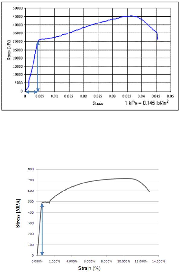 Exercícios de Revisão 1. Identifique os valores do LE, LR, t e E. a) Resposta: LE= 31000 kPa = 31 MPa; LR = 45 MPa; t=0,045 (4,5%); E = 31000/0,004 = 7750 kPa b) Resposta: LE = 490 MPa; LR = 710 MPa, t = 13%; E = 490/0,005 = 98000MPa = 98 GPa c) Por que há um serrilhado na curva anterior a 500 MPa? Devido a presença de carbono intersticial associado às discordância; atmosfera de Cottrell 2. Aço 1040 com diferentes tratamentos a) O que são as linhas cheias e pontilhadas? Tensões/ deformações de engenharia e reais, respectivamente b) Qual o mais resistente? Quenched (temperado) c) Qual o mais dúctil? Annealed (recozido) d) Por que amolece com maiores temperaturas de tratamento “tempering” (revenimento)? Agulhas de martensita sofrem arredondamento e ficam menos duras e) Por que amolece muito no recozimento (annealed)? Devido provavelmente à recirstalização, que limpa a estrutura e cria novos grãos 3. Quais os materiais onde vc espera fratura dúctil ou frágil? 4. Explique o que acontece na propagação de uma trinca em metais e cerâmicas e comente em relação à fragilidade de cada um. max = nom.[1+2.(a/)1/2] Metal: ocorre deformação plástica na ponta da trinca que pode arredondar a trinca; raio da trinca aumenta e então a conc. tensões é menor Cerâmica: não ocorre def. plástica e então a trinca propaga 5. Indique as temperaturas de transição dúctil-frágil no aço resultado do ensaios de impacto Charpy: a) 0,1%C: -50°C b) 0,3%C: 20°C c) 0,5 % C: 75°C d) Por que a transição de eleva para maior %C? O material se torna mais frágil com o aumento do %C devido ao endurecimento por solução sólida e tb pela maior quantidade de cementita (Fe3C) 6. Caracterize as fraturas obtidas no ensaio de impacto Charpy e estime a transição dúctil-frágil. 45°C 7. Supondo um componente de aço maraging (trem de pouso) com defeitos máximos da ordem de 1 mm e K1C = 50 MPa.m1/2, limite de escoamento 2400 MPa e tensão de projeto 1200 MPa (coeficiente de segurança 2). Estime a tensão crítica para fratura. O material é adequado para a aplicação? Na fratura: K1C = Kc = 50 = 1..(.a)1/2 = 50 / (.0,0005)1/2 = 1261 MPa crítico; abaixo disso não ocorre fratura pela intensificação de tensões Kc O material é adequado 8. medidas de dureza foram obtidas: Calcule a tenacidade à fratura K1C em cada caso P = carga em kg; 4l = (C1-D1)+ (C2-D2) em mm; HV dureza medida. K1C= 0,0028.(920,4*9,8*49/(C2+C1-D2-D1))1/2 = 6,3 MPa.m1/2 9. Análise de superfície de fratura em microscópio eletrônico de 4 amostas: quais são dúcteis e frágeis? Por que? Fratura dúctil tem dimples! 9. caracterize as fraturas e morfologias: Frágil, clivagem (marcas de rio) dúctil (pescoço, taça-cone frágil (reta granulada) Resposta: a) frágil clivagem b) dúctil dimple Alta ou baixa carga? Onde começa e termina? Característica morfológica para identificar Começa chaveta carga alta começa direita: olhar oxidação Todas: Fadiga baixa