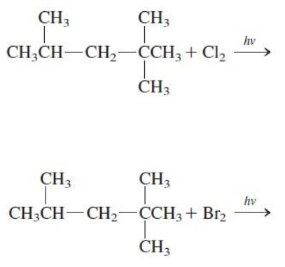 Lista de exercícios – Reações Radicalares 1. Escreva o produto majoritário das seguintes reações: a) b) 2. A reação de radical do propano com o cloro produz (além de propanos altamente halogenados) o 1-cloropropano e o 2-cloropropano. Escreva as etapas de iniciação e propagação da cadeia mostrando como cada composto é formado. 3. Além de produtos altamente clorados, a cloração do butano leva a uma mistura de compostos com fórmula C4H9Cl. Levando em conta a estereoquímica, quantos isômeros diferentes, com fórmula C4H9Cl, seriam esperados? Desenhe as estruturas, indicando a estereoquímica quando necessário.