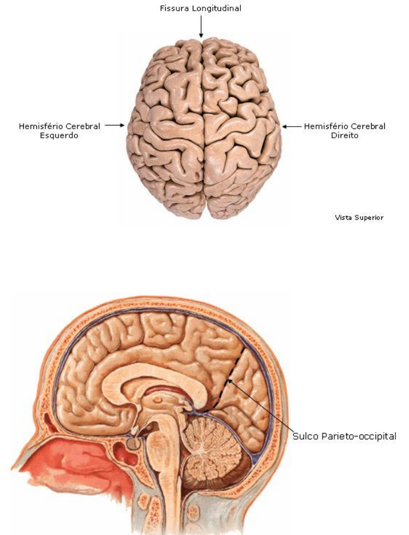 Telencéfalo – Material de apoio – Anatomia e Fisiologia III O Telencéfalo representa praticamente a maior porção do encéfalo, incluindo o diencéfalo. Tal estrutura é formada por dois hemisférios, esquerdo e direito. Porém os hemisférios estão incopletamente separados pela fissura longitudinal e pelo corpo caloso que liga um ao outro através de 20 milhões de fibras nervosas. É constituído por dois tipos de substâncias a branca e a cinzenta. A substância cinzenta se subdivide entre interna, onde ficam os núcleos basais e em externa onde fica a córtex, que é a área funcional. Orientação no telencéfalo: Vista superior. Corte sagital Polos Os lobos cerebrais. Os giros e sulcos ajudam a dividir a córtex entre quatro a seis pares de lobos conforme o sistema de anatomia utilizado. O sulco principal e mais profundo é a fissura longitudinal que separa os hemisférios cerebrais. Tanto a amplitude como o nome dos lobos também são partes relacionados ao nome dos ossos sob as quais se situam, conhecidos como neurocrânio. Por exemplo, os dois lobos frontais estão aproximadamente abaixo do osso frontal, e da mesma forma, os lobos occipitais sob o osso occiptal. Em alguns sistemas de nomeação o lóbulo límbico e a insula, ou lobo central, são distintos dos outros lobos. LOBO FRONTAL LOBO TEMPORAL LOBO PARIETAL LOBO OCCIPTAL LOBO INSULAR Divisão em lobos: O córtex pode ser dividida em quatro áreas chamadas lobos (mostradas acima). Em algumas classificações, a parte anterior do lobo frontal é identificada separadamente como lobo pré-frontal, mas o termo córtex pré-frontal é em geral o mais aceito. Sulcos Relevantes Referências Bibliográficas: MORAES, Alberto Parahyba Quartim de - O Livro do cérebro. Vol 1. São Paulo. SP, Editora Duetto - 2009. Pag 66. MACHADO,A. Neuroanatomia Funcional, R.J. Atheneu,1986 FRANCO S. Norma – Descomplicando as praticas de laboratório de neuroanatomia – 2005 Imagens obtidas no site - Aula de anatomia: URL http://www.auladeanatomia.com/ Acessado em 2 de agosto de 2013.