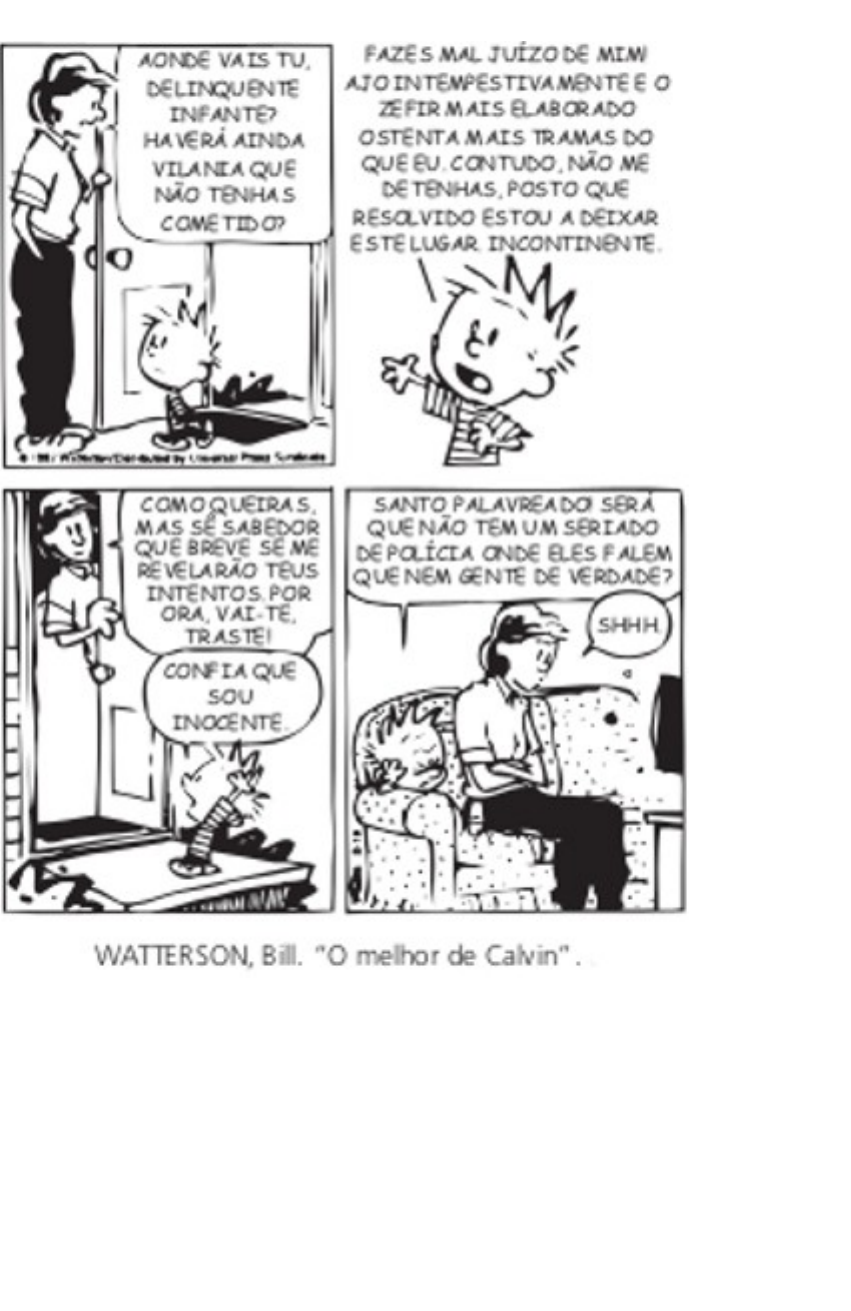 COERÊNCIA E COESÃO Observe a tirinha Calvin e Haroldo, de Bill Watterson, e responda à questão: Para cada situação interativa existe uma variedade de língua adequada. O falante pode optar pela variedade padrão ou pela variedade não padrão. Exercícios: EXERCÍCIOS DE COESÃO 1- Assinale a opção que preenche, de forma coesa e coerente, as lacunas do texto abaixo. O fenômeno da globalização econômica ocasionou uma série ampla e complexa de mudanças sociais no nível interno e externo da sociedade, afetando, em especial, o poder regulador do Estado. Não obstante a estonteante rapidez e abrangência com que tais mudanças ocorrem, é preciso considerar que em qualquer sociedade, em todos os tempos, a mudança existiu como algo inerente ao sistema social. (Adaptado de texto da Revista do TCU, nº82) a) Não obstante – com que b) Portanto – de que c) De maneira que – a que d) Porquanto – ao que e) Quando – de que R: a)Não obstante - com que 2- Marque a sequência que completa corretamente as lacunas para que o trecho a seguir seja coerente. A visão sistêmica exclui o diálogo, de resto necessário numa sociedade ________ forma de codificação das relações sociais encontrou no dinheiro uma linguagem universal. A validade dessa linguagem não precisa ser questionada, ________ o sistema funciona na base de imperativos automáticos que jamais foram objeto de discussão dos interessados. (Barbara Freytag, A Teoria Crítica Ontem e Hoje, pág. 61, com adaptações) ) em que – posto que b) onde – em que c) cuja – já que d) na qual – todavia e) já que - porque 3) Leia o texto a seguir e assinale a opção que dá sequência com coerência e coesão. Em nossos dias, a ética ressurge e se revigora em muitas áreas da sociedade industrial e pós-industrial. Ela procura novos caminhos para os cidadãos e as organizações, encarando construtivamente as inúmeras modificações que são verificadas no quadro referencial de valores. A dignidade do indivíduo passa a aferir-se pela relação deste com seus semelhantes, muito em especial com as organizações de que participa e com a própria sociedade em que está inserido. (José de Ávila Aguiar Coimbra – Fronteiras da Ética, São Paulo, Editora SENAC, 2002). a) A sociedade moderna, no entanto, proclamou sua independência em relação a esse pensamento religioso predominante. b) Mesmo hoje, nem sempre são muito claros os limites entre essa moral e a ética, pois vários pensadores partem de conceitos diferentes. c) Não é de estranhar, pois, que tanto a administração pública quanto a iniciativa privada estejam ocupando-se de problemas éticos e suas respectivas soluções. d) A ciência também produz a ignorância na medida em que as especializações caminham para fora dos grandes contextos reais, das realidades e suas respectivas soluções. e) Paradoxalmente, cada avanço dos conhecimentos científicos, unidirecionais produz mais desorientação e perplexidade na esfera das ações a implementar, para as quais se pressupõe acerto e segurança. 4)O capital humano é a grande âncora do desenvolvimento na Sociedade de Serviços, alimentada pelo conhecimento, pela informação e pela comunicação, que se configuram como peças-chave na economia e na sociedade do século XXI. _____________,no mundo pós-moderno, um país ou uma comunidade equivale à sua densidade e potencial educacional, cultural e científico-tecnológico, capazes de gerar serviços, informações, conhecimentos e bens tangíveis e intangíveis, que criem as condições necessárias para inovar, criar, inventar. (Aspásia Camargo, “Um novo paradigma de desenvolvimento”) a) Diante dessas considerações, b) É necessário considerar a ideia oposta de que, c) Partindo-se dessas premissas, d) Tendo como pressupostos essas afirmações, e) Aceitando-se essa premissa, é preciso considerar que, 4)Complete o texto abaixo, com as palavras destacadas, de forma a torná-lo coeso e coerente: A ansiedade costuma surgir quando se enfrenta uma situação desconhecida. Ela é benéfica se prepara a mente para desafios, como falar em público. mas,se provoca preocupação exagerada, tensão muscular, tremores, insônia, suor demasiado, taquicardia, medo de falar com estranhos ou de ser criticado em situações sociais, pode indicar uma ansiedade generalizada, que requer acompanhamento médico, ou até transtornos mais graves, como fobia, pânico ou obsessão compulsiva. Embora apenas 20% das vítimas de ansiedade busquem ajuda médica, o problema pode e deve ser tratado Mesmo que se procure um clínico-geral num primeiro momento, é importante a orientação de um psiquiatra, que prescreverá a medicação adequada. A terapia, em geral, é à base de antidepressivos. "Hoje existe uma geração mais moderna desses remédios", explica o psiquiatra Márcio Bernik, de São Paulo, coordenador do Ambulatório de Ansiedade, da Faculdade de Medicina da Universidade de São Paulo. "Além de mais eficazes, não provocam ganho de peso nem oscilação no desejo sexua1." Outra vantagem: não apresentam riscos ao paciente caso ele venha a ingerir uma dosagem muito alta. além de - quando - embora - mas - se - que - que - como - mesmo que - se – como 5) Reescreva os trechos fazendo a devida coesão. Utilize artigos, pronomes ou advérbios. Não se esqueça de que a elipse (omissão de um termo) também é um mecanismo de coesão. 1. A gravata do uniforme de Pedro está velha e surrada, enquanto a minha está novinha em folha. 2. Ontem fui conhecer o novo apartamento do Tiago, que comprou com o dinheiro recebido do jornal. 3. Perto da estação havia um pequeno restaurante, onde costumavam reunir-se os trabalhadores da ferrovia. 4. No quintal, as crianças brincavam. O prédio vizinho estava em construção. Os carros passavam buzinando. Tudo isso tiravam-me a concentração no trabalho que eu estava fazendo. 5. Os convidados chegaram atrasados, pois havia