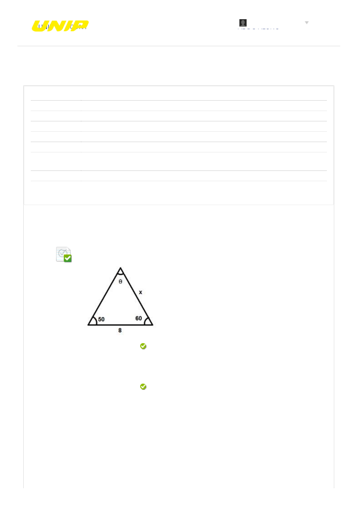 Comentário: utilizar o valor total do ângulo interno do triângulo para