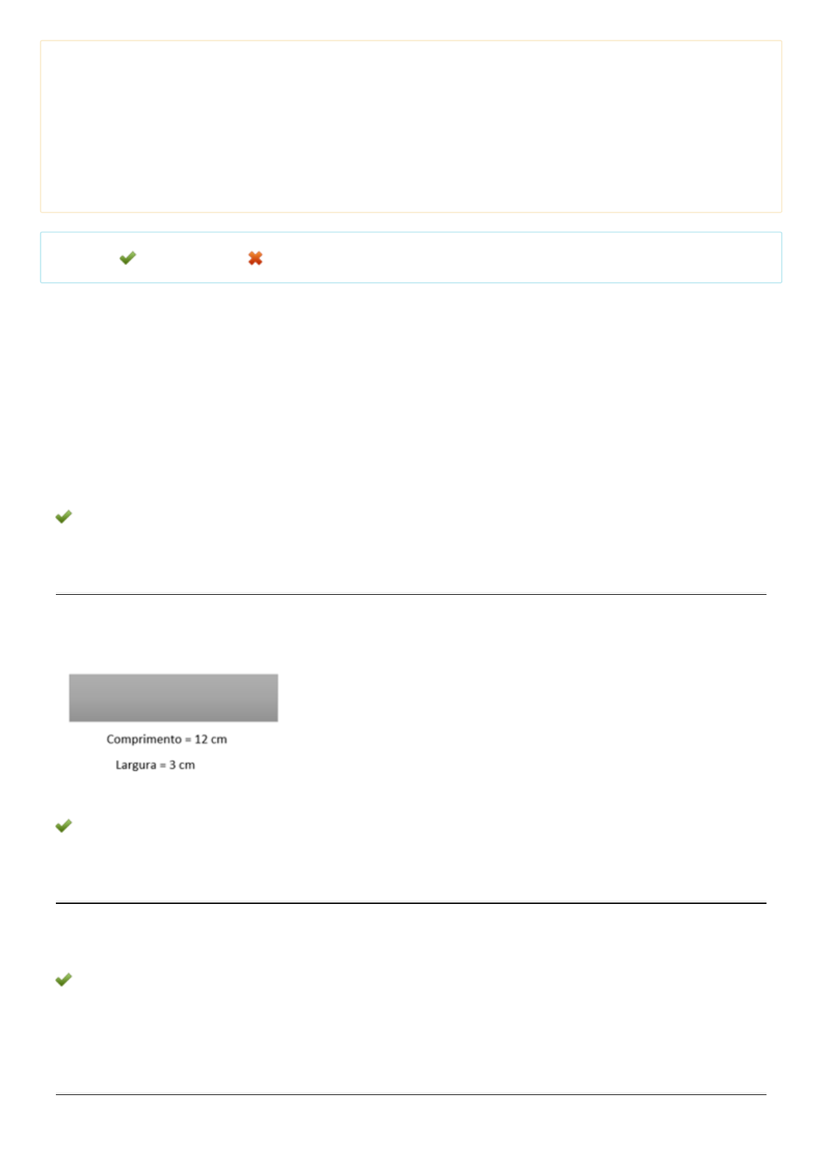 23/04/2020 UNIASSELVI - Centro Universitário Leonardo Da Vinci - Portal do Aluno - Portal do Aluno - Grupo UNIASSELVI https://portaldoalunoead.uniasselvi.com.br/ava/notas/request_gabarito_n2.php 1/3 Acadêmico: Francieli Regina Sicheski (1820021) Disciplina: Matemática (MAT10) Avaliação: Avaliação I - Individual FLEX ( Cod.:514065) ( peso.:1,50) Prova: 16468656 Nota da Prova: 10,00 Legenda: Resposta Certa Sua Resposta Errada 1. Expressões numéricas são sequências de operações envolvendo números, para resolvermos expressões numéricas é imprescindível seguir uma ordem de operações. Sobre a ordem correta das operações, ordene os itens a seguir: I- Multiplicação e Divisão. II- Adição e Subtração. III- Potenciação e Radiciação. Assinale a alternativa que apresenta a sequência CORRETA: a) III - II - I. b) II - I - III. c) III - I - II. d) I - II - III. Parabéns! Você acertou a questão: Parabéns! Você acertou! 2. Luiza precisa de uma placa retangular de madeira, ela desenhou a placa retangular em uma folha de papel numa escala de 1 cm para 60 cm. Qual é o comprimento e a largura em metros da placa de madeira se Luiza fez o seguinte desenho na folha de papel. a) C = 72 m e L = 18 m b) C = 720 m e L = 180 m c) C = 7,2 m e L = 1,8 m d) C = 72 cm e L = 18 cm Parabéns! Você acertou a questão: Parabéns! Você acertou! 3. Cleber e Jean são colegas de trabalho. O salário de Jean é de R$ 2.000,00 e Cleber ganha 20% a menos do que Jean. No próximo mês Cleber irá receber um aumento de 25%. Com base no exposto, assinale a alternativa CORRETA: a) O salário de Cleber vai ser igual ao de Jean. b) O salário de Cleber vai ser R$ 5,00 menor que o de Jean. c) O salário de Cleber vai ser R$ 15,00 menor que o de Jean. d) O salário de Cleber vai ser maior que o de Jean. Parabéns! Você acertou a questão: Parabéns! Você acertou! 23/04/2020 UNIASSELVI - Centro Universitário Leonardo Da Vinci - Portal do Aluno - Portal do Aluno - Grupo UNIASSELVI https://portaldoalunoead.uniasselvi.com.br/ava/notas/request_gabarito_n2.php 2/3 4. Expressões matemáticas são sequências de operações com uma ou mais operação. Para resolvê-las, devemos respeitar a ordem das operações. Lembrando dessa ordem que devemos respeitar, calcule a expressão numérica a seguir: a) 10 b) 15 c) 25 d) 20 Parabéns! Você acertou a questão: Parabéns! Você acertou! 5. A definição de radiciação segue diretamente da definição de potenciação. Sabendo que a operação de radiciação é a operação inversa da potenciação como: a) 6 b) 15 c) 5 d) 25 Parabéns! Você acertou a questão: Parabéns! Você acertou! 6. Porcentagem é um conceito muito presente no dia-a-dia das pessoas. Você certamente já viu estampado numa loja "Promoção 20% de desconto". Nem sempre a porcentagem aparece apresentada na forma como acima, com o símbolo %, ele pode aparecer na forma fracionária ou decimal. Considere o número decimal 0,32. Qual é a forma porcentual desse número? a) 0,32% b) 320% c) 32% d) 3,2% Parabéns! Você acertou a questão: Parabéns! Você acertou! 7. A operação de potenciação é a multiplicação de fatores iguais, representamos o produto 2x2x2 por 2³, o número 2 é chamado de base e o número 3 é chamado de potência. Já a radiciação é a operação inversa da potenciação, por exemplo a raiz cúbica do número 8 = 2³ é 2. Quando trabalhamos com essas duas operações, precisamos seguir algumas propriedades. Sobre essas propriedades, classifique V para as sentenças verdadeiras e F para as falsas: a) V - F - V - V. b) V - V - F - F. c) F - F - V - V. d) F - V - V - F. 8. Maria recebeu 144 chocolates de presente no Natal. Ela resolveu repartir esses chocolates com suas duas amigas Beatriz e Carla, para Beatriz, Maria resolveu dar três vezes a raiz quadrada do número de chocolates que ela tem e para Carla, Maria resolveu dar a terceira potência de 3 mais 9 chocolates. Com quantos chocolates Maria ficou? a) 72 chocolates. b) 36 chocolates. c) 130 chocolates. d) 108 chocolates. 23/04/2020 UNIASSELVI - Centro Universitário Leonardo Da Vinci - Portal do Aluno - Portal do Aluno - Grupo UNIASSELVI https://portaldoalunoead.uniasselvi.com.br/ava/notas/request_gabarito_n2.php 3/3 Parabéns! Você acertou a questão: Parabéns! Você acertou! 9. Uma equipe de pedreiros vai construir duas casas iguais. A construção da primeira casa levou 60 dias e a equipe trabalhou 8 horas por dia. Quando foram construir a segunda casa a equipe precisou assumir uma outra obra, para conseguir conciliar eles decidiram trabalhar 5 horas por dia na casa e o restante do dia na outra obra. Determine quanto tempo levará para terminar a construção da segunda casa. a) 37,5 dias. b) 72 dias. c) 96 dias. d) 80 dias. Parabéns! Você acertou a questão: Parabéns! Você acertou! 10. A história mostra que os números foram criados para suprir a necessidade que o homem tinha em contar. Segundo os estudiosos, a primeira forma de contar servia para marcar o tempo, séculos depois surgiu a necessidade de contar os animais e com a evolução humana os números tiveram seu avanço até serem organizados em conjuntos e fazer operações. Sobre o exposto, analise as sentenças a seguir: I- A divisão de dois números irracionais é sempre um número irracional. II- A soma de dois números racionais pode ser número natural. III- O produto de dois números inteiros é sempre um número inteiro. IV- A diferença de dois números reais nunca é um número inteiro. V- Entre dois números naturais existem infinitos números racionais. Assinale a alternativa CORRETA: a) II, III e V. b) I, II e III. c) II, III e IV. d) III. Prova finalizada com 10 acertos e 0 questões erradas.