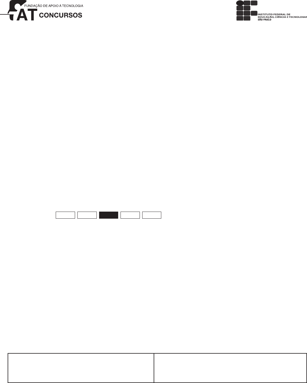 PROCESSO SELETIVO IFSP - 1º SEM/11 PROVA DO ENSINO TÉCNICO ExAME: 19/12/10 (DOMINgO), àS 13h CADERNO DE QUESTÕES Nome do(a) candidato(a):________________________________________ Nº de inscrição: ________________ Caro candidato, Antes de iniciar a prova, leia atentamente as instruções a seguir: 1. Este caderno contém 64 (sessenta e quatro) questões em forma de teste. 2. A prova terá duração de 5 (cinco) horas. 3. Após o início do Exame, você deverá permanecer no mínimo até as 15h dentro da sala do Exame, podendo, ao deixar este local, levar consigo este caderno de questões. 4. Você receberá do Fiscal a Folha de Respostas Definitiva. Verifique se está em ordem e com todos os dados impressos corretamente. Caso contrário, notifique o Fiscal, imediatamente. 5. Após certificar-se de que a Folha de Respostas Definitiva é sua, assine-a com caneta esferográfica de tinta preta ou azul no local em que há a indicação: “ASSINATURA DO(A) CANDIDATO(A)”. 6. Após o recebimento da Folha de Respostas Definitiva, não a dobre e nem a amasse, manipulando-a o mínimo possível. 7. Cada questão contém 5 (cinco) alternativas (A, B, C, D, E) das quais somente uma atende às condições do enunciado. 8. Responda a todas as questões. Para cômputo da nota, serão considerados apenas os acertos. 9. Os espaços em branco contidos neste caderno de questões poderão ser utilizados para rascunho. 10. Estando as questões respondidas neste caderno, você deverá primeiramente passar as alternativas escolhidas para a Folha de Respostas Intermediária, que se encontra na última página deste caderno de questões. 11. Posteriormente, você deverá transcrever todas as alternativas assinaladas na Folha de Respostas Intermediária para a Folha de Respostas Definitiva, utilizando caneta esferográfica de tinta preta ou azul. 12. Questões com mais de uma alternativa assinalada, rasurada ou em branco serão anuladas. Portanto, ao preencher a Folha de Respostas Definitiva, faça-o cuidadosamente. Evite erros, pois a Folha de Respostas não será substituída. 13. Preencha as quadrículas da Folha de Respostas Definitiva, com caneta esferográfica de tinta preta ou azul e com traço forte e cheio, conforme o exemplo a seguir 14. Quando você terminar a prova, avise o Fiscal, pois ele recolherá a Folha de Respostas Definitiva, na sua carteira. Ao término da prova, você so- mente poderá retirar-se da sala do Exame após entregar a sua Folha de Respostas Definitiva, devidamente assinada, ao Fiscal. 15. Enquanto você estiver realizando o Exame, é terminantemente proibido régua, esquadro, transferidor, compasso ou similares, relógios tipo data- bank, walkman, calculadora, notebook, palmtop, bip, pagers, agenda eletrônica, telefone celular, radiocomunicador ou aparelho eletrônico similar, chapéu, boné, lenço, gorro, óculos escuros, corretivo líquido ou quaisquer outros materiais (papéis) estranhos à prova. 16. Detectada a tentativa ou fraude, por meio de vigilância eletrônica ou pelos Fiscais, você estará automaticamente desclassificado e sujeito a proces- so civil/criminal. 17. Será sumariamente eliminado do Exame o candidato que: • Perturbar, de qualquer modo, a ordem dos trabalhos. • Sair da sala sem autorização ou desacompanhado do Fiscal, com ou sem o caderno de questões e/ou a Folha de Respostas Definitiva. • Ausentar-se do prédio durante a realização da prova, independentemente do motivo exposto. • Realizar a prova fora do local determinado. • Deixar de assinar a lista de presença e a sua Folha de Respostas Definitiva. • For surpreendido se comunicando ou tentando se comunicar com outro candidato. • Não apresentar um dos documentos de identidade originais exigidos. 18. Aguarde a ordem do Fiscal para iniciar o Exame. Boa Prova! Gabarito oficial O gabarito oficial da prova será divulgado a partir das 18 horas do dia 19/12/10, no site www.vestibularifsp.com.br Resultado A lista de classificação geral será divulgada a partir do dia 14/1/11, nos murais de cada campus/pólo e no site www.vestibularifsp.com.br A B C D E 2 • VEstiBuLiNHO IFSP • 1º sem/11 Os derramamentos de petróleo no mar são causados principalmente por acidentes com navios petroleiros nas plataformas e pela água utilizada na lavagem dos reservatórios do óleo dos navios, que é depois lançada diretamente ao mar. Em abril deste ano, o derramamento de petróleo no Golfo do México foi causado pela explosão e afundamento de uma plataforma na costa da Louisiana e Mississipi, Estados Unidos, mantendo os dutos de exploração abertos com vazamento equivalente a 5000 barris de petróleo por dia. Sobre este tipo de poluição ambiental foram feitas as seguintes afirmativas. I. O derramamento de petróleo forma extensas manchas na camada superficial das águas, bloqueando a passagem de luz, o que afeta a realização da fotossíntese pelos organismos autótrofos. II. A camada de óleo, devido à sua maior densidade, permanece na superfície da água, impedindo as trocas gasosas com a atmosfera. III. Os peixes são diretamente afetados em acidentes ambientais desse tipo, pois o óleo impregna na superfície do corpo matando o animal por intoxicação, asfixia e por impedir a termorregulação. IV. As aves marinhas são afetadas pelo derramamento de petróleo na água, pois podem sofrer intoxicação e não conseguem voar quando as penas ficam recobertas de óleo. É válido o que se afirma em (A) I e IV, apenas. (B) II e IV, apenas. (C) I, II e III, apenas. (D) I, III, e IV, apenas. (E) I, II, III e IV. Um professor de Biologia, em uma aula sobre Sistema Reprodutor, explicou a formação de gêmeos univitelinos e fraternos, a partir do momento da fecundação. Alguns alunos, após ouvirem as explicações, fizeram as seguintes afirmativas. − Maria: os gêmeos univitelinos são geneticamente idênticos e possuem, entre outras características, o mesmo sexo. − Cristina: os gê