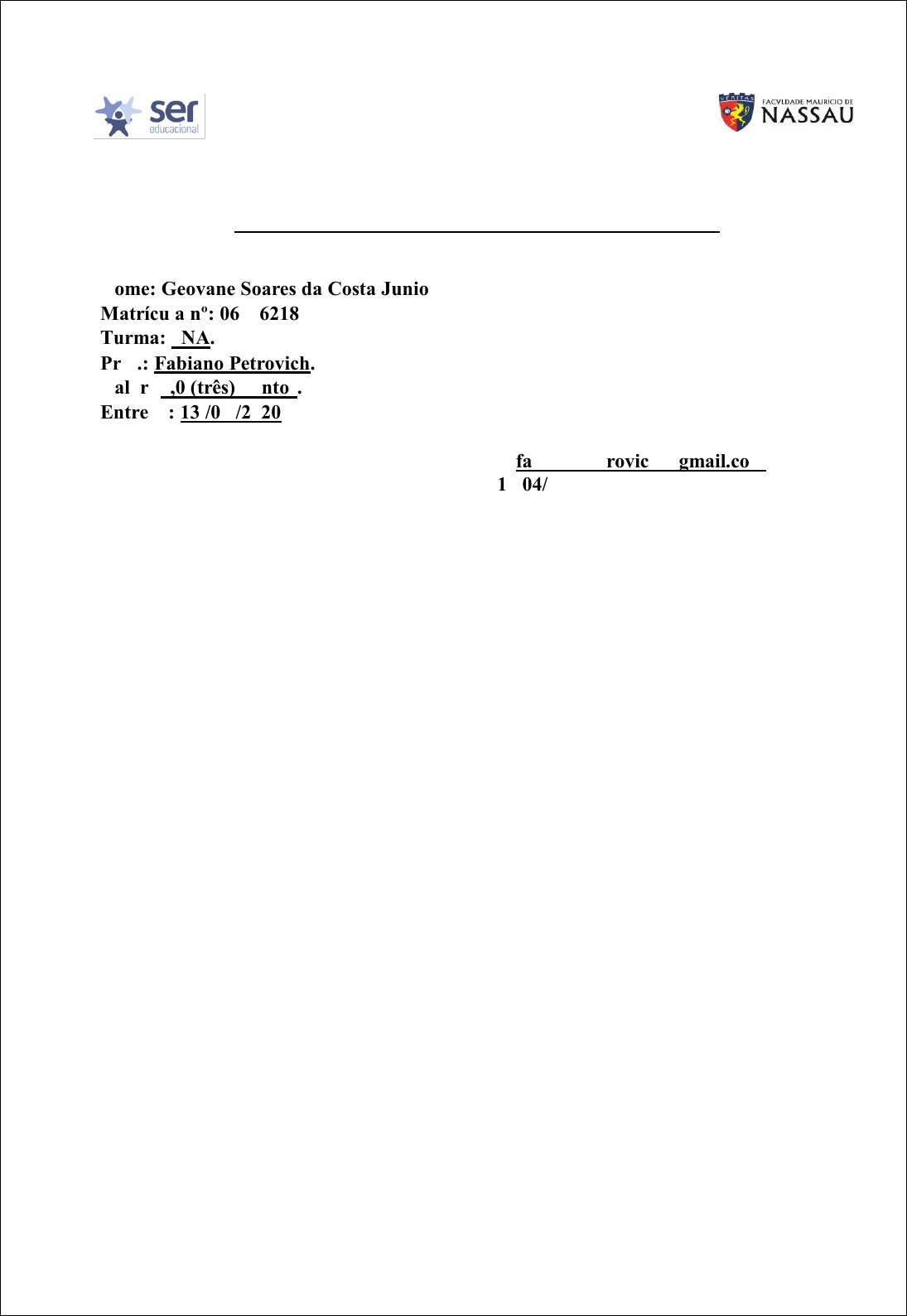 UNINASSAU CURSO DE GRADUAÇÃO EM DIREITO DISCIPLINA DE PORTUGUÊS JURÍDICO ATIVIDADE AVALIATIVA DA PRIMEIRA UNIDADE Nome: Geovane Soares da Costa Junior Matrícula nº: 06046218 Turma: 1NA. Prof.: Fabiano Petrovich. Valor: 3,0 (três) pontos. Entrega: 13 /04 /2020. OBS: A Atividade deverá ser enviada por email (fabianopetrovich@gmail.com), até às 18h, da segunda-feira da próxima semana, dia 13/04/2020. 01. Lei a sentença abaixo e responda a questão a seguir: “Vou lhe contar um fato, que é de arrepiar! O homem foi ao supermercado, para picanha comprar. Iria de um churrasco participar. Comprou picanha fatiada, quis economizar! Na festa foi advertido, o tira-gosto estava duro, comentou após ter comido. Seu amigo atestou, não era picanha não! Bora reclamar, para não ficar na mão. A requerida recusou, não quis a carne trocar. Por tal desaforo, resolveu demandar. Queria danos morais, como forma de enricar e picanha verdadeira comprar. Este fato tenho que decidir, com bom senso agir. Dar o desate à lide e o processo concluir. O pedido é improcedente. Se a carne não era de qualidade, era bem verdade. Mas para tanto não presta. A gerar danos morais, compelir indenização, pelo mau gosto da peça. Troque de fornecedor ou sem muita dor, compre a carne correta! Para encerrar esta demanda, nem indenização nem valor gasto. Finde-se o processo e volte- se com o boi ao pasto. Posto isto e algo mais a considerar! A lide é improcedente, nada há a indenizar. Resta a todos censurar. E o presente feito encerrar. Ao pagamento das custas condeno o autor. Dos honorários também. Amparado pela Justiça Gratuita, estes ficam suspensos. Que nada se cobre de ninguém. Publique-se, pois findo o julgamento. Registre-se para não cair no esquecimento. Intime-se para conhecimento. P. R. I. Cambuí/MG, 15 de outubro de 2018. Patrícia Vialli Nicolini Juíza de Direito” (Proc. nº 106.17.3035-2 / 1ª Cara da Comarca de Cambuí) 1 - Identifique o que foi pedido no processo e qual a decisão proferida pela magistrada. Utilize trechos do julgado para fundamentar as suas respostas. Resposta (PEDIDO DO PROCESSO): O autor entrou com uma ação litigiosa, na Comarca de Cambuí, requerendo danos morais por comprar uma carne (pensando ser picanha) que não atendeu as suas expectativas. Após tentar trocar a carne e receber a negativa da requerida, resolveu demandar (Seu amigo atestou, não era picanha não! Bora reclamar, para não ficar na mão. A requerida recusou, não quis a carne trocar. Por tal desaforo, resolveu demandar. Queria danos morais, como forma de enricar e picanha verdadeira comprar). Resposta (DECISÃO PROFERIDA PELA MAGISTRADA): A referida magistrada, julgou improcedente o pedido de danos morais (O pedido é improcedente. Se a carne não era de qualidade, era bem verdade. Mas para tanto não presta. A gerar danos morais, compelir indenização, pelo mau gosto da peça. Troque de fornecedor ou sem muita dor, compre a carne correta! Para encerrar esta demanda, nem indenização nem valor gasto. Finde-se o processo e volte-se com o boi ao pasto.) 02. Interprete a charge abaixo, indicando a temática referida na ilustração. Cite três outros exemplos que podem ser relacionados à crítica presente na imagem. Fonte: http://www.praticadapesquisa.com.br/2010/02/clareza-na-linguagem-juridica.html , com acesso em 05/04/2020. Resposta: A ilustração retrata uma advogada solicitando ao juiz que o seu cliente não seja preso por falta de razão/prova (na primeira imagem). O juiz responde que nesta fase do processo, o princípio “in dubio pro reo” (favorecimento ao réu por falta de razão/prova) não vigora, que vai manter a prisão do acusado (segunda imagem), a terceira imagem, trata-se da falta de conhecimento das expressões técnicas do réu, em relação ao que foi dialogado entre a advogada e o juiz. Exemplo 1: O contexto geral da crítica acima, fala sobre a dificuldade que uma pessoa “leiga” tem, em entender o dialeto jurídico. Por exemplo, a advogada chega numa audiência de custódia e solicita um “Habeas Corpus” ao juiz, grande parte das pessoas não sabem nem o que isso significa "conceder sempre que alguém sofrer ou se achar ameaçado de sofrer violência ou coação em sua liberdade de locomoção, por ilegalidade ou abuso de poder", exatamente como a charge mostra. Exemplo 2: Ainda relacionado ao conhecimento de expressões jurídicas, você sabia que a palavra MARITICÍDIO significa: Ato de matar o próprio marido? Exemplo 3: Vamos supor que você era casado (a), após a separação, a “mãe” começa a jogar o filho contra o pai, além disso, faz um requerimento pedindo ao juiz que o pai não tenha direito a ver o filho, o pai consegue provar que ela vem agindo de tal forma, você sabia que ela está cometendo o crime de “ALIENAÇÃO PARENTAL”, e pode ser processada por isso? Algumas pessoas, após lerem esse exemplo, podem não saber o que significa “ALIENAÇÃO PARENTAL” (significa: o processo e o resultado da manipulação psicológica de uma criança em mostrar medo, desrespeito ou hostilidade injustificados em relação ao pai ou mãe e/ou a outros membros da família). Desta forma, vemos o quão importante é a disciplina denominada como “Português Jurídico”, no meu ponto de vista, deveria ser uma submatéria do ensino tradicional ligado à língua portuguesa. 03. D. Maria José, moradora do bairro do Alecrim, em Natal/RN, observa que uma grande árvore, localizada no canteiro central da rua em que mora, bem em frente à sua casa, apresenta muitos "galhos secos". Temendo a queda de tais galhos, a senhora decide formular um requerimento a ser apresentado ao órgão municipal competente. Com várias dúvidas acerca da destinação e elaboração do requerimento, d. Maria José se dirige à Secretaria Municipal de Serviços Urbanos-SEMSUR, tendo recebido as seguintes informações acerca da elaboração do requerimento administrativo: - End