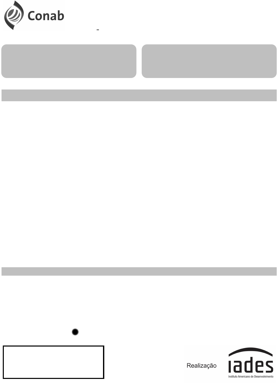 COMPANHIA NACIONAL DE ABASTECIMENTO CONCURSO PÚBLICO PARA PROVIMENTO DE VAGAS E FORMAÇÃO DE CADASTRO DE RESERVA EM CARGOS PÚBLICOS EFETIVOS DE NÍVEL SUPERIOR EDITAL NO 2 DO CONCURSO PÚBLICO 1/2014 - NORMATIVO Cargo 101 Administração Data e horário da prova: Domingo, 20/7/2014, às 14h I N S T R U Ç Õ E S • Você receberá do fiscal: o um caderno de questões da prova objetiva contendo 50 (cinquenta) questões de múltipla escolha, com 5 (cinco) alternativas de resposta cada uma, e apenas uma alternativa correta; o um cartão de respostas ótico personalizado. • Verifique se a numeração das questões, a paginação do caderno de questões e a codificação do cartão de respostas ótico estão corretas. • Quando autorizado pelo fiscal do IADES, no momento da identificação, escreva no espaço apropriado do cartão de respostas, com a sua caligrafia usual, a seguinte frase: A confiança em si mesmo é o primeiro segredo do sucesso. • Você dispõe de 4 (quatro) horas para fazer a prova objetiva, devendo controlar o tempo, pois não haverá prorrogação desse prazo. Esse tempo inclui a marcação do cartão de respostas ótico. • Somente será permitido levar o caderno de questões da prova objetiva após 3 (três) horas e 30 (trinta) minutos do início da prova. • Somente após decorrida 1 (uma) hora do início da prova, você poderá entregar seu cartão de respostas ótico e retirar-se da sala. • Após o término da prova, entregue ao fiscal do IADES o cartão de respostas devidamente assinado. • Deixe sobre a carteira apenas o documento de identidade e a caneta esferográfica de tinta preta ou azul, fabricada de material transparente. • Não é permitida a utilização de qualquer aparelho eletrônico de comunicação. Desligue e guarde em embalagem fornecida pelo fiscal do IADES: máquina fotográfica; telefone celular; relógio; gravador; bip; receptor; pager; notebook; tablet eletrônico; walkman; aparelho portátil de armazenamento e de reprodução de músicas, vídeos e outros arquivos digitais; agenda eletrônica; palmtop; régua de cálculo; máquina de calcular e (ou) qualquer outro equipamento similar. • Não é permitida a consulta a livros, dicionários, apontamentos e apostilas. • Você somente poderá sair e retornar à sala de aplicação de provas na companhia de um fiscal do IADES. • Não será permitida a utilização de lápis em nenhuma etapa da prova. I N S T R U Ç Õ E S P A R A A P R O V A O B J E T I V A E D I S C U R S I V A • Verifique se os seus dados estão corretos no cartão de respostas da prova objetiva e na folha de respostas da prova discursiva. Caso haja algum dado incorreto, escreva apenas no(s) campo(s) a ser(em) corrigido(s), conforme instruções no cartão de respostas. • Leia atentamente cada questão e assinale, no cartão de respostas ótico, uma única alternativa. • O cartão de respostas ótico e a folha de respostas da prova discursiva não podem ser dobrados, amassados, rasurados ou manchados e nem podem conter nenhum registro fora dos locais destinados às respostas. • A maneira correta de assinalar a alternativa no cartão de respostas é cobrir, fortemente, com caneta esferográfica preta ou azul, o espaço a ela correspondente. • Marque as respostas assim: Prova Tipo “A” www.pciconcursos.com.br CONCURSO PÚBLICO – CONAB 101 – Administração - Prova Tipo “A” PÁGINA 2/12 CONHECIMENTOS BÁSICOS Questões de 1 a 25 LÍNGUA PORTUGUESA Questões de 1 a 10 Texto 1 para responder as questões de 1 a 3. 1 4 7 10 13 14 O que são alimentos orgânicos Na agricultura orgânica, não é permitido o uso de substâncias que coloquem em risco a saúde humana e o meio ambiente. Não são utilizados fertilizantes sintéticos solúveis, agrotóxicos e transgênicos. O Brasil, em função de possuir diferentes tipos de solo e clima, uma biodiversidade incrível aliada a uma grande diversidade cultural, é sem dúvida um dos países com maior potencial para o crescimento da produção orgânica. Para ser considerado orgânico, o produto tem que ser produzido em um ambiente de produção orgânica, onde se utilizam como base do processo produtivo os princípios agroecológicos que contemplam o uso responsável do solo, da água, do ar e dos demais recursos naturais, respeitando as relações sociais e culturais. Disponível em: <http://www.agricultura.gov.br/desenvolvimento- sustentavel/organicos/o-que-e-agricultura-organica>. Acesso em: 5/5/2014, com adaptações. QUESTÃO 1 _______________________ Considerando as informações veiculadas pelo texto e a relação entre elas, assinale a alternativa correta. (A) Agricultura orgânica é aquela que não permite a utilização de substâncias nocivas à saúde humana e ao meio ambiente. (B) Os fertilizantes sintéticos solúveis, os agrotóxicos e os transgênicos não se enquadram na categoria das substâncias que colocam em risco a saúde humana e o meio ambiente. (C) Os diferentes tipos de solo e clima e a biodiversidade aliada à grande diversidade cultural justificam a condição do Brasil como grande produtor de alimentos orgânicos. (D) O Brasil ainda não produz alimentos orgânicos. (E) O respeito às relações sociais e culturais é uma atitude que se opõe aos princípios agroecológicos. QUESTÃO 2 _______________________ De acordo com a norma-padrão, assinale a alternativa que apresenta outra redação possível para “Na agricultura orgânica, não é permitido o uso de substâncias que coloquem em risco a saúde humana e o meio ambiente.” (linhas de 1 a 3). (A) Não é permitido, na agricultura orgânica, a utilização de substâncias que coloquem em risco a saúde humana e o meio ambiente. (B) Na agricultura orgânica, não é permitido o uso de substâncias os quais coloquem em risco a saúde humana e o meio ambiente. (C) Não é permitido, na agricultura orgânica, o uso de substâncias que oferecem risco à saúde humana e