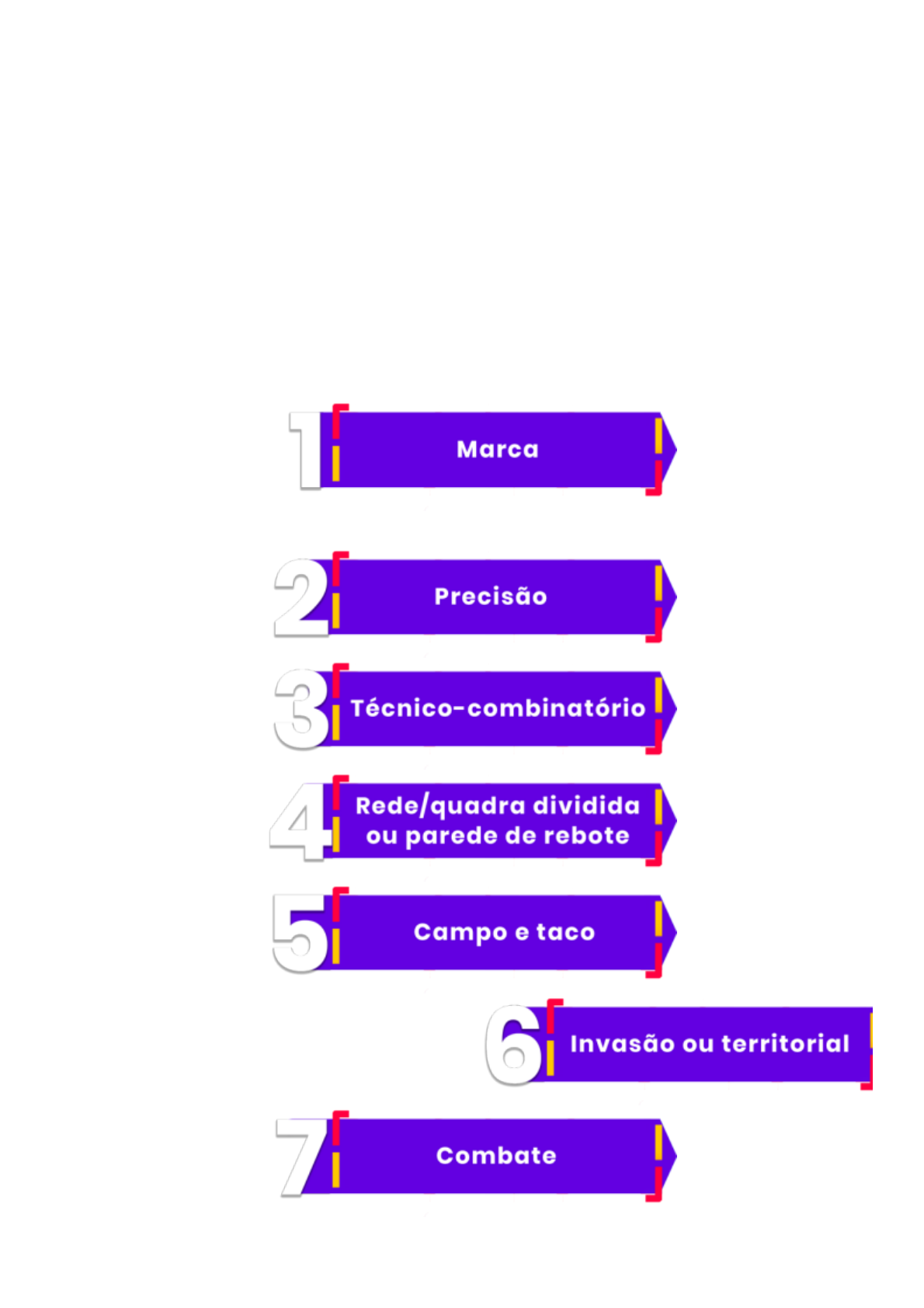 21/05/2020 Impulsiona Esporte - Goalball - AVAMEC avamec.mec.gov.br/#/instituicao/peninsula/curso/1253/unidade/94/acessar?continue=false 1/9 Aula 2 - Categorias esportivas As sete categorias esportivas - Ensino Fundamental Para estruturar a unidade temática de esportes, foram criadas sete categorias, que privilegiam as ações motoras intrínsecas, reunindo esportes que apresentam exigências motrizes semelhantes no desenvolvimento de sua prática. Estas categorias também possuem como referência os critérios de cooperação, de interação com o adversário e os objetivos táticos das ações a serem executadas no jogo. As sete categorias são: Esportes de marca 21/05/2020 Impulsiona Esporte - Goalball - AVAMEC avamec.mec.gov.br/#/instituicao/peninsula/curso/1253/unidade/94/acessar?continue=false 2/9 São esportes que se caracterizam por comparar os resultados registrados em segundos, metros ou quilos. Veja alguns exemplos: Esportes de precisão 21/05/2020 Impulsiona Esporte - Goalball - AVAMEC avamec.mec.gov.br/#/instituicao/peninsula/curso/1253/unidade/94/acessar?continue=false 3/9 São esportes que se caracterizam por arremessar/lançar um objeto, procurando acertar um alvo específico, estático ou em movimento, comparando-se o número de tentativas empreendidas, a pontuação estabelecida em cada tentativa (maior ou meno do que a do adversário) ou a proximidade do objeto arremessado ao alvo (mais perto ou mais longe do que o adversário conseguiu deixar). Veja alguns exemplos: 21/05/2020 Impulsiona Esporte - Goalball - AVAMEC avamec.mec.gov.br/#/instituicao/peninsula/curso/1253/unidade/94/acessar?continue=false 4/9 Esportes técnico-combinatórios São esportes que se caracterizam por possuírem como resultado da ação motora comparada a qualidade do movimento segundo padrões técnico-combinatórios. Veja alguns exemplos: 21/05/2020 Impulsiona Esporte - Goalball - AVAMEC avamec.mec.gov.br/#/instituicao/peninsula/curso/1253/unidade/94/acessar?continue=false 5/9 Esportes de rede / quadra dividida ou parede de rebote São esportes que se caracterizam por arremessar, lançar ou rebater a bola em direção a setores da quadra adversária nos quais o rival seja incapaz de devolvê-la da mesma forma ou que leve o adversário a cometer um erro dentro do período de tempo em que o objeto do jogo está em movimento. Veja alguns exemplos: 21/05/2020 Impulsiona Esporte - Goalball - AVAMEC avamec.mec.gov.br/#/instituicao/peninsula/curso/1253/unidade/94/acessar?continue=false 6/9 Esportes de campo e taco São esportes que se caracterizam por rebater a bola lançada pelo adversário o mais longe possível, para tentar percorrer o maior número de vezes as bases ou a maio distância possível entre as bases, enquanto os defensores não recuperam o controle da bola, e, assim, somar pontos. Veja alguns exemplos: 21/05/2020 Impulsiona Esporte - Goalball - AVAMEC avamec.mec.gov.br/#/instituicao/peninsula/curso/1253/unidade/94/acessar?continue=false 7/9 Esportes de invasão ou territorial São esportes que se caracterizam por comparar a capacidade de uma equipe introduzir ou levar uma bola (ou outro objeto) a uma meta ou setor da quadra/campo defendida pelos adversários (gol, cesta, touchdown etc.), protegendo simultaneamente, o próprio alvo, meta ou setor do campo. Veja alguns exemplos: 21/05/2020 Impulsiona Esporte - Goalball - AVAMEC avamec.mec.gov.br/#/instituicao/peninsula/curso/1253/unidade/94/acessar?continue=false 8/9 Esportes de combate São esportes que se caracterizam por disputas nas quais o oponente deve se subjugado, com técnicas, táticas e estratégias de desequilíbrio, contusão, imobilização ou exclusão de um determinado espaço, por meio de combinações de ações de ataque e defesa. Veja alguns exemplos: 21/05/2020 Impulsiona Esporte - Goalball - AVAMEC avamec.mec.gov.br/#/instituicao/peninsula/curso/1253/unidade/94/acessar?continue=false 9/9 Relembrando A BNCC destaca que as práticas corporais na escola e, consequente-mente, as práticas esportivas, devem ser reconstruídas com base em sua função social e suas possibilidades materiais. Isto quer dizer que as mesmas podem ser transformadas, adaptadas, no interior da escola de acordo com cada contexto. Além disso, é importante destacar que o caráter lúdico deve estar presente nas práticas corporais, ainda que essa não seja a finalidade da Educação Física na escola.
