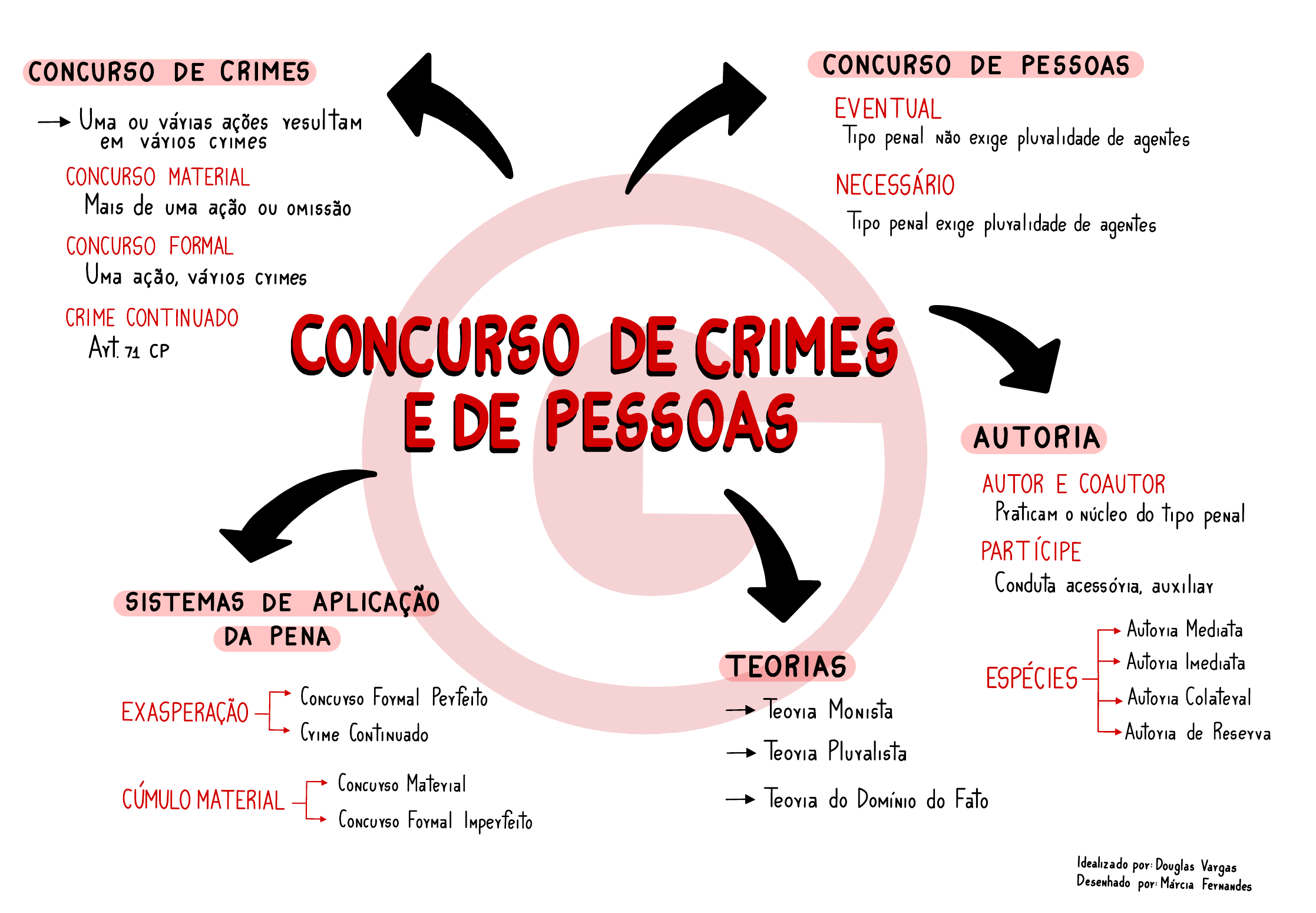 CONCURSO DE CRIMES CONCURSO DE PESSOAS não Umeçnoyanáyççrççççç resultam Apt µ EFFY não exige pluralidade de agentes CONCURSO MATERIAL NECESSÁRIO Mais de uma ação OU OMISSÃO Tipo penal exige pluralidade de agentes CONCURSO FORMAL Uma ação , vários crimes " I.¥ ?% " " " CONCURSO DE CRIMES ⇒ E DE PESSOAS autoria AUTOR E COAUTOR Ã Praticam o Núcleo do tipo penalE. µ " " " " SISTEMAS DE APLICAÇÃO Conduta acessória , auxiliar DA PENA fia Autoria Mediata TEORIAS ESPECIES eoa Autoria Imediata EXASPERAÇÃO - Ão concurso Formal Perfeito não Tem , a Monista - - ão Autoria Colateral i. Crime Continuado Leão Autoria de Reserva - ão Teoria Pluralista [ ÚMULO MATERIAL j ↳ " " " O Material - à Teoria do Domínio do Fato - à Concurso Formal Imperfeito %:* : iii.Livro Eletrônico