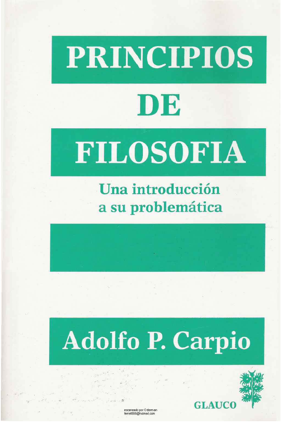 Respecto de todas las ciencias, artes, habilidades y oficios vale la convicción de que para poseerlos se necesita un reiterado esfuerzo de aprendizaje y de ejercicio; y que, si bien todos tienen ojos y dedos, y se les proporciona cuero e instrumentos, no por ello están en condiciones de hacer zapatos. En lo referente a la filosofía, en cambio, parece ahora dominar el prejuicio de que cualquiera sabe inmediatamente filosofar y apreciar la filosofía porque para ello posee la medida en su razón natural, como si cada uno no poseyera también en su pie la medida del zapato. HEGEL, Phänomenologie des Geistes, (ed. Hoffmeister, p. 54) ÍNDICE Prefacio. Prefacio a la segunda edición. Capítulo I LOS PROBLEMAS DE LA FILOSOFÍA 1. Los principios ontológicos. 2. La diversidad de los entes. 3. Una primera definición de la filosofía. 4. El fundamento. Primer origen de la filosofía: el asombro. 5. Filosofía e historia de la filosofía. 6. Segundo origen de la filosofía: la duda. 7. Tercer origen de la filosofía: las situaciones límites. Bibliografía. Capítulo II CAMBIO Y PERMANENCIA 1. Devenir e inmutabilidad. 2. Heráclito: el fuego. 3. Heráclito: el logos. 4. Parménides: el ente y sus caracteres. 5. Parménides: impugnación del mundo sensible. 6. El descubrimiento de la razón. 7. La ejemplaridad de Heráclito y Parménides. 8. Segunda caracterización de la filosofía: la filosofía como el saber más profundo. Bibliografía. Capítulo III LA FILOSOFÍA COMO CRÍTICA UNIVERSAL Y SABER SIN SUPUESTOS 1. El saber vulgar. 2. El saber crítico. 3. La ciencia, saber con supuestos. 4. La pregunta de Leibniz. 5. La filosofía como análisis de lo obvio. 6. El movimiento. Las aporías de Zenón. 7. Significado de las aporías. 8. San Agustín y el tiempo. 9. Ciencia y filosofía. 10. La filosofía tomo crítica universal y saber sin supuestos. Bibliografía. Capítulo IV EL DESCUBRIMIENTO DEL CONCEPTO. SÓCRATES escaneado y digitalizado por J.Rubén Fernández para Taringa.net fernet666@hotmail.com 1 1. El momento histórico. 2. Los sofistas. 3. La figura de Sócrates. 4. La misión de Sócrates. 5. Primer momento del método socrático: la refutación. 6. La refutación como catarsis. 7. Segundo momento del método socrático: la mayéutica. 8. La anamnesis; pasaje a Platón. Bibliografía. Capítulo V EL MUNDO DE LAS IDEAS. PLATÓN 1. La obra de Platón y su influencia. 2. Planteo del problema. 3. El modo de ser de lo sensible, y el de las ideas. Los dos mundos. 4. El conocimiento a priori. 5. Los dos mundos; doxa y episteme. 6. Grados del ser y del conocer. 7. El mundo de la doxa. 8. El mundo inteligible. 9. La dialéctica. 10. La Idea del Bien. 11. La relación entre los dos mundos. 12. La alegoría de la caverna. 13. La vida de la caverna. 14. La liberación del prisionero. 15. La misión del filósofo. 16. El estado perfecto es una idea. Bibliografía. Capítulo VI EL MUNDO DE LAS SUBSTANCIAS. ARISTÓTELES 1. Personalidad. 2. Críticas a la teoría de las ideas. 3. Las categorías. 4. Estructura de la substancia. Forma y materia, acto y potencia. 5. El cambio y las cuatro causas. 6. La escala de la naturaleza. 7. Dios. 8. La ética: medios y fines. 9. Virtudes éticas y dianoéticas. Bibliografía. Capítulo VII LA RAZÓN Y LA FE. SANTO TOMÁS 1. Importancia del tomismo en la filosofía actual. 2. La religión griega y el cristianismo. 3. La filosofía cristiana. 4. La razón y la fe. escaneado y digitalizado por J.Rubén Fernández para Taringa.net fernet666@hotmail.com 2 5. Santo Tomás de Aquino. 6. La armonía entre la razón y la fe. 7. Las cinco vías. 8. La naturaleza de Dios. Bibliografía. Capítulo VIII EL RACIONALISMO. DESCARTES 1. La nueva época y la crítica al pensamiento medieval. 2. El problema del método. 3. La filosofía de la desconfianza. 4. La duda metódica. 5. Crítica del saber sensible. 6. Crítica del conocimiento racional. 7. El cogito. 8. El criterio de verdad. 9. Las reglas del método. 10. La "cosa" pensante. Las ideas innatas. 11. Existencia y veracidad de Dios. 12. La substancia extensa. 13. El racionalismo. 14. Supuestos del racionalismo. Bibliografía. Capítulo IX EL EMPIRISMO SECCIÓN I. EL EMPIRISMO CLÁSICO. HUME 1. El empirismo y Hume. 2. Impresiones e ideas. 3. El principio fundamental del empirismo. 4. Conocimiento demostrativo y conocimiento fáctico. 5. Crítica de la idea de causalidad. 6. Origen de la idea de causalidad. 7. Crítica de la idea de substancia. 8. Crítica de la idea de alma. 9. Excursus. La "superación" de los filósofos. 10. Balance de la filosofía de Hume. Escepticismo y naturalismo. SECCIÓN II. EL EMPIRISMO ACTUAL 1. Positivismo y empirismo en la filosofía actual. 2. El lenguaje. 3. Lógica matemática. 4. La teoría de la verificación. 5. Crítica de la metafísica. escaneado y digitalizado por J.Rubén Fernández para Taringa.net fernet666@hotmail.com 3 6. Apunte crítico. SECCIÓN III. LA FILOSOFÍA DE WITTGENSTEIN A. El Tractatus. 1. El Tractatus. 2. La metafísica. Los hechos atómicos. 3. El lenguaje ideal. La verdad. 4. Las proposiciones significativas. La ciencia. 5. La lógica. Mostrar y decir. 6. La filosofía. B. Las Investigaciones filosóficas. 7. La nueva teoría. 8. Los juegos de lenguaje. 9. La filosofía como terapéutica. 10. Eliminación de la filosofía. Bibliografía. Capítulo X EL IDEALISMO TRASCENDENTAL. KANT 1. Personalidad de Kant. SECCIÓN I. LA FILOSOFÍA TEORÉTICA 2. Racionalismo y empirismo. El realismo. 3. La revolución copernicana. 4. Comienzo empírico y fundamento a priori. 5. Significado de la palabra "objeto". 6. Estructura de la Crítica de la razón pura. 7. Juicios analíticos y juicios sintéticos a posteriori. 8. El problema de la Crítica de la razón pura: la posibilidad de los juicios sintéticos a priori. 9. La Estética trascendental. Exposición metafísica del espacio y del tiempo. 10. Exposición trascendental. Realidad empírica e idealidad trascendental del esp