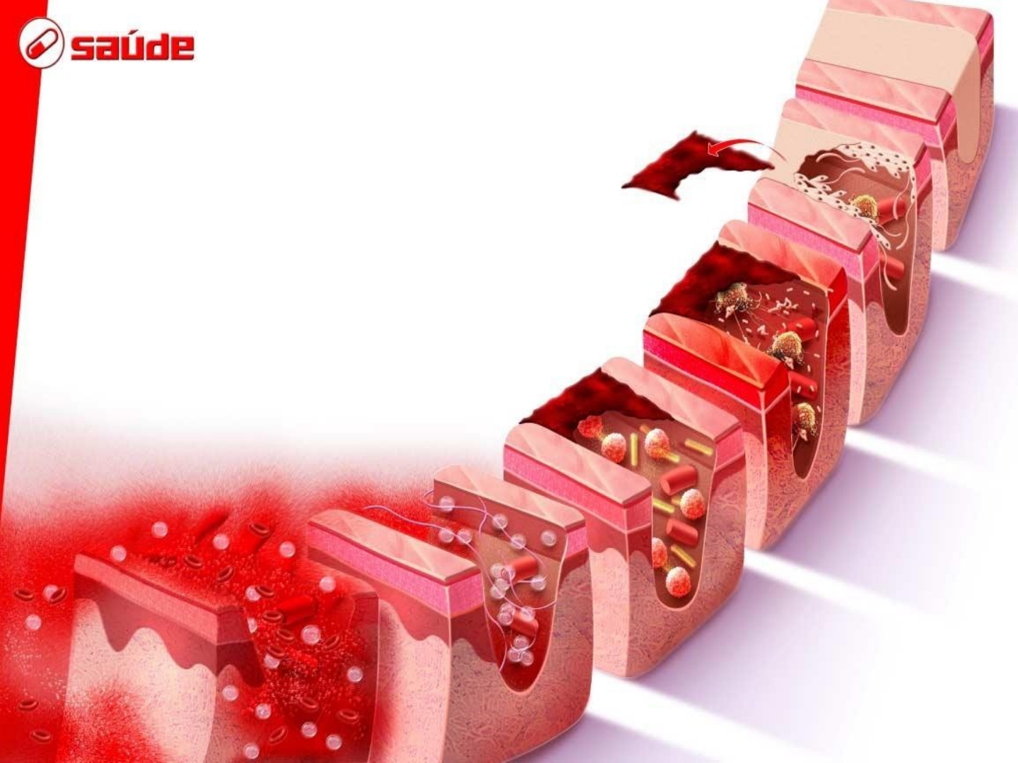 CICATRIZAÇÃO PRECEPTOR: DR. RODRIGO ACADEMICO: DIELLE ROGER LIMA DO CARMO 20 de Janeiro de 2020 INTRODUÇÃO A ferida é a ruptura da estrutura anatômica e funcional dos tecidos por trauma mecânico, físico ou químico. Reparo: cicatrização X Regeneração Fonte: Internet DEFINIÇÕES Ferida aguda X Ferida crônica Cicatrização de primeira intenção Cicatrização por segunda intenção Cicatrização por terceira intenção Fonte: Internet Fonte: Internet FASES DA CICATRIZAÇÃO Inflamatória/Hemostasia Proliferação Granulação Epitelização Contração da Ferida Maturação ou Remodelagem Fonte: Sabiston Textbook of Surgery - 19th Edition, Figure 7 -1 FASE INFLAMATÓRIA Simultânea ou logo após a coagulação Eventos convergem para a hemostasia e inflamação Parada do sangramento (vasoconstricção inicial) Selamento da superfície da Ferida: Formação do trombo e da matriz inicial de Fibrina e Fibronectina Aumento da permeabilidade vascular, migração de células (Neutrófilos, Macrófagos); secreção de citocinas e fatores de crescimento, ativação celular Remoção de tecido necrótico, resíduos, bactérias Predomínio de citocinas e fatores pró-inflamatórios Fonte: Witte MB, Barbul A: General principles of wound healing. Surg Clin North Am 77:509–528, 1997 PROLIFERAÇÃO - GRANULAÇÃO Chegada dos fibroblastos com substituição gradual da matriz inicial de fibrina por tecido de granulação rico em colágeno Hipóxia tecidual relativa e fatores de crescimento derivado de fibroblastos produzidos pelo endotélio e macrófagos estimulam angiogênese FONTE: INTERNET PROLIFERAÇÃO - EPITELIZAÇÃO Migração da epiderme espessa e células basais da borda da ferida (queratinócitos) crescem e migram para a matriz da ferida. Alterações morfológicas ocorrem nos queratinócitos, estimulados por fatores locais. Glicoproteínas adesivas facilitam a migração e a formação de uma nova camada epidérmica que repousa sobre a nova membrana basal. PROLIFERAÇÃO - CONTRAÇÃO A pele íntegra é puxada para a ferida aberta pela contração. O papel dos miofibroblastos MATURAÇÃO Início em oito dias em média após o início do processo cicatricial, permanecendo por tempo indeterminado Importante síntese e deposição de colágeno Diminuição dos componetes de Fibrina e Fibronectina Conversão do colágeno tipo III para tipo I e reorganização (remodelagem) da matriz. Aumento da força tênsil do tecido Predomínio de citocinas e fatores anti-inflamatórios Linfocitos T, Macrófagos e Fibroblastos são os grandes atores FERIDA CICATRIZADA Fonte: adaptado de Witte MB, Barbul A: General principlesof wound healing. Surg Clin North Am 77: 509–528,1997. FATORES QUE INTERFEREM NA CICATRIZAÇÃO Fatores locais Fatores sistêmicos ISQUEMIA Doença arterial aterosclerótica Desidratação Suturas com grande tensão Anemia grave INFECÇÃO DESNUTRIÇÃO Albumina < 2 Vitamina C Vitamina A Zinco Magnésio DIABETES MELLITUS Microangiopatia diabética Traumatismos repetitivos Resposta inflamatória atenuada Glicosilação de proteínas teciduais => colágeno frágil Tabagismo Insuficiência hepática Insuficiência renal Choque e septicemia Idade avançada Drogas: corticoide, imunossupressores quimioterápicos, antineoplásicos. Radiação ionizante FATORES QUE FAVORECEM A CICATRIZAÇÃO Bom estado nutricional Suplementação: vitaminas A, E, C, K, complexo B, zinco, ferro e cálcio. AVALIAÇÃO DA CICATRIZAÇÃO DE FERIDAS Cuidados com a ferida operatória No Pré-Operatório: Combater fatores que interferem na cicatrização; Evitar quimioterapia e radioterapia; Vitamina A, Vitamina C; Interromper AINES; Controlar infecções (antibióticos); Tricotomia; Banho pré-operatório. No Intraoperatório: Antibióticos; Via de acesso correta. Linhas de Kraissl; Evitar ligadura em massa, cauterização excessiva e desvascularização tecidual; Hipotermia; Fonte:Técnica em Cirurgia Dermatológica 1ª Ed. -Síntese da ferida: Sem tensão, preferencialmente com fios sintéticos (menor reação de corpo estranho). Sutura em pontos separados para caso de supuração. Sutura intradérmica somente em feridas limpas. *Outras alternativas: cola biológica e fita adesiva do tipo micropore. - Solução de NaCl a 0,9% - lavagem de feridas. - Lavagem de feridas agudas acidentais : água + sabão -> solução de NaCl a 0,9% Fonte: Clínica Cirúrgica. Colégio Brasileiro de Cirurgiões. Cap. 4, Página 56 – Fig 4.3. Curativo com pressão negativa: Aumento do fluxo sanguíneo; Remoção do edema crônico; Estímulo a formação do tecido de granulação; Cicatrização mais rápida. Fonte: Infecções graves de partes moles: relato de caso de fasciíte necrotizante de face utilizando curativo a vácuo e revisão da literatura. Rev. Bras. Cir. Plást. (Impr.) vol.26 no.2 São Paulo Apr./June 2011. No Pós-Operatório Oxigenação tecidual, oxigenoterapia hiperbárica; Suporte nutricional; Controle de HAS e Diabetes; Radioterapia e quimioterapia após 20 dias. Retirada dos pontos: Face: 4º e 5º dia Dorso/ membros: 10º dia ou mais c) Abdome: 6º e 10º dia Fonte: Internet Fonte: Internet - Fitas adesivas. Cuidados com a Ferida Operatória Aberta Livre de tecidos inviáveis; Prevenir desidratação dos tecidos; Livre de traumas. Fonte: Fasceíte Necrotizante Cervical em Lactente: Relato de Caso. Arq. Int. Otorrinolaringol. / Intl. Arch. Otorhinolaryngol.,São Paulo, v.12, n.4, p. 596-599, 2008. Cuidados com a Ferida Operatória Infectada Quadro Clínico Dor local, tumefação, calor e rubor. Presença de material purulento e/ou tecido necrótico. Drenagem da ferida: material levado para bacterioscopia, cultura e antibiograma Curativo deve permitir desbridamento seja por meio mecânico, químico, enzimático ou autólise; Lavagem regular da ferida; Antibioticoterapia; Repouso. Cicatrizes indesejáveis das Feridas Cicatrizes indesejáveis Definição Tratamento Retráteis Há encurtamento do teci