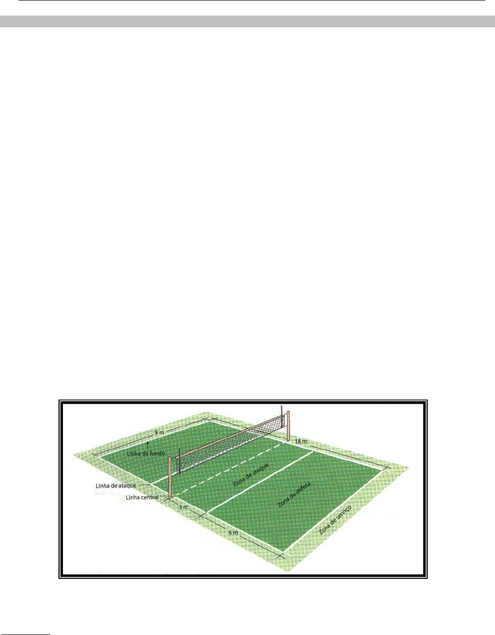 Documento de Apoio de Voleibol Página 1 de 5 VOLEIBOL 1. História do Voleibol O Voleibol foi criado em 1885, em Massachussets, por William G. Morgan, responsável pela Educação Física no Colégio de Holyoke, no Estado de Massachussets, nos Estados Unidos da América. Este professor de Educação Física, ao procurar criar uma nova actividade que fosse suave e motivante, que se pudesse praticar no Inverno e que não colocasse tantos problemas de material e de ocupação como o ténis, inventou uma nova modalidade, a que chamou de “minnonette” e que deu origem ao voleibol dos nossos dias. Só mais tarde, é que o nome do jogo foi alterado para Volley-ball. William Morgan tentou criar uma actividade de carácter mais recreativo, que se adaptasse aos seus alunos e aos homens de negócios que frequentavam os seus cursos e que simultaneamente exigisse um grande esforço e uma movimentação variada. Ter-se-á inspirado do ténis, uma vez que permaneceu na sua ideia uma rede a dividir o espaço de jogo, ao mesmo tempo que o jogo deveria ser jogado num recinto rectangular, entre duas equipas separadas por uma rede, mantendo uma bola em movimento, até que esta tocasse no solo, ou fosse batida para além dos limites do campo. O número de jogadores não era limitado só tinha de ser igual para ambas equipas. O sistema de rotação era já usado, para que todos jogadores pudessem servir. Era pois, um jogo que poderia ser jogado em recintos cobertos ou ao ar livre, por um qualquer número de jogadores, que não precisavam de material para bater a bola, pois poderiam fazê-lo com as próprias mãos. 2. Caracterização do Voleibol O voleibol é um jogo desportivo colectivo, praticado por duas equipas, cujo objectivo é enviar a bola por cima da rede, fazendo-a cair no campo adversário e evitando que ela caia no nosso próprio campo. Cada equipa é constituída por doze jogadores, sendo seis efectivos e seis suplentes. O campo é rectangular (18mx9m), delimitado por duas linhas laterais e duas finais, e é dividido ao meio por uma linha central, sobre a qual se situa a rede. Esta deve ser colocada a 2,24m de altura, para os jogos femininos e 2,43m para os jogos masculinos. 2. Regras do Voleibol PONTUAÇÃO - As partidas de voleibol são disputadas à melhor de cinco sets, e vence quem primeiro ganhar três deles. Um set consiste num conjunto de 25 pontos mas, para que termine é necessário que uma das equipas tenha uma vantagem de pelo menos dois pontos (exemplo: 25-23; 27-25). No entanto, se houver igualdade a dois sets, o 5º set será disputado até aos 15 pontos acabando sempre com uma diferença mínima de dois pontos. Documento de Apoio de Voleibol Página 2 de 5 ROTAÇÃO - Após cada serviço ganho, a equipa em causa executa a rotação na direcção dos ponteiros do relógio, isto é, a rotação é efectuada segundo a seguinte sequência de posições: 1, 6, 5, 4, 3, 2, e o jogador da posição 6 tem que estar atrás do jogador da posição 3 e entre os jogadores das posições 1 e 5; o jogador da posição 5 tem que estar atrás do jogador da posição 4 e à esquerda do jogador da posição 6; o jogador 1 tem que estar à direita do jogador 6 e atrás do jogador 2. NÚMERO DE TOQUES - A cada equipa só é permitido realizar três toques e a cada jogador não é permitido realizar dois toques consecutivos. Esta regra é alterada quando há uma situação de bloco, isto é, quando um jogador efectua a acção técnica de bloco pode realizar outro toque logo de seguida e consequentemente a equipa nesta situação poderá optar por dar quatro toques. Se a bola for tocada, por um jogador, em duas partes distintas do seu corpo é falta, excepto, por exemplo, na recepção (em manchete) ao serviço da equipa adversária. ÁREA DA LINHA DOS 3 METROS - Um jogador só pode realizar acções técnicas (remate e bloco) acima do bordo superior da rede se a chamada for realizada à frente da área da linha dos 3 metros e se estiver nas posições 2, 3 ou 4. Caso isto não se verifique o ponto é da equipa adversária. BOLA FORA - A bola é considerada fora quando toca fora dos limites do terreno no chão ou num objecto. Se cair na linha é considerada como bola válida. VIOLAÇÃO DA REDE E DA LINHA DE MEIO CAMPO - Tocar na rede ou passar com um ou dois pés para além da linha divisória do meio-campo é falta (a linha divisória pode ser pisada, mas nunca ultrapassada). 3. Fundamentos Técnico-Tácticos 3.1. POSIÇÃO BASE Objectivo: Permitir que o jogador se desloque rapidamente em todas as direcções e possa adoptar a técnica mais adequada em função da trajectória da bola, bem como o seu posicionamento táctico. Componentes críticas: Colocar os apoios (pés) ligeiramente afastados, à largura dos ombros; Flectir ligeiramente os braços à frente do corpo Inclinar o tronco à frente; Flectir ligeiramente os joelhos; Dirigir o olhar para cima e para a frente (possível trajectória da bola). 3.2. DESLOCAMENTOS Objectivo: Permitir o rápido posicionamento em campo, mediante a trajectória da bola e da função específica de cada jogador. Os deslocamentos são movimentos de locomoção dos jogadores determinantes na realização correcta dos gestos técnicos. Componentes críticas: Partir da posição base; Olhar a trajectória da bola; Utilizar o “passo caçado” (não cruzar os apoios); Fixar os apoios antes do contacto com a bola. Documento de Apoio de Voleibol Página 3 de 5 3.3. PASSE DE FRENTE Componentes críticas: Braços flectidos, ficando os cotovelos mais altos do que os ombros; Pernas flectidas, pés afastados e colocados à largura dos ombros; Contacto com a bola à frente da testa com os dedos bem afastados e cotovelos orientados para a frente; Extensão dos braços e das pernas no momento do contacto. 3.4. MANCHETE Componentes críticas: um pé ligeiramente avançado em relação ao outro e ambos afastados à largura dos ombros Pernas flectidas; ligeira inclinação 
