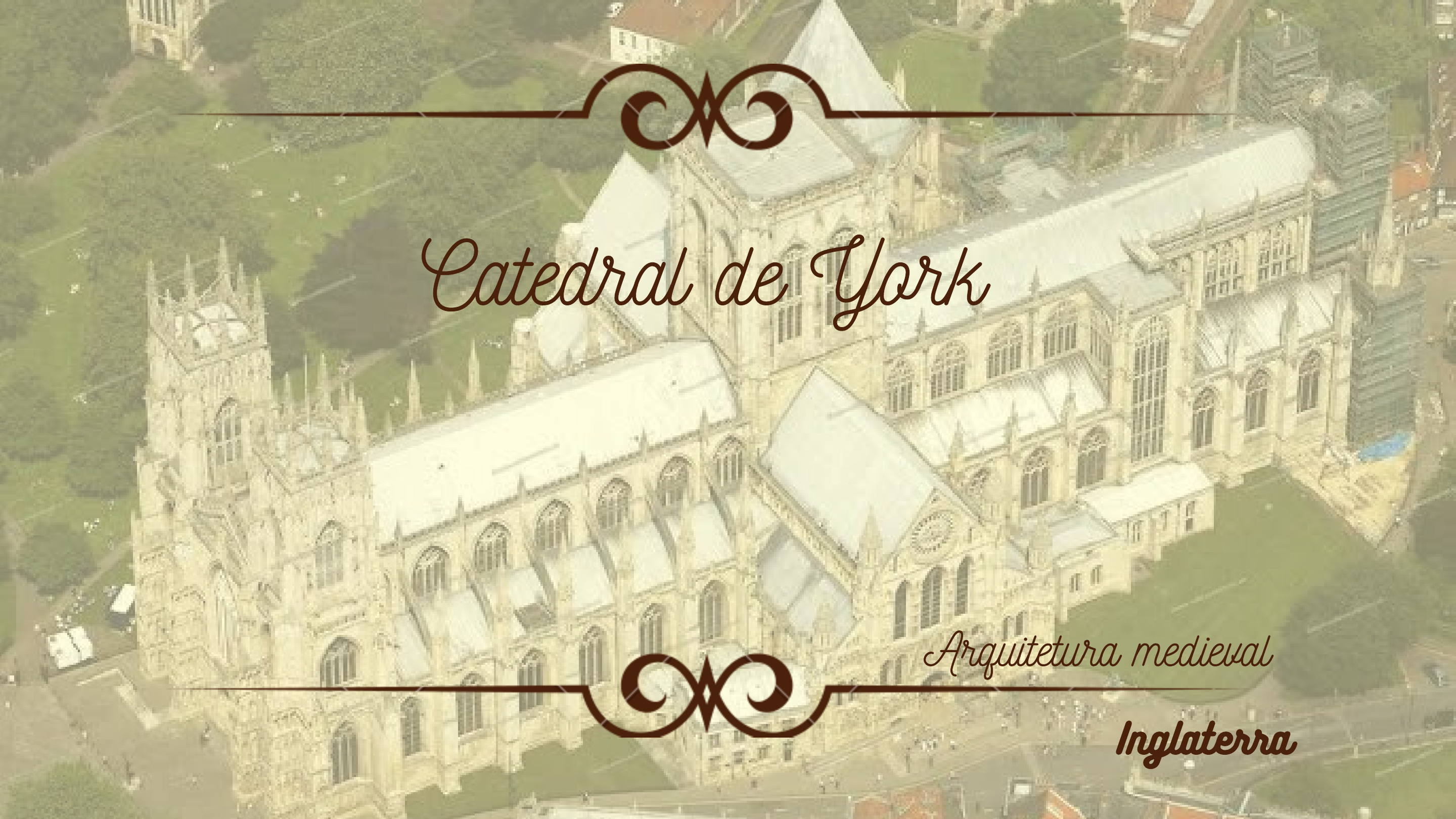 Catedral de York Inglaterra Arquitetura medieval A Catedral de York é a maior catedral de estilo gótico do norte europeu, localizada na cidade de York, Inglaterra. A construção da catedral de York, um dos polos religiosos e culturais da Inglaterra católica, teve início em 1220. Mas, só foi completada e consagrada em 1472. História O estilo arquitetônico gótico prevaleceu na Europa medieval entre os seculos XIII e XV, este estilo foi usado principalmente nas catedrais do período. Arcos de volta quebrada ou os arcos de ogiva eram os mais empregados nas construções góticas. Frequentemente eram decorados com algumas esculturas. Estilo Gótico Caracteristicas Arquitetônica Rosácea é um elemento decorativo circular e colorido preenchido com vitrais, o qual era utilizado nos portais de entradas das igrejas. Permitiam maior entrada de luz e recebe esse nome pois tem a forma de uma rosa. Vitrais são pedaços de vidros coloridos e com temas religiosos marcam o estilo gótico. Os vitrais foram muito usados como ornamentos no interior das catedrais góticas pois permitiam maior entrada de luz nas construções. São 128 vitrais composta com quase 2 milhôes de peças individuais de vidros. Abóbodas são as mais utilizadas no estilo gótico foram as abóbadas de cruzaria. São estruturas côncavas utilizadas nos tetos. Planta em cruz É a mais antiga em estilo gótico do Norte da Europa, sua planta é em forma de cruz. Possui 3 torres, cada uma com 60m de altura, tem 1458m de comprimento por 76m de largura Verticalidade das construções Torres pontiagudas e esguias Note que as construções góticas são muito altas e pontiagudas. Essa ideia de verticalidade está associada à proximidade com os céus, no caso, Deus e as divindades. Curiosidade Algumas das 15 estátuas de reis, de William, o Conquistador para Henry VI, nos Reis do século 15 Interior da Catedral O órgão na tela do coro Autora Grasiely Santos Detalhes.. Cruzando A cripta O coro