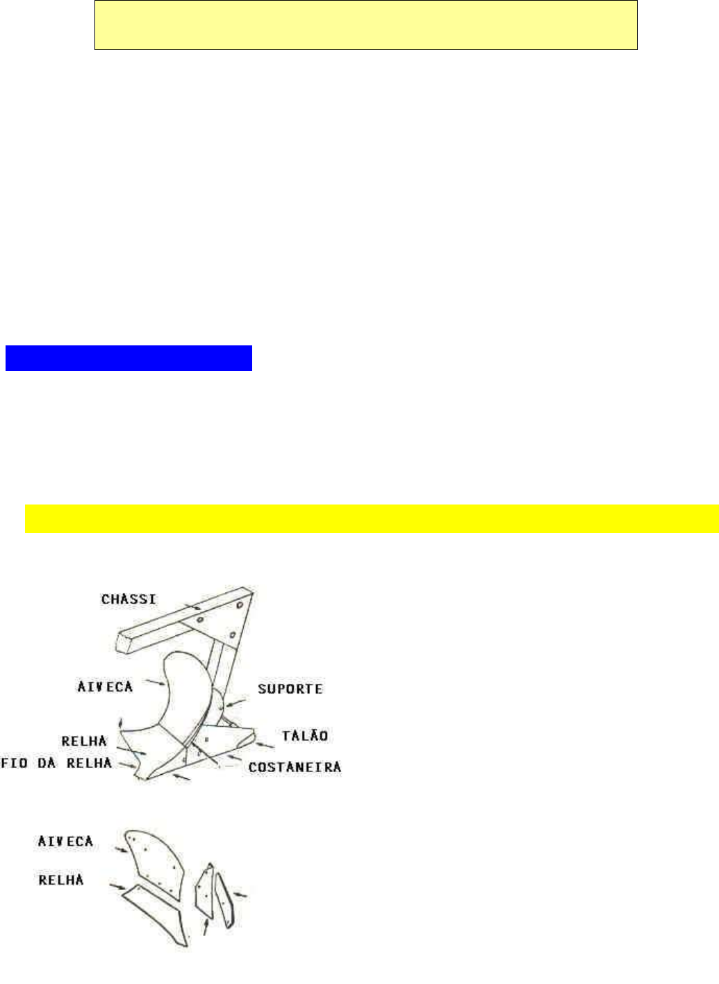 1 A mobilização mecânica do solo pode ser nas seguintes formas: -Corte e inversão do solo Arado Corte e desagregação horizontal do solo Grades - Rompimento vertical do solo Escarificador - Rotavação ou roturação do solo Enxada rotativa 01-Corte e inversão do solo No preparo convencional são utilizados implementos como arado e grade niveladora/destorroadora. O Arado tem a função de romper e inverter camadas do solo a uma determinada profundidade, com o objetivo de deixar o solo solto, arejado, para uma maior infiltração da água, dando assim, as condições ideais para a implantação de uma cultura. IMPLEMENTOS DE PREPARO CONVENCIONAL DO SOLO Os arados de aiveca realizam uma perfeita inversão da camada do solo. São os mais antigos, pois foram desenvolvidos pelos chineses há mais de 2000 a.C. TIPOS DE PREPARO DO SOLO 2 Arado sendo tracionado por um cavalo Arado tracionado por uma junta de bois 3 Arado de discos e arado de aivecas Arado de discos - realiza o corte e inversão do solo 4 Os arados apresentam discos suportados em colunas independentes e roda guia para estabilidade do mesmo. Esses implementos fazem o preparo, através da inversão de camadas do solo, denominadas de leivas. Ou seja, os elementos ativos, discos ou aivecas cortam uma fatia do solo que, através da velocidade do implemento, invertem essa camada totalmente (aiveca), ou parcialmente (discos), produzindo um esboroamento do solo. Nos estados do sul encontramos um implemento chamado arado gradeador, que é utilizado para o preparo do solo, que utiliza uma secção de grade e uma roda guia, servindo para o preparo do solo de culturas que necessitam de pouca profundidade de preparo. Arado gradeador - apresenta uma secção de discos que gira em um único eixo e roda guia. 5 Regulagens do arado de discos tratorizados Ângulo Vertical Ângulo Horizontal 6 02 - Corte e desagregação horizontal do solo Grade aradora com controle remoto. A grade aradora é utilizada no lugar do arado, por ter maior largura de trabalho, principalmente nas usinas e grandes empreendimentos. TIPOS DE GRADES GRADE CONTROLE REMOTO ARTICULADA GRADE NIVELADORA CONT. REMOTO ARTICULADA. GRADE NIVELADORA OFF-SET, EM "V" GRADE NIVELADORA CONTROLE REMOTO OFF-SET. A gradagem complementa a operação de aração, ao quebrar os torrões deixados na passagem do arado no solo, dando assim o acabamento. O nivelamento é o resultado do destorroamento. 7 03- Rompimento vertical do solo O implemento que rompe verticalmente o solo utiliza como elemento ativo hastes e ponteiras. Este implemento realiza a operação de escarificação. Escarificador Realiza preparo sub-superficial do solo, sem revolvimento até 30 cm de profundidade. 8 Subsolador Implemento de hastes utilizado para quebrar a camada compactada do solo. Subsolador acionado por trator de pneus, com três hastes. 04 - Rotavação ou roturação do solo ROTAVAÇÃO OU ROTURAÇÃO DO SOLO É ACIONADA PELA TOMADA DE POTÊNCIA (TDP) DO TRATOR E TEM FACAS MONTADAS EM UM EIXO HORIZONTAL. 9 Os discos são os elementos ativos dos implementos. Diâmetro Utilização Discos de 18 polegadas (45,72 cm) Grade niveladora destorroadora Discos de 20 polegadas (50,80 cm) Grade niveladora destorroadora Discos de 22 polegadas (55,88 cm) Grade niveladora destorroadora Discos de 24 polegadas (60,96 cm) Grade niveladora destorroadora Discos de 28 polegadas (71,12 cm) Arado Discos de 30 polegadas (76,20 cm) Arado, grade aradora Discos de 32 polegadas (81,28 cm) Grade aradora Considerando-se que um disco só poderá penetrar 1/3 de sua altura, um disco de 30” pode trabalhar na profundidade teórica de 25,4 cm. No arado, os discos têm angulação em relação ao plano vertical e horizontal. O ângulo de 15 graus com a vertical é utilizado em solos mais pesados, argilosos, enquanto o ângulo 25 deve ser utilizado em solos mais leves, mais arenosos. A regulagem é feita na coluna de cada disco. Com relação ao ângulo horizontal, este regula a largura de corte. Quanto maior o ângulo horizontal, maior a resistência à passagem do implemento, quanto menor, menor resistência à passagem do implemento. Os discos podem ser lisos ou recortados Os discos recortados são utilizados em áreas com resto de culturas. O recorte ao passar sobre o resto de cultura, corte o material. 10 Grade niveladora/destorroadora Detalhe da regulagem da grade nivela Grade niveladora/destorroadora Grade aradora Detalhe dos discos recortados Detalhe dos discos 11 Escarificador Grade aradora de controle remoto Grade aradora de controle remoto Grade niveladora 12 Arado reversível de aiveca tratorizado Grade niveladora/destrroadora controle remoto atralada a um trator de esteiras 13 Capacidade de campo efetiva Ccef = V(km/h).L (m).Ef = ha/h 10.000m²/ha Onde: V = velocidade do conjunto trator + implemento L = largura de trabalho do implemento Ef = Eficiência da operação Para o cálculo de capacidade efetiva só deverá ser computado o tempo de serviço depois que a máquina já estiver no campo; o tempo gasto para regulagem da máquina no galpão, acoplamento do trator, cuidados periódicos, manutenção e deslocamento até o campo não são incluídos; devem, portanto, ser bem rápidos e os deslocamentos restringidos ao mínimo necessário, para que a máquina entre na sua fase rentável. Exemplo: Considere uma propriedade que se deseja saber que área poderá ser preparada em 60 horas, por um conjunto trator+arado+grade, trabalhando respectivamente a 5km/h e 7 km/h? Dados: Arado de 3 discos de 28", largura de corte de 90cm Grade dupla de 28 discos de 18" Valores médios de Eficiência Arado 70 a 85% Grade 70 a 90% Semeadora adubadora 70 a 85% Cultivador 75 a 90% Combinada automotriz 70 a 80% Colhedoras e forrageiras 50 a 75% Espigadoras 55 a 70% Enfardadoras 65 a 85% Ancinhos mecânicos 65 a 90% Colhedoras de algodão 60 a 75% CÁLCULO DE RENDIMENTO DE MÁQUINAS AGRÍCOLAS 14 Cálculos: Aração Cefc = 5(km/h) x 0,90 (m) x 0,70 =