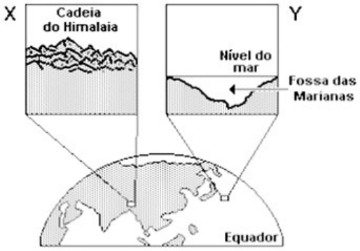 PERGUNTA 1 ===>QUESTÃO CANCELADA, ASSINALE QUALQUER ALTERNATIVA PARA TER O CRÉDITO DA NOTA<===== Considere a figura a seguir (adaptado de UFMG-1995). A distribuição espacial dos terremotos apresentada no mapa coincide com a.dorsais meso-oceânicas. b.margens continentais passivas. c.áreas de expansão do assoalho oceânico. d.margens divergentes com colisão de placas tectônicas. e.margens divergentes de placas tectônicas. PERGUNTA 2 Assinale a alternativa que apresenta a causa mais provável para a existência de zonas sísmicas do globo. a.Os dobramentos antigos. b.Áreas de contato das margens das placas tectônicas. c.Formação das bacias sedimentares. d.Os escudos cristalinos ou maciços antigos. e.Presença de estruturas geológicas muito antigas. PERGUNTA 3 Considere a figura que segue. Em X e Y, indicados nessa figura, estão representadas duas feições de relevo (adaptado de UFMG-1999). Considere a figura que segue. Em X e Y, indicados nessa figura, estão representadas duas feições de relevo (adaptado de UFMG-1999). Assinale a alternativa que apresenta a causa correta para essas feições de relevo comuns em regiões da Terra com grande atividade tectônica. a.X foi formada em consequência da separação de placas tectônicas; Y, em consequência da colisão delas. b.X e Y encontram-se em regiões marginais às zonas de separação de placas, não sendo afetadas por isso. c.X e Y foram formadas em consequência da colisão de placas tectônicas. d.X foi formada em consequência da colisão de placas tectônicas; Y, em consequência da separação delas. e.X e Y foram formadas em consequência da separação de placas tectônicas. PERGUNTA 4 Leia o trecho que segue (adaptado de PUCPR-2003) "Apertado entre o Tibete e a Índia, o Nepal se estende sobre uma área de 141 mil km², um pouco menor que o Estado do Paraná. Mesmo assim, por situar-se na parte central da Cordilheira do Himalaia, a ‘Morada dos Deuses’ da mitologia indiana, possui oito das catorze maiores montanhas da Terra. Sua altitude decresce rapidamente de norte para sul, até encontrar a planície do Terai, a apenas 70 m sobre o nível do mar, um gigantesco contraste com os 8.848 m de altitude do Everest na extremidade norte do país, a pouco mais de 180 km." (Adaptado de NICLEVICZ, Waldemar. Tudo pelo Everest. 1993). O texto se refere à mais elevada cordilheira do mundo, o Himalaia, onde se situa o Nepal. Assinale a alternativa que apresenta o conceito associado às grandes cadeias montanhosas do mundo. a.Dobramentos modernos. b.Longos processos de erosão. c.Vulcanismo. d.Dobramentos antigos. e.Falhamentos transcorrentes.